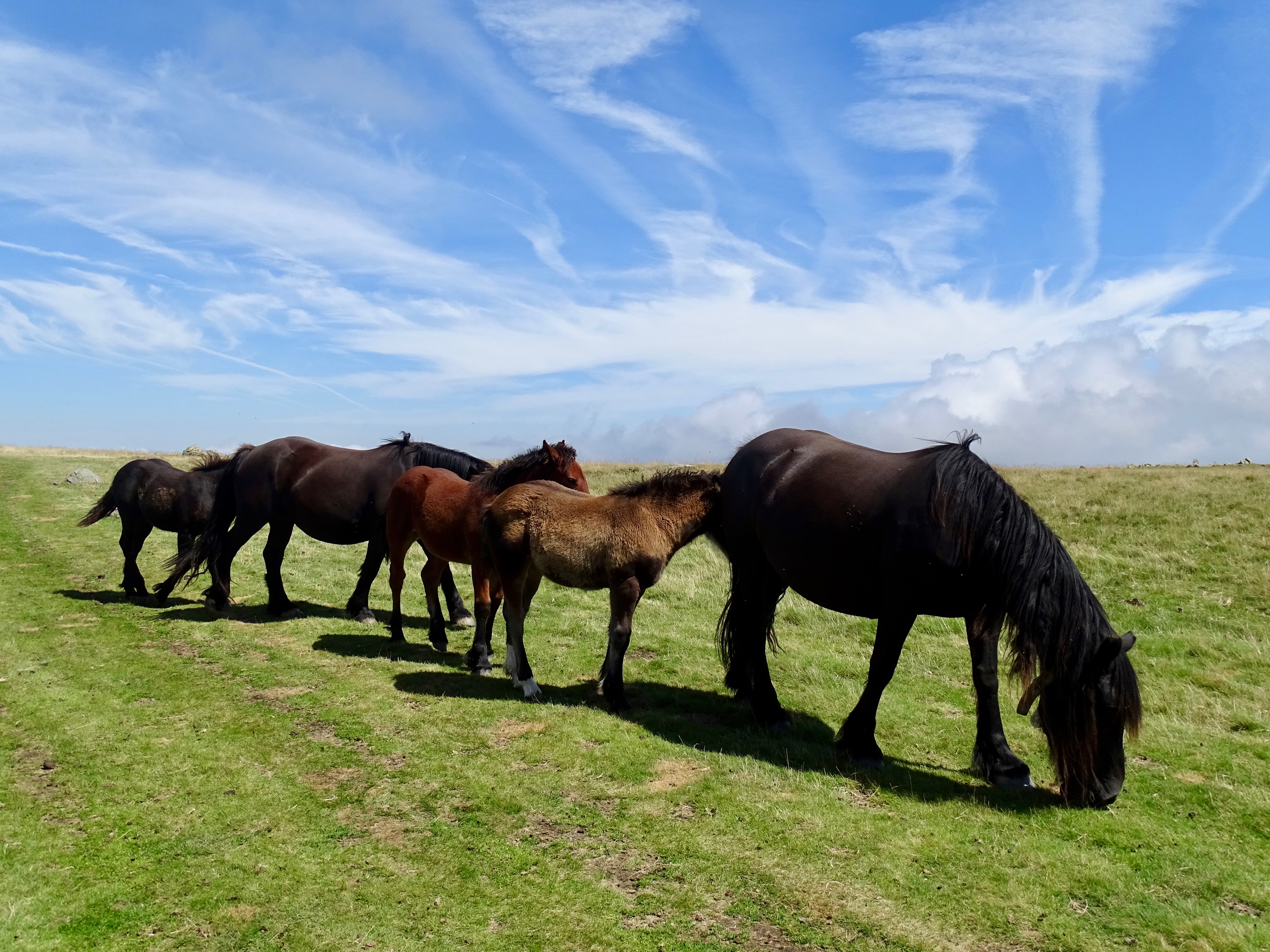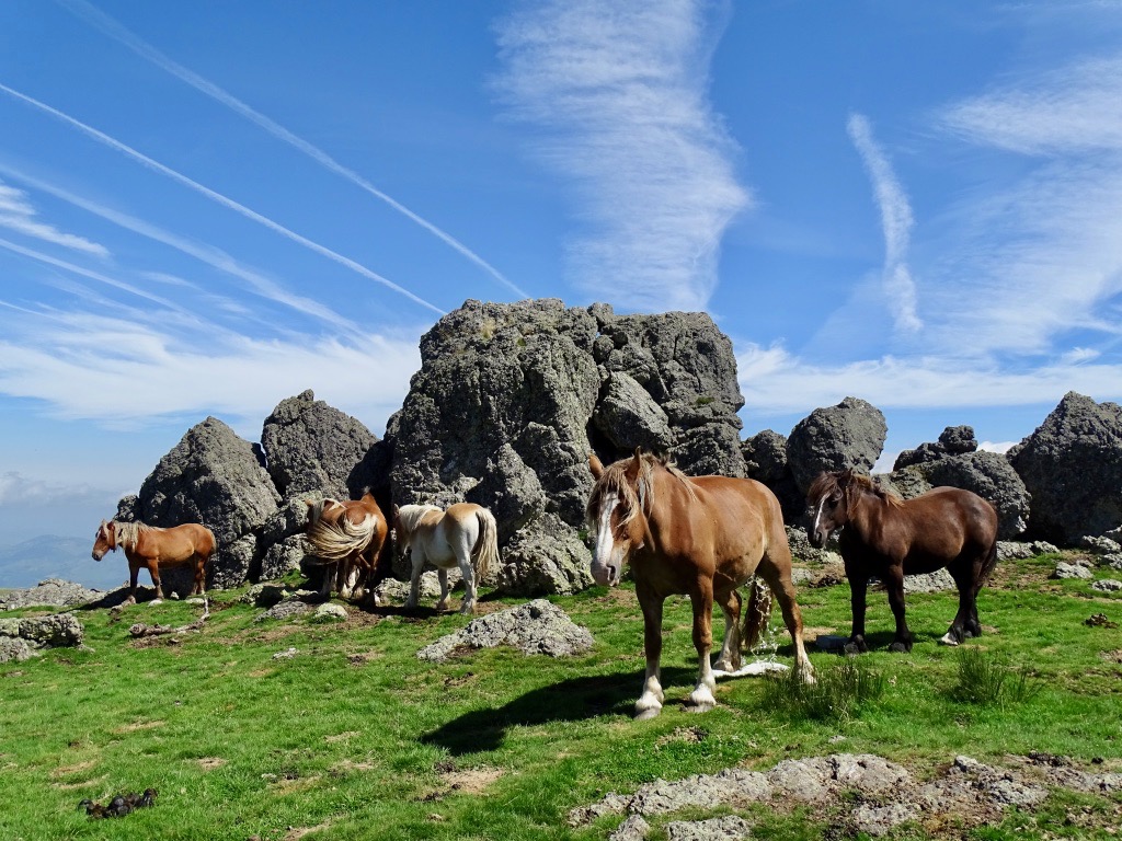 Ensuite, nous sommes redescendus : comme la montée, descente aussi raide et, comme ce n’était pas fini, montée au col de Mizpira avec, au sommet, de beaux chevaux sauvages, montée tout aussi raide…