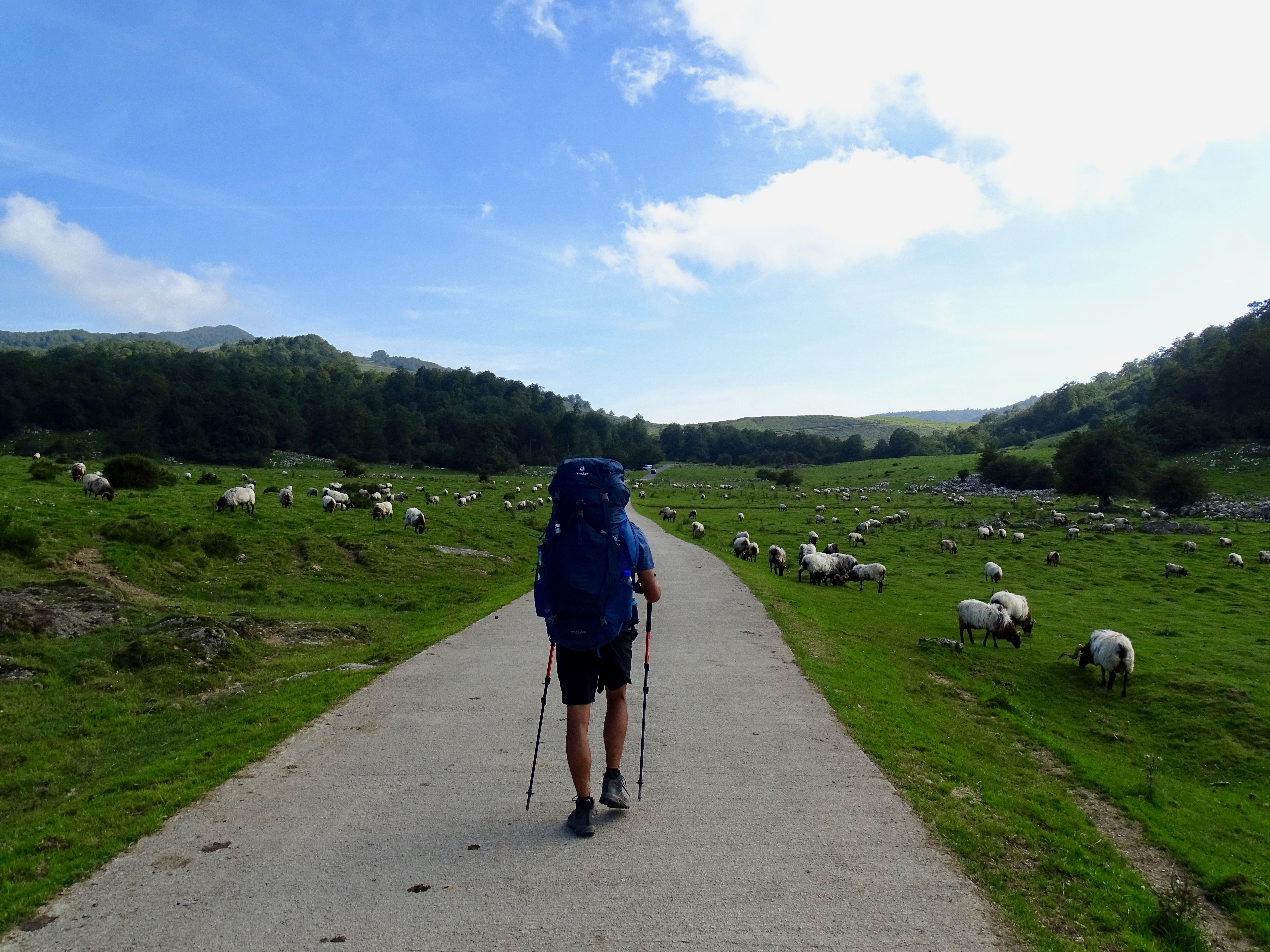 Au niveau du chemin il y avait plein de troupeau de brebis et de vaches, on a donc décider de passer par la route goudronnée ! Ensuite nous avons contourné la route par une sentier mais au loin pile dans notre direction il y avait plein de brebis !! Du coup on a récupéré une route, un berger nous a dit qu’au col de la Pierre saint Martin on pourrait trouver un endroit de bivouac facilement.