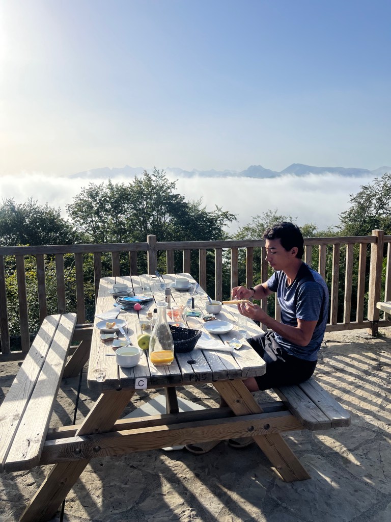 Nous avons fait notre pose dej juste avant le sommet. C’était superbe, avec, en prime, les rapaces majestueux qui volaient au dessus de nos têtes.