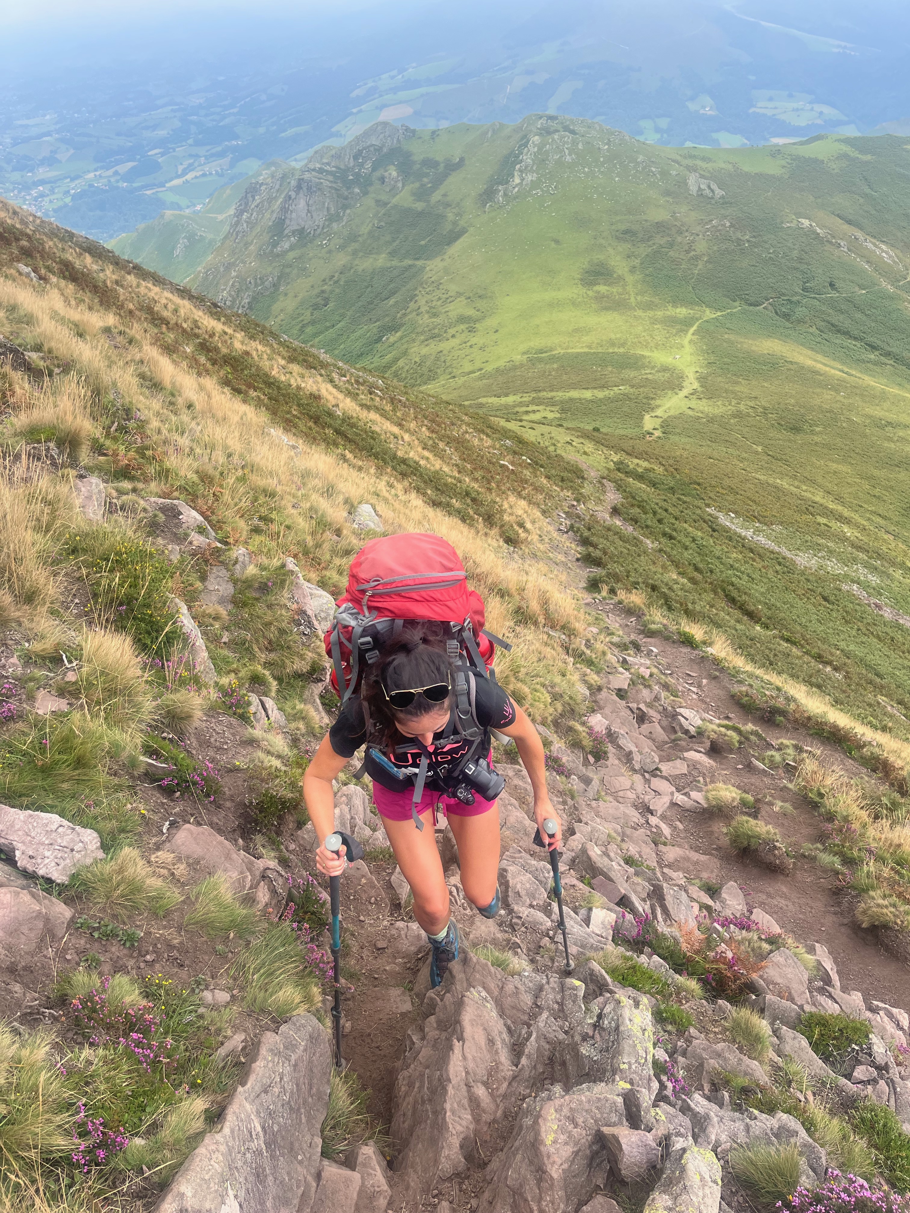 La descente des crêtes était très raide, ça cassait bien les jambes. En plus, il n’y avait pas du tout de vent, du coup super chaud.