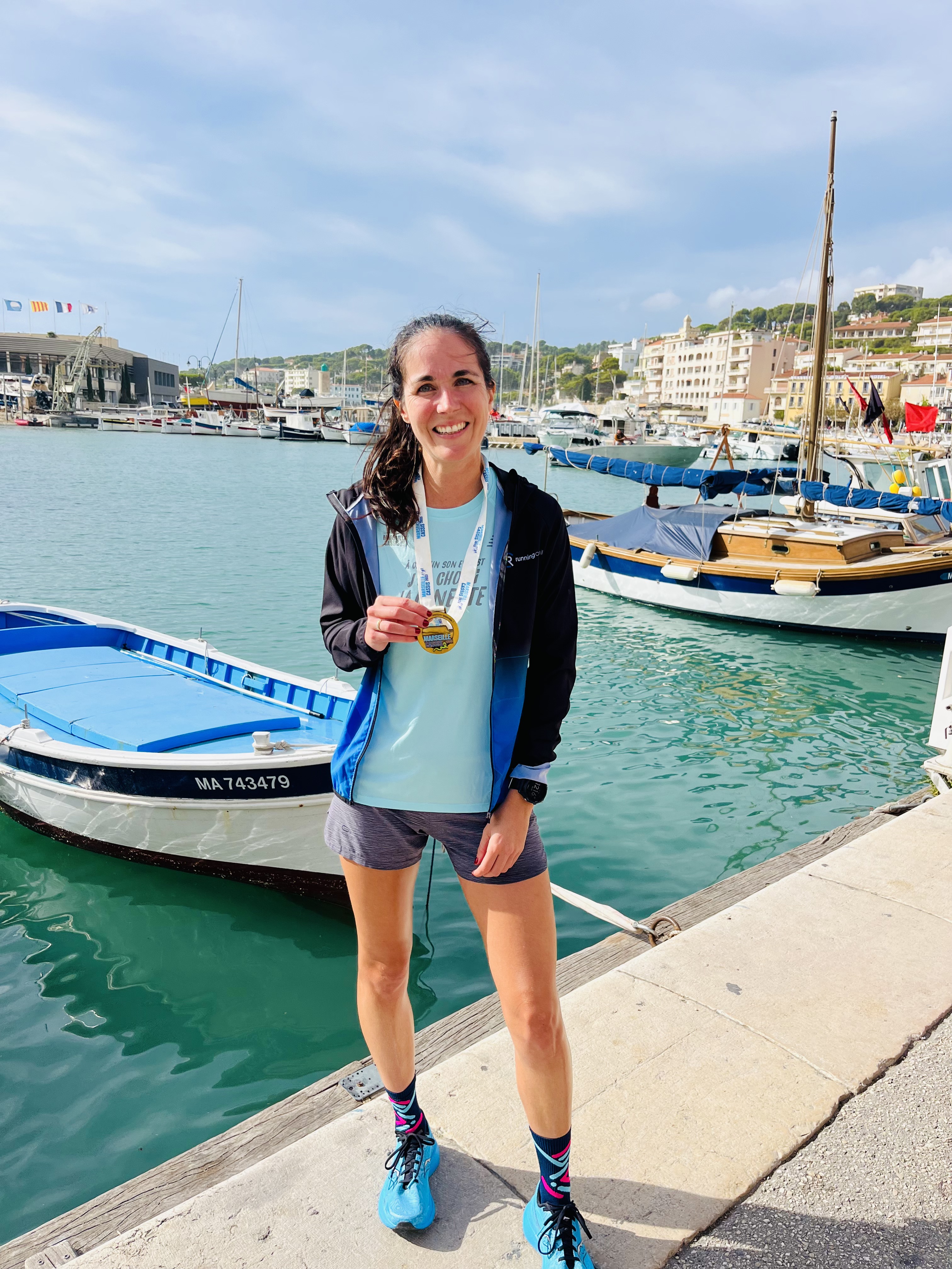 Également dans le cadre de ma préparation j’ai fait une course : Marseille Cassis de 20km avec 500m de dénivelé positif. Mon coach m’avait dit que cette course était un entrainement c’est-à-dire que je devais faire 20km à fond. C’est ce que j’ai fait en 1h30, soit en battant mon record de plus de 3 min (2022) et de 7min (2021 alors que j’étais en préparation de mon 1er marathon).