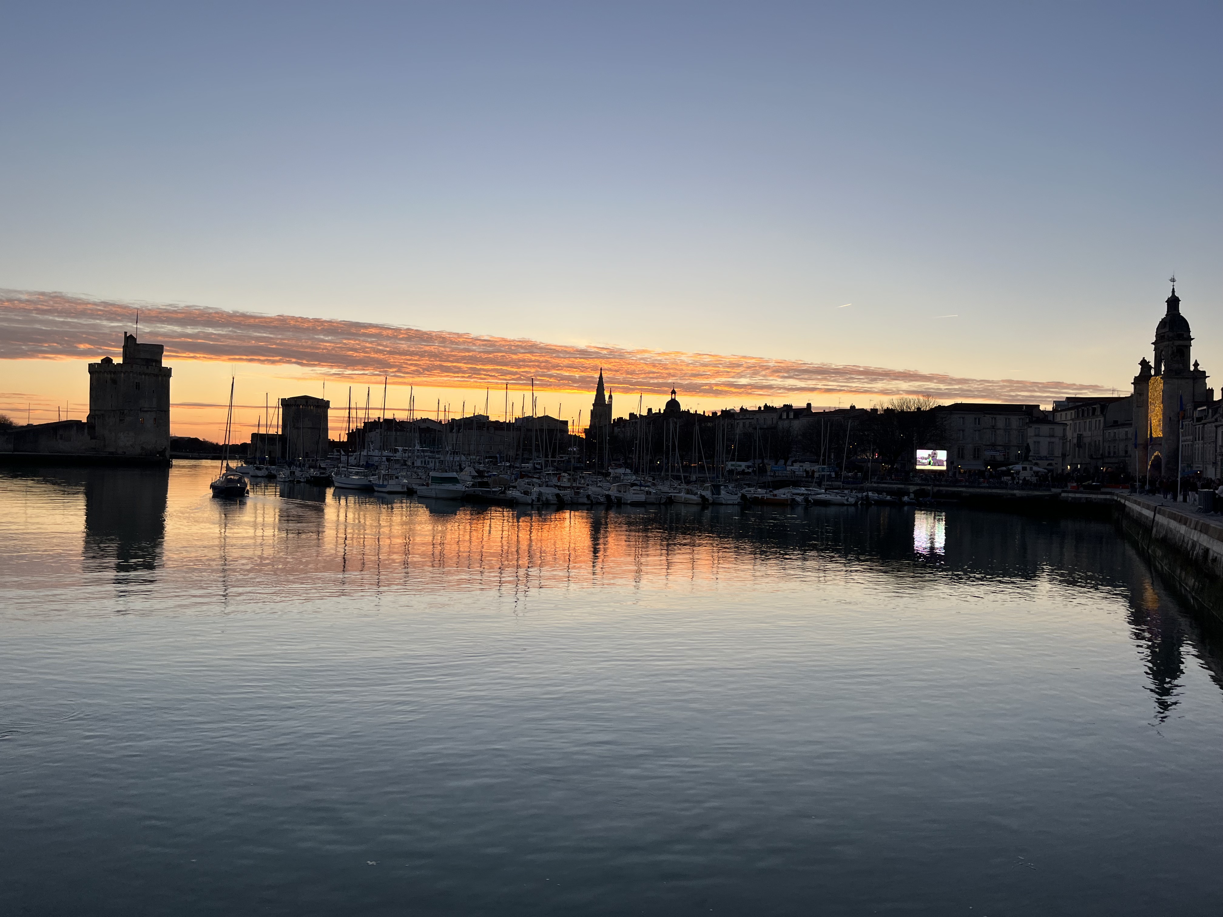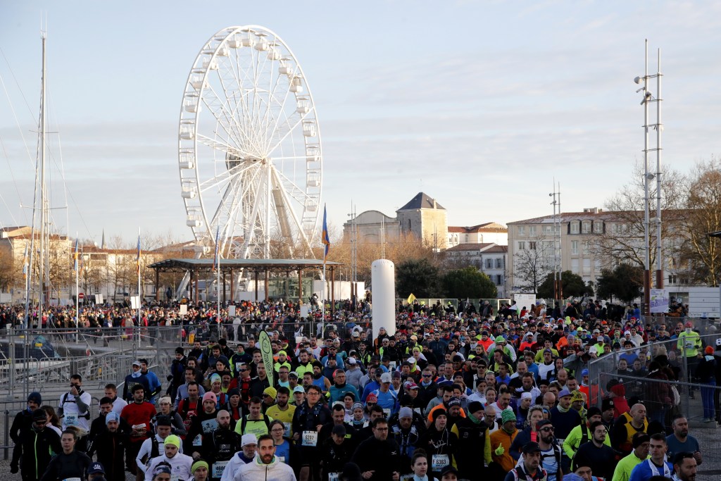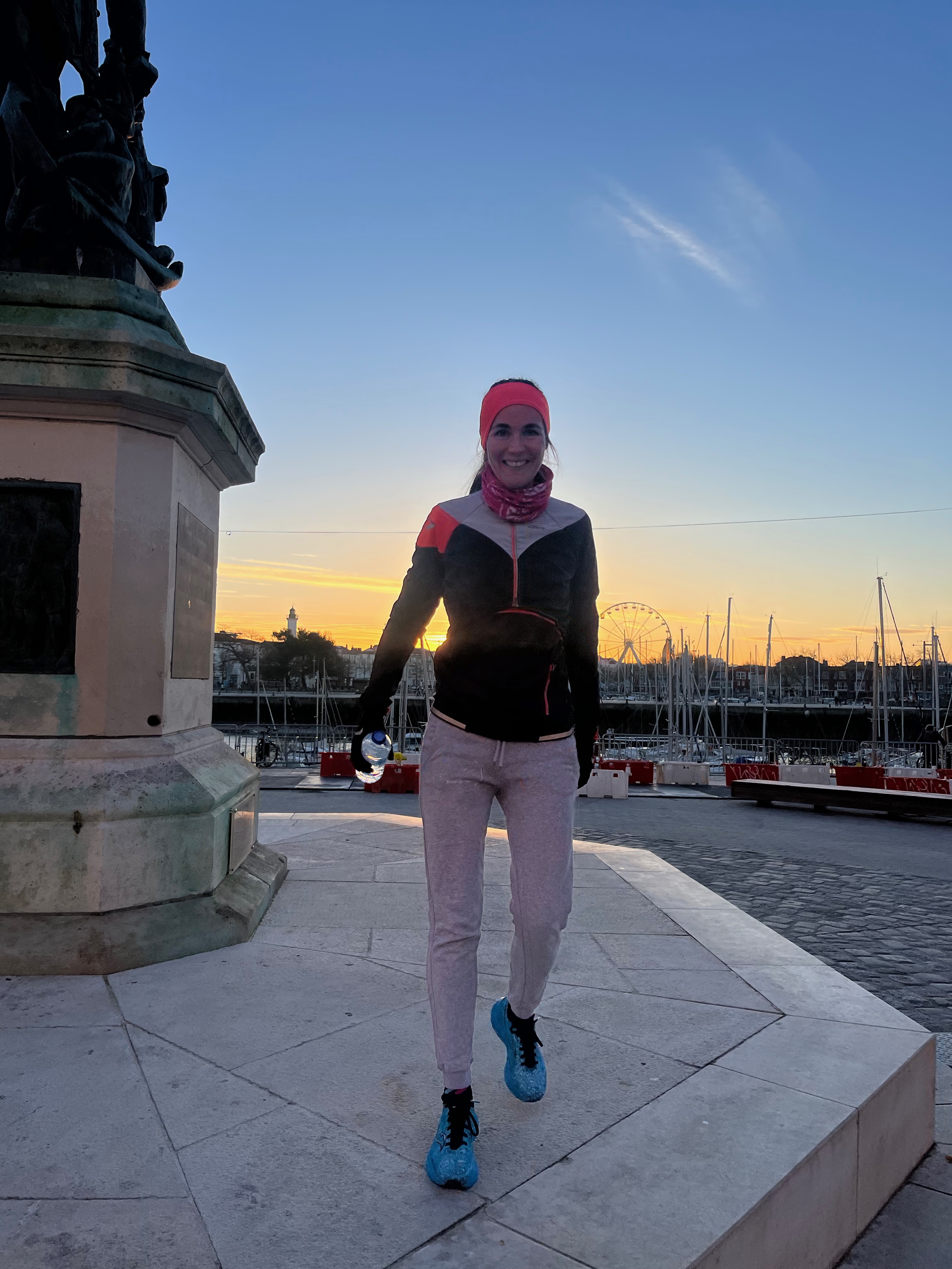 En sortant de l’hôtel « central Park hôtel » (et oui à deux semaines près je pouvais presque faire croire que je faisais le marathon de New York !), situé à 5min en courant du départ, il faisait zéro degré ! Trop froid mais le lever du soleil sur le port était incroyable. Parfois c’est chouette de se lever tôt ! J’ai enlevé toutes mes couches de vêtements au dernier moment en les donnant à Guilhem, présent pour m’encourager (chacun son tour) et je suis rentrée dans mon sas. Il y avait beaucoup de monde.