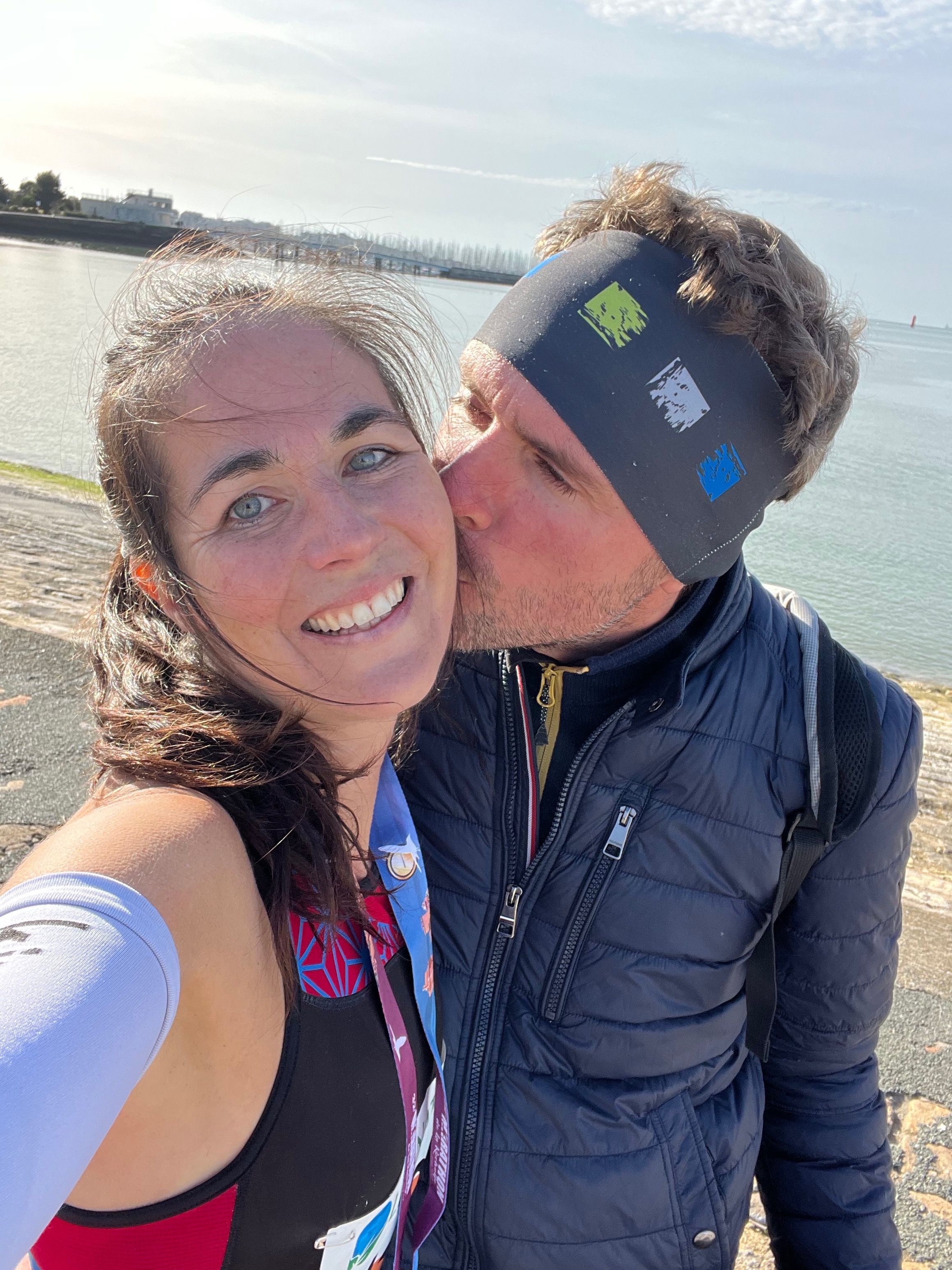 J’ai envie de dire qu’il faut se faire confiance et à partir du 20ème kilomètre, c’est ce que j’ai fait, tout en prenant un maximum de plaisir. Un énorme merci à mon coach pour cette préparation intense et extraordinaire. Je suis partisane du « le travail paie toujours », et bien j’en suis la preuve vivante sur ce marathon. Je suis fière d’avoir réussi à mener de front cette préparation dans un contexte professionnel très intense (comme je le dis souvent, c’est mon marathon professionnel…). Enfin, je suis heureuse d’avoir pu partager ce beau moment avec mon amoureux, car vivre seule ce marathon n’aurait pas eu la même saveur. Il a couru pour me voir plein de fois sur ce marathon, pour me soutenir, pour me donner du courage. A la fin je savais que j’allais le voir et cela m’a encore plus donné envie d’accélérer. Partager ma joie et mon émotion avec lui à la fin a été superbe. Vivre une course ce n’est pas seulement pour soi mais c’est aussi du partage, ce qui la rend encore plus magique.
