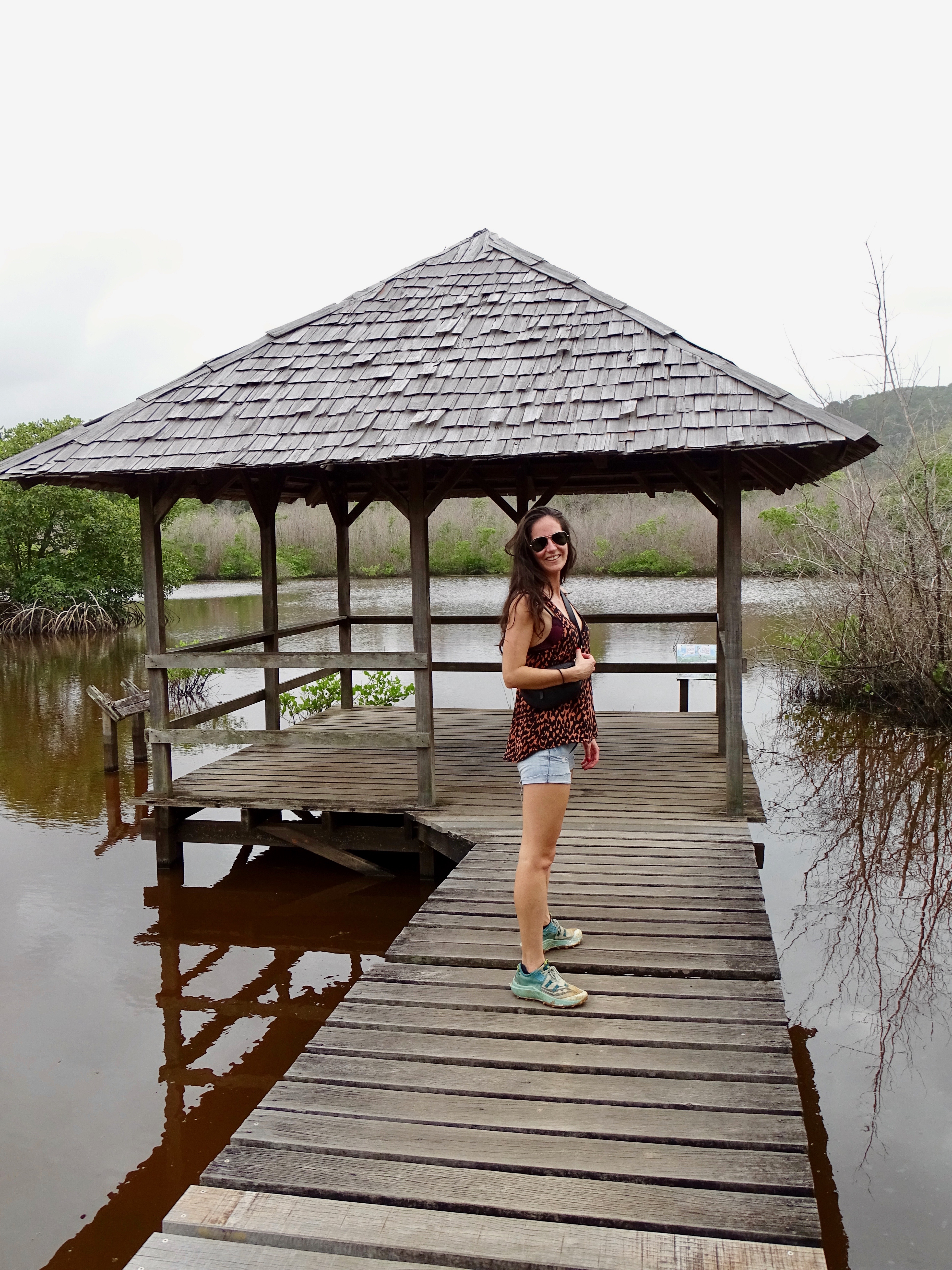 Stop à Remire Montjoly à proximité de Cayenne. C’est clairement le Beverly Hills de Guyane… beaucoup plus riche que Cayenne, avec de belles demeures. Quelques plages également où il n’y avait pas grand monde car beaucoup de vent et personne dans l’eau à cause des vagues. Nous avons suivi le sentier des Salines, c’est plat mais on marchait dans le sable ce qui nous a refait transpirer haha ! Un bel observatoire à oiseaux.
