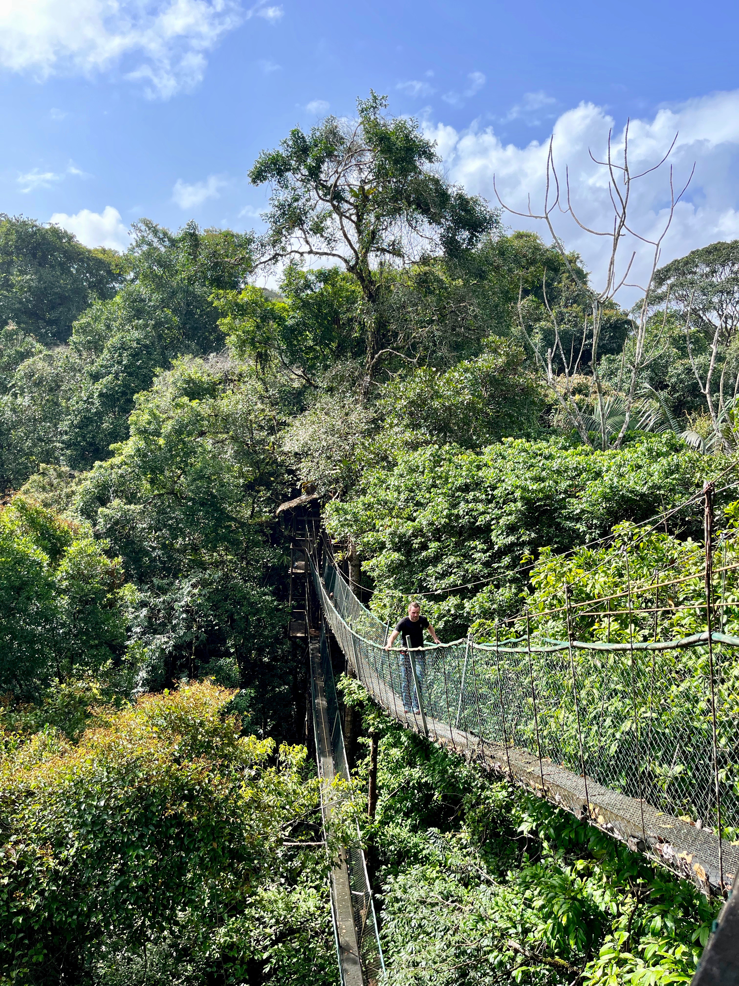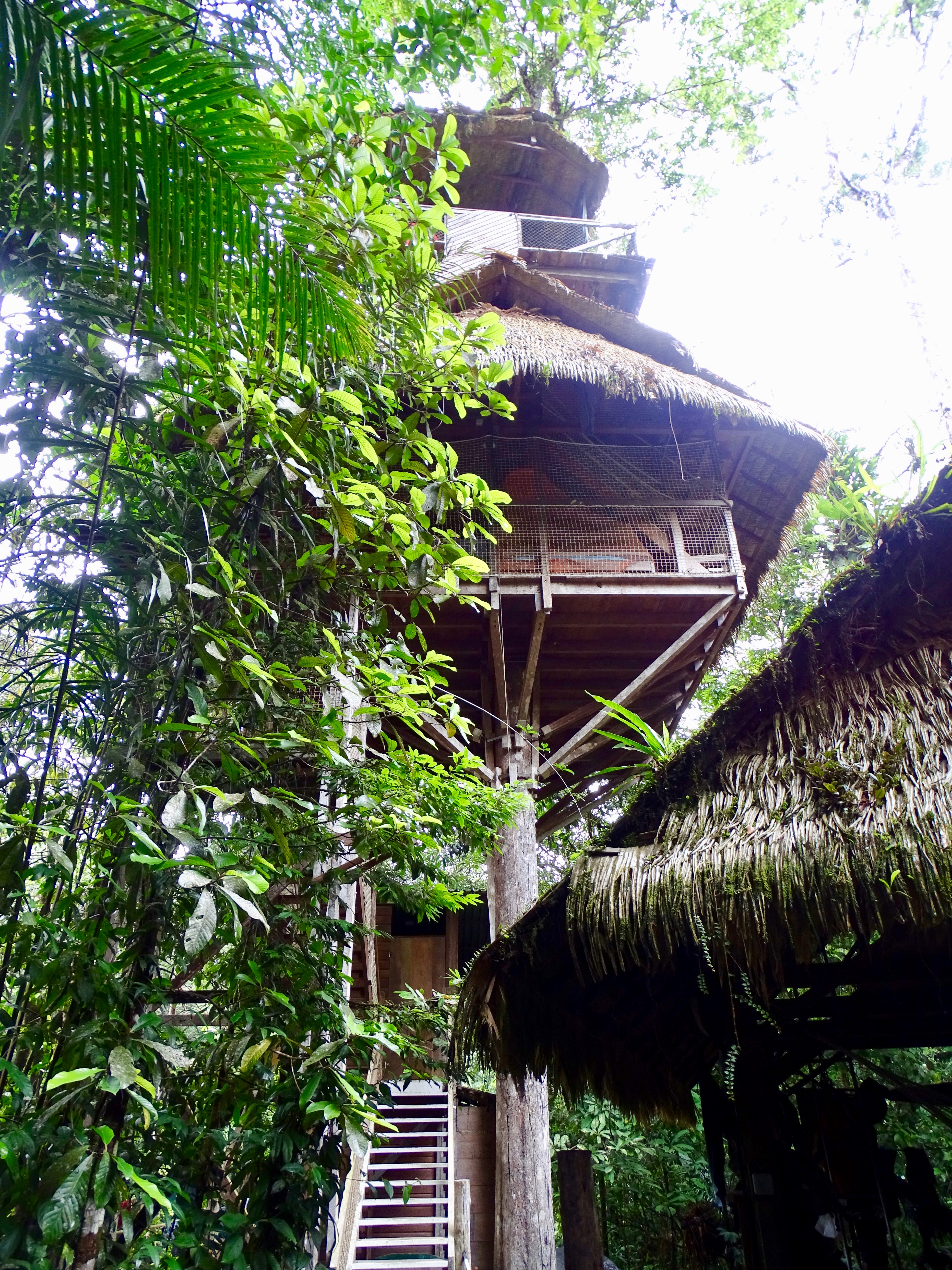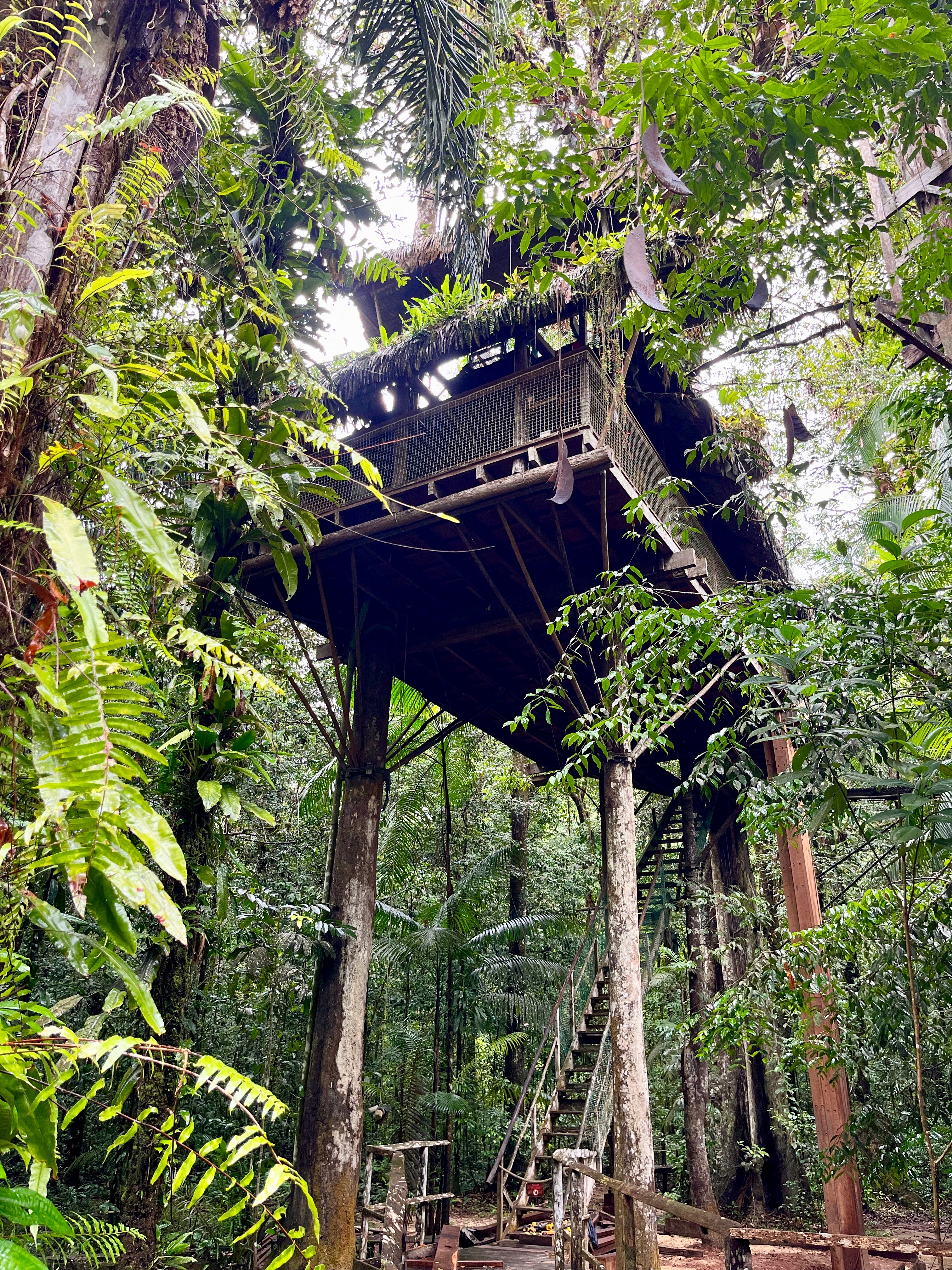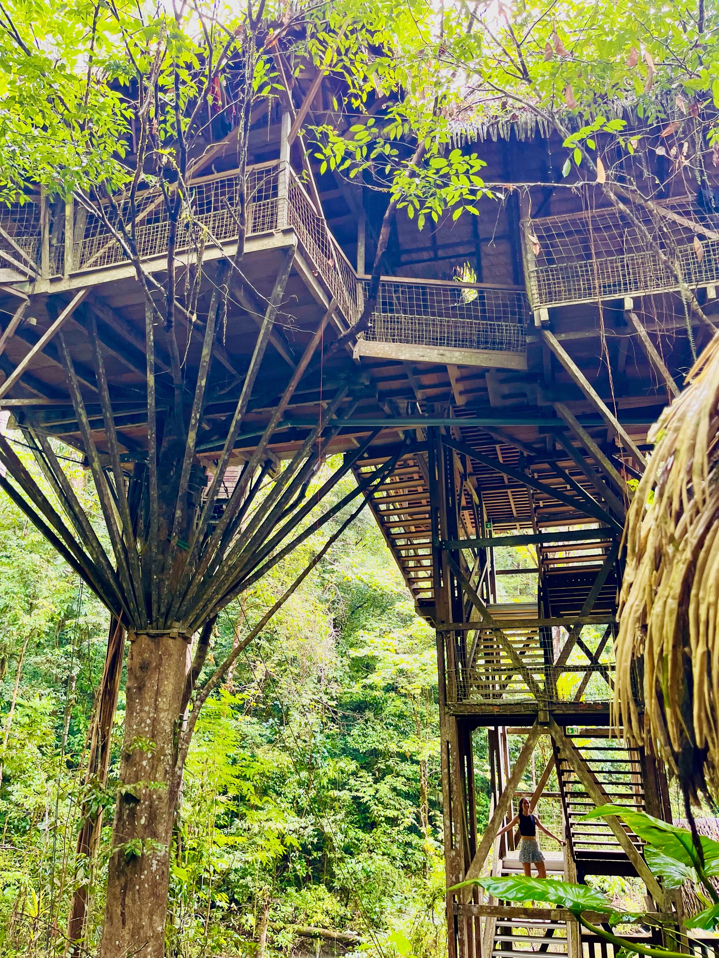 Nous sommes enfin arrivés à la Canopée vers 11h, avec plusieurs logements dans les arbres. C’était franchement impressionnant, le guide a fait les présentations. Nous avions une chambre privée au sommet d’un arbre très haut, quel luxe !