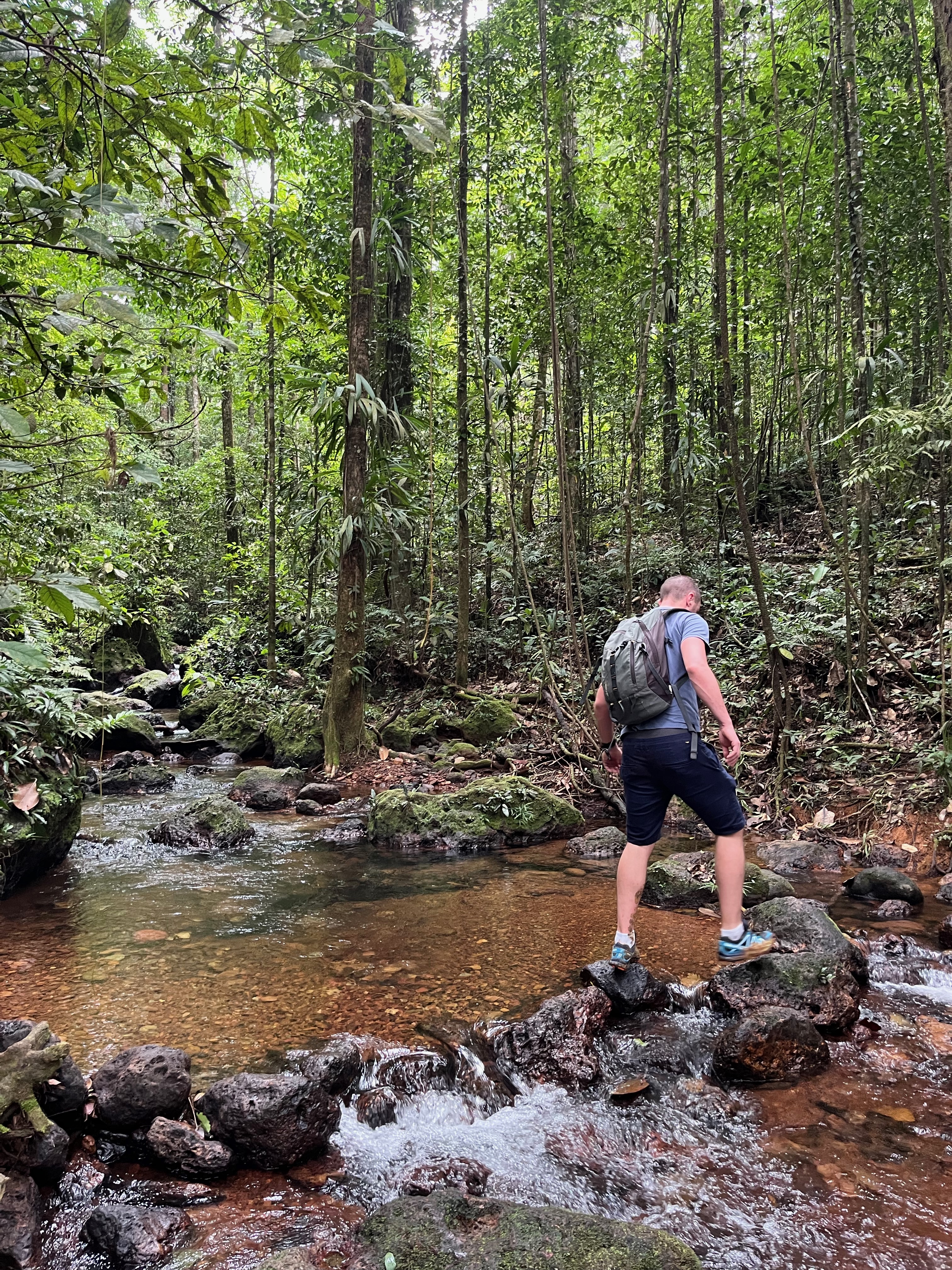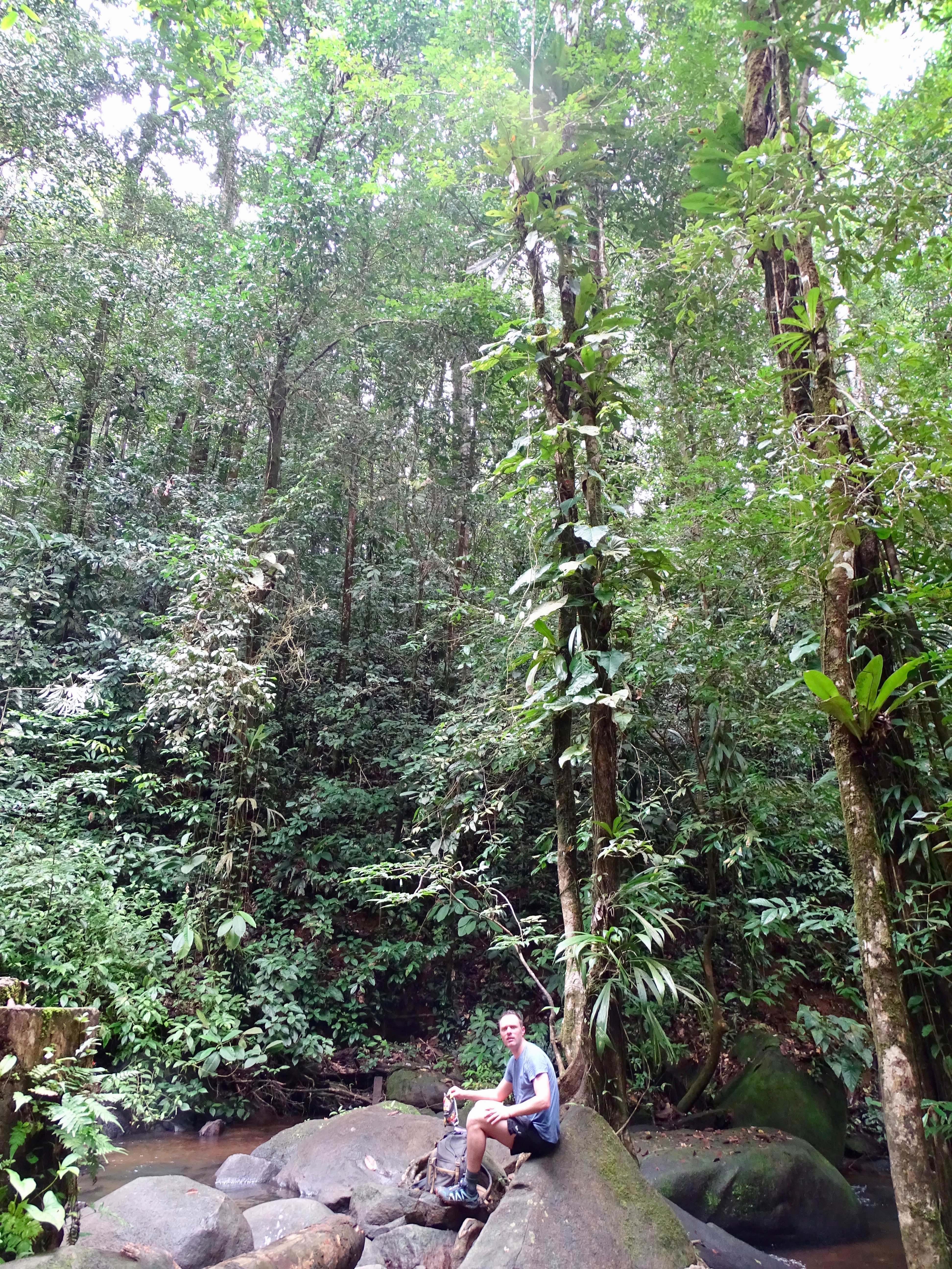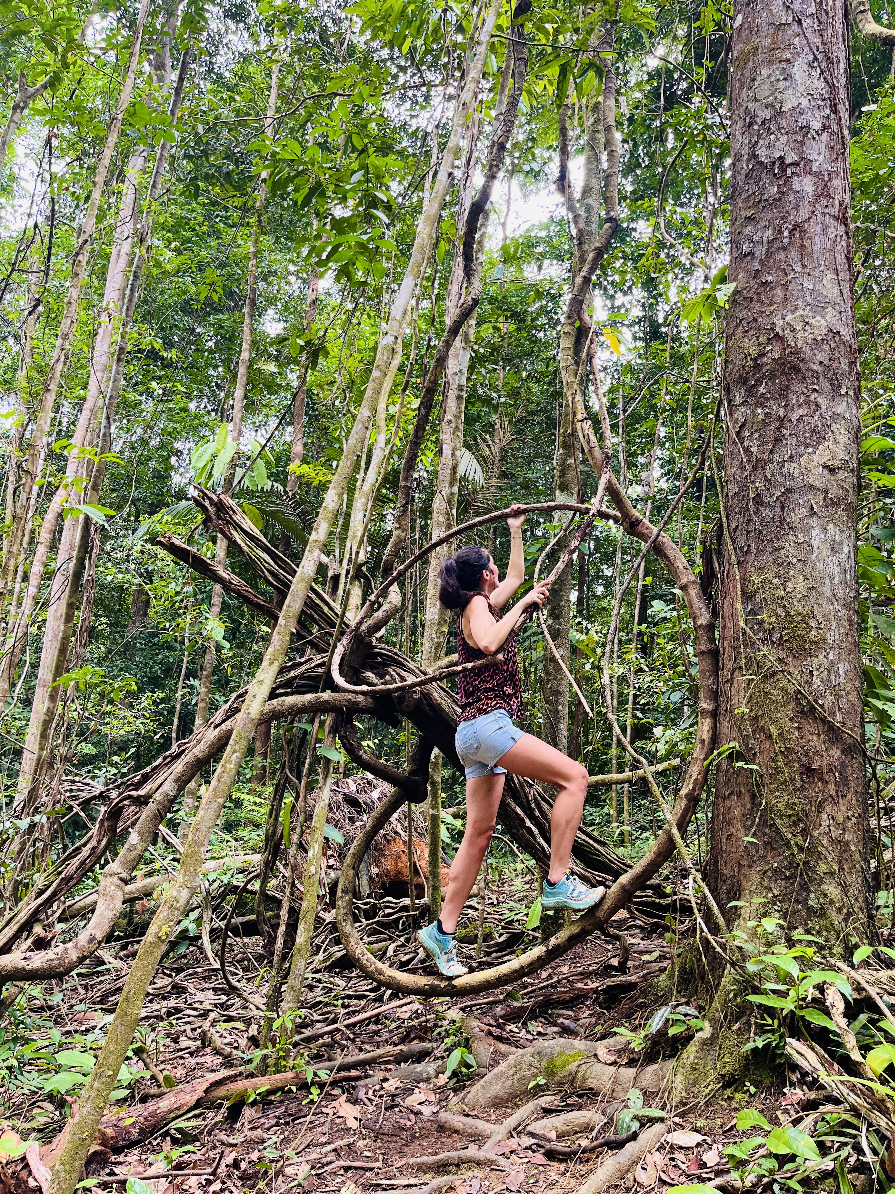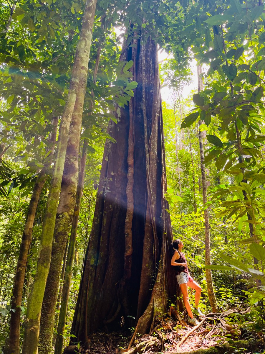 Il était déjà 11h donc trop juste niveau timing pour le faire sur une journée (il fallait rebrousser chemin à un moment). La nature était incroyable, ce fut une randonnée magique, des arbres dont nous ne voyions pas le sommet tellement ils étaient hauts, le bruit des animaux, le murmure de la rivière que nous longions…