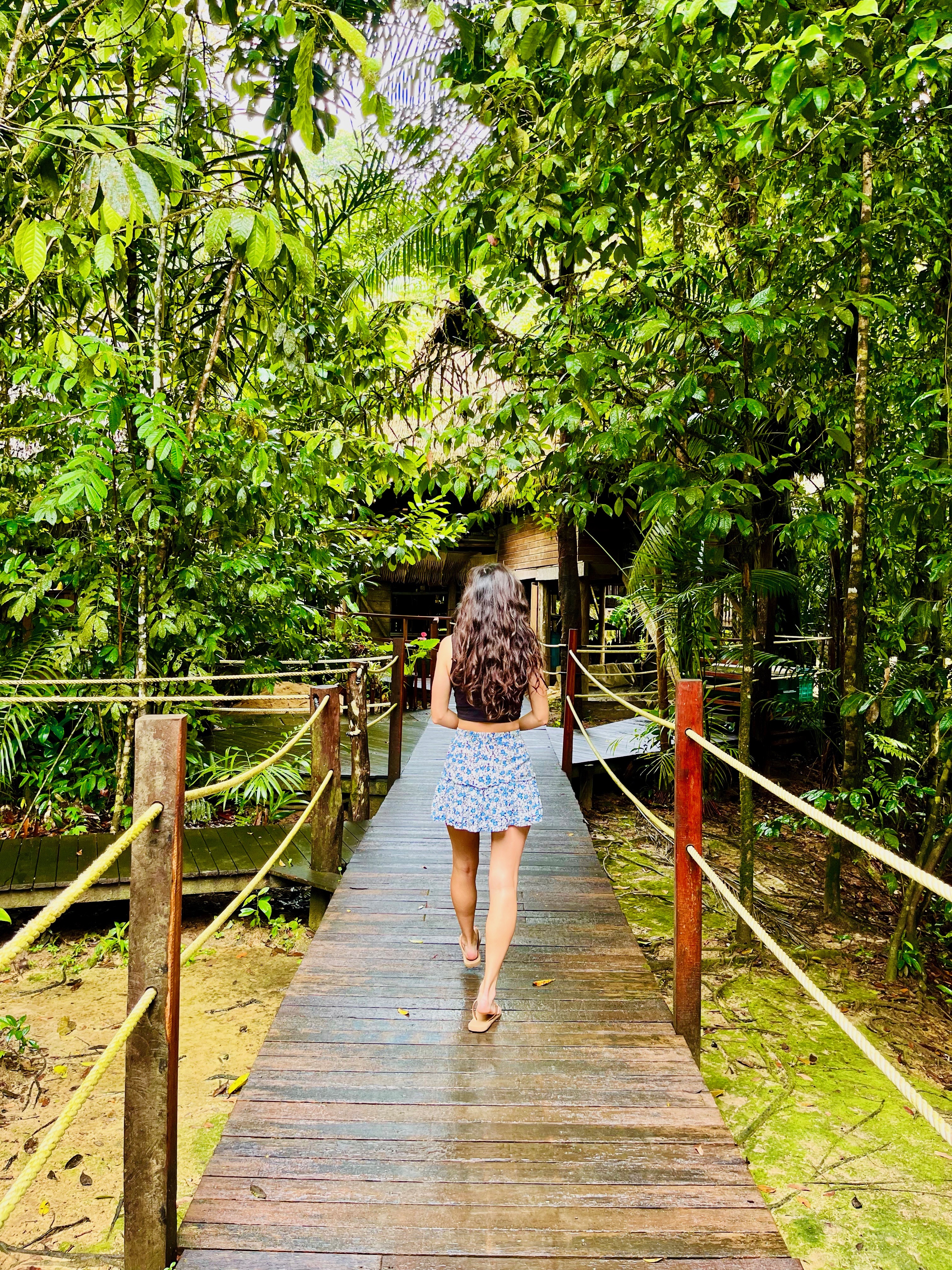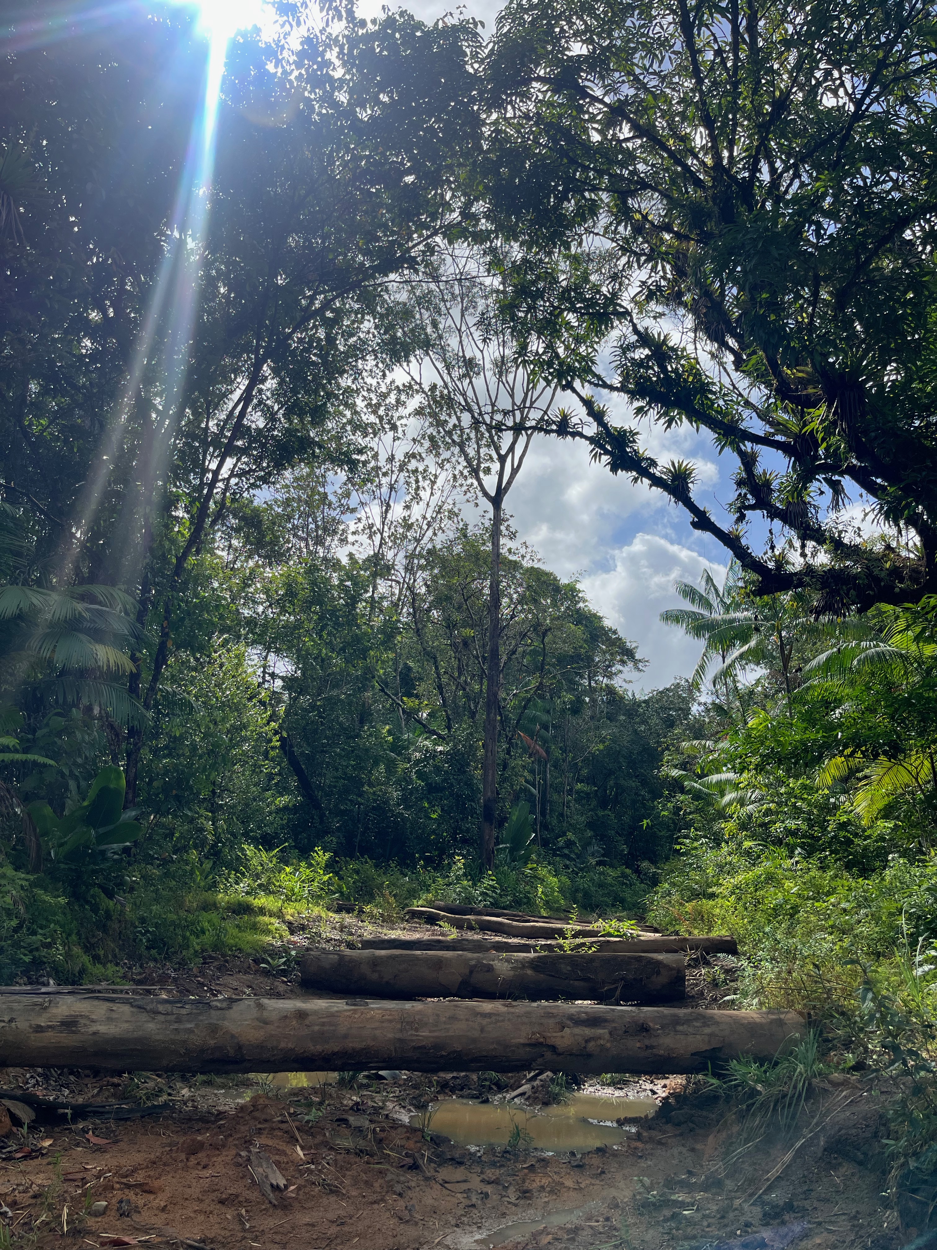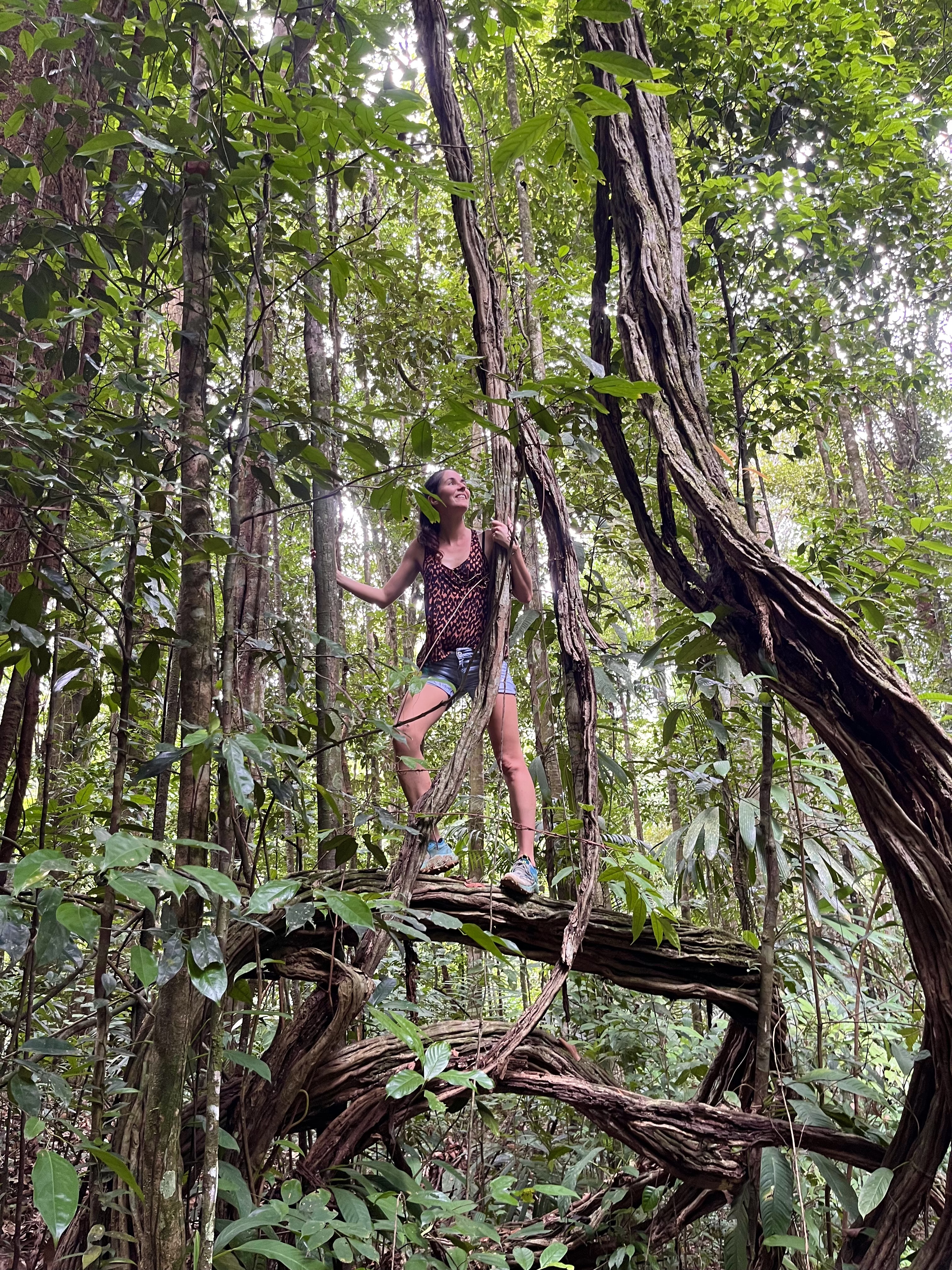 Il était déjà 11h donc trop juste niveau timing pour le faire sur une journée (il fallait rebrousser chemin à un moment). La nature était incroyable, ce fut une randonnée magique, des arbres dont nous ne voyions pas le sommet tellement ils étaient hauts, le bruit des animaux, le murmure de la rivière que nous longions…