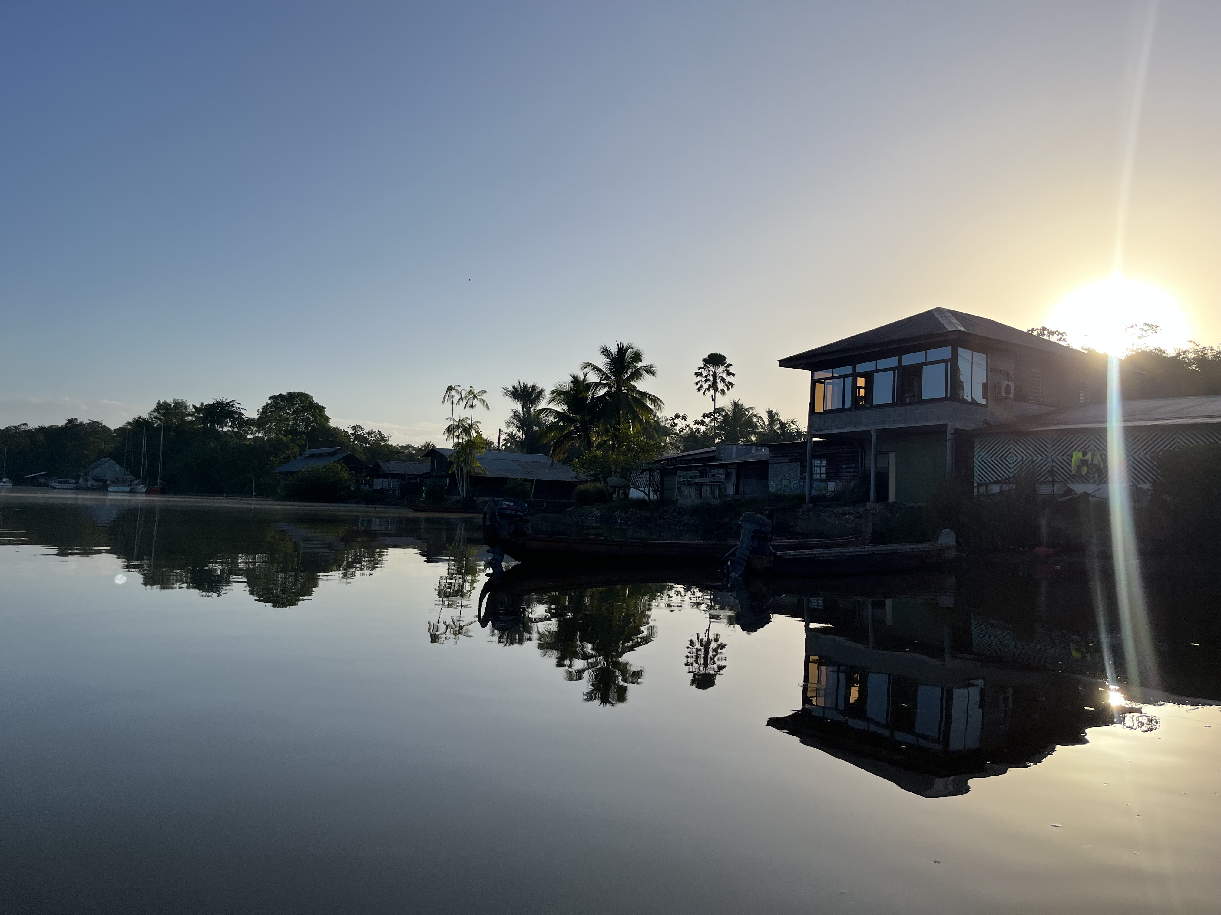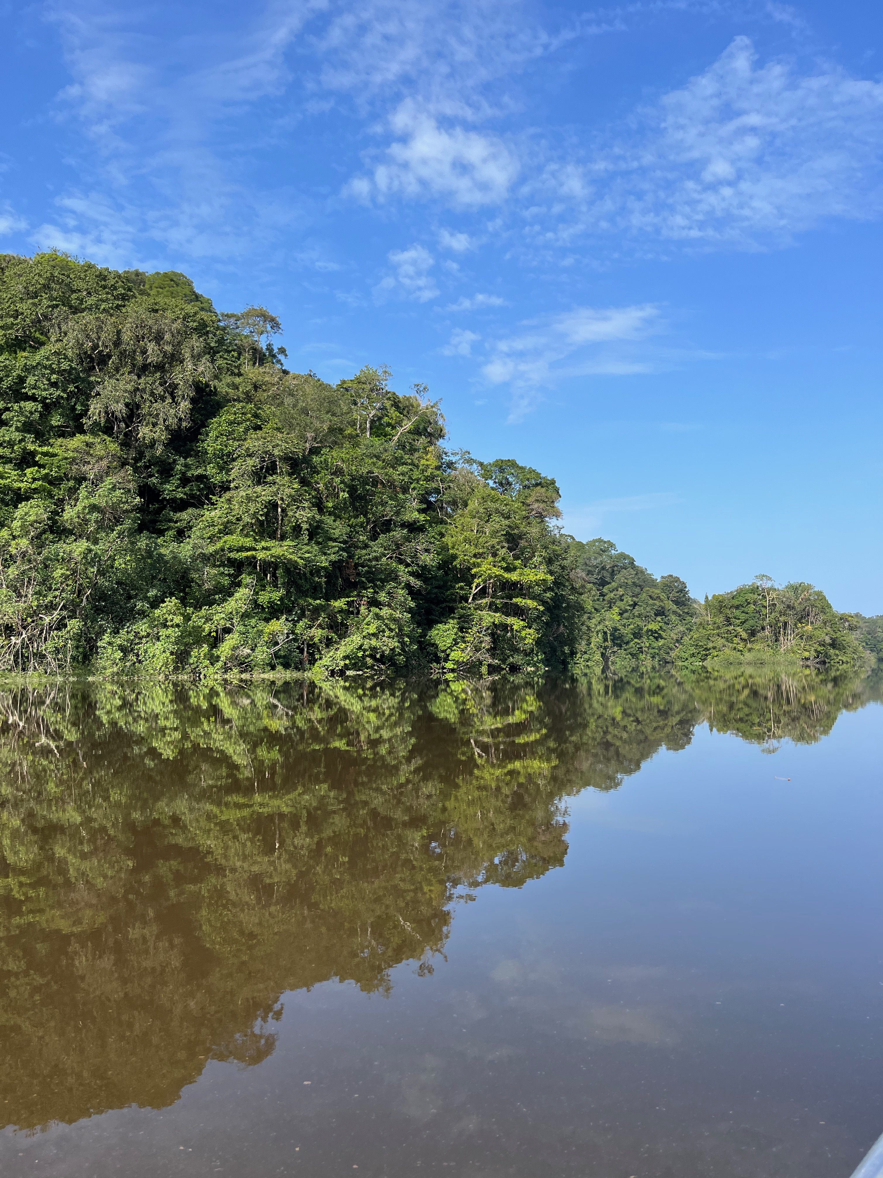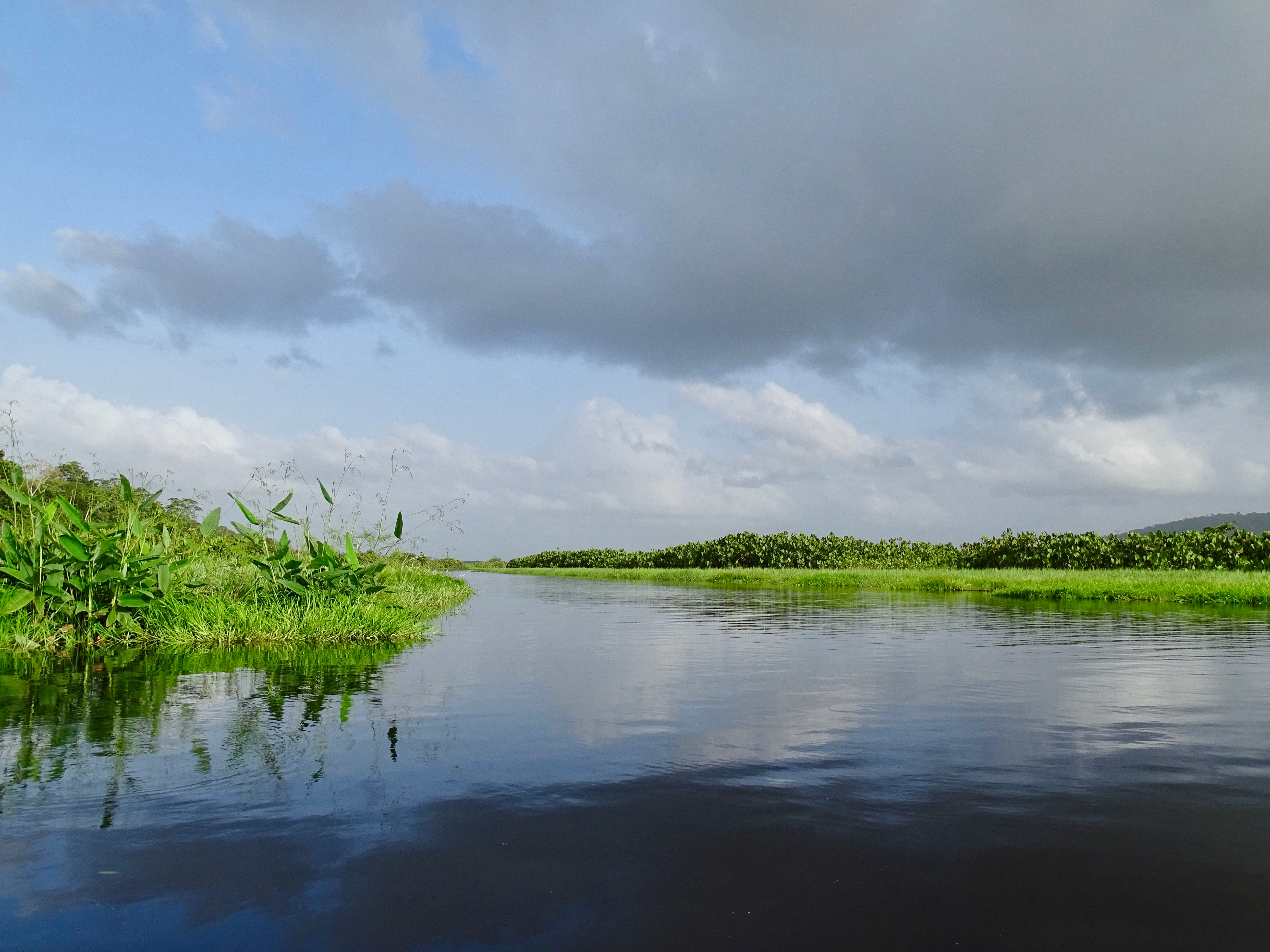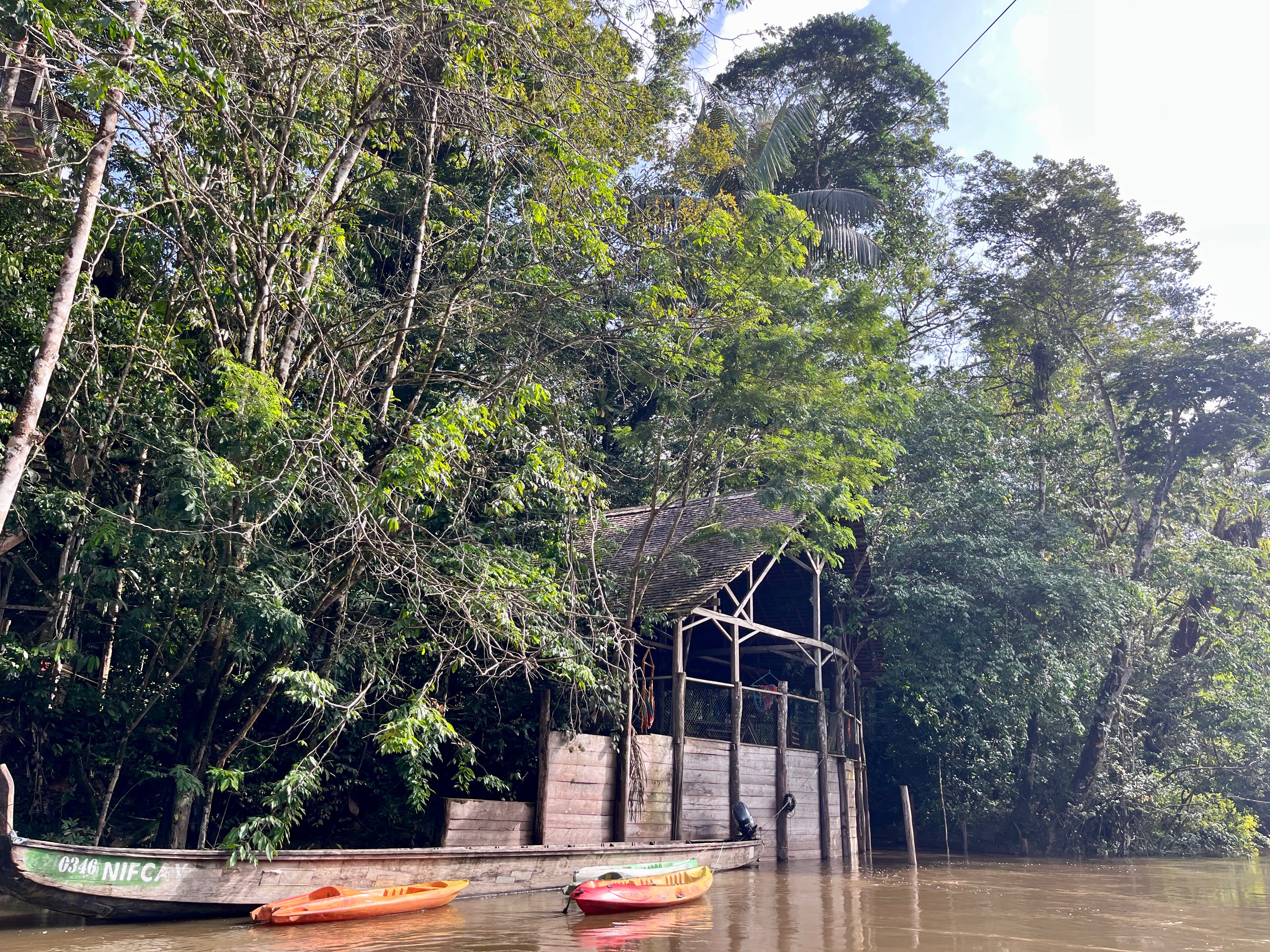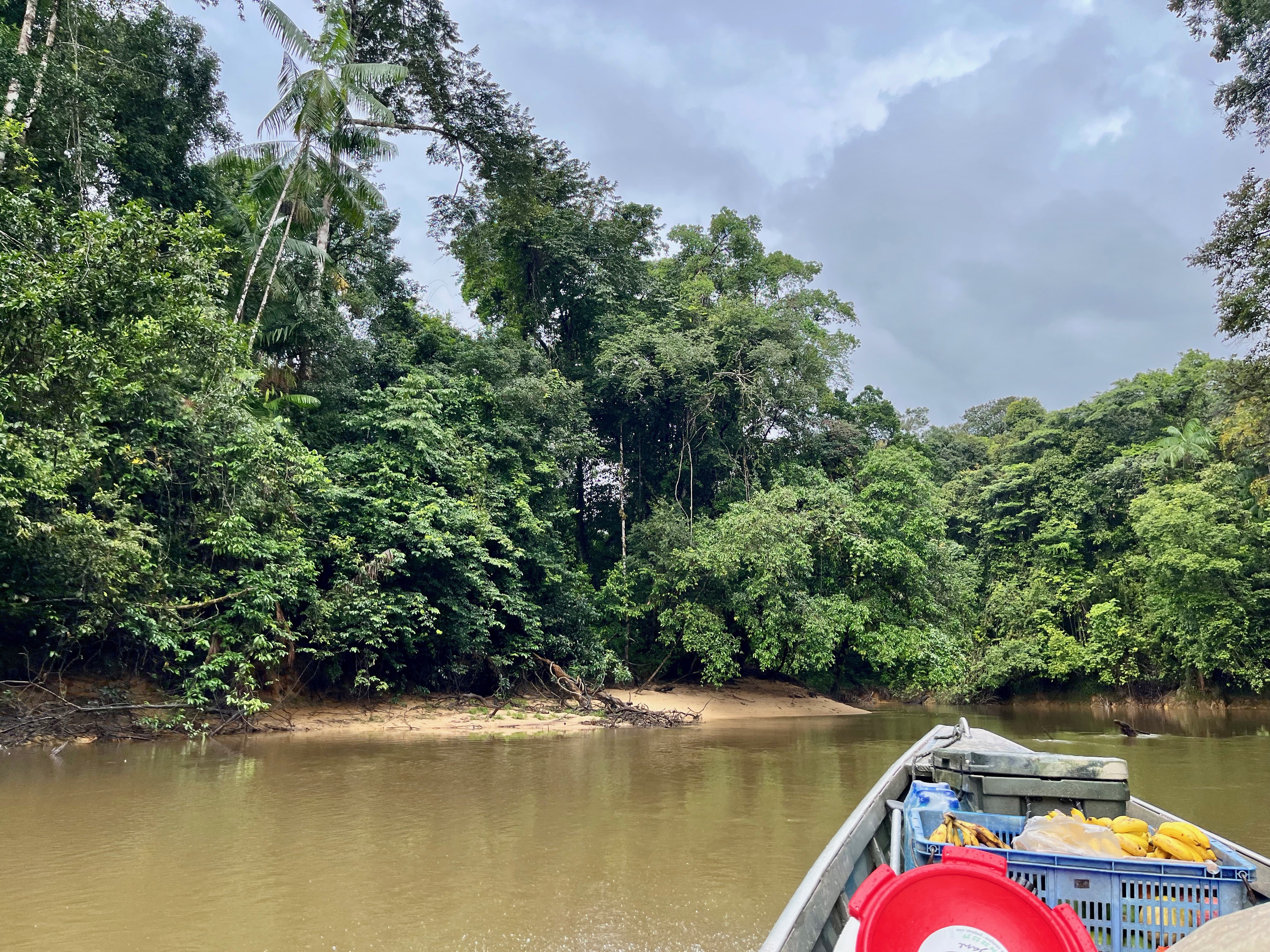Pirogue pendant 2h, d’abord presque sous le soleil, c’était vraiment ouf. Plus nous avancions, plus le fleuve devenait étroite, c’était de plus en plus nature vraiment sublime. Nous nous sommes pris une belle averse histoire de nous rafraichir…