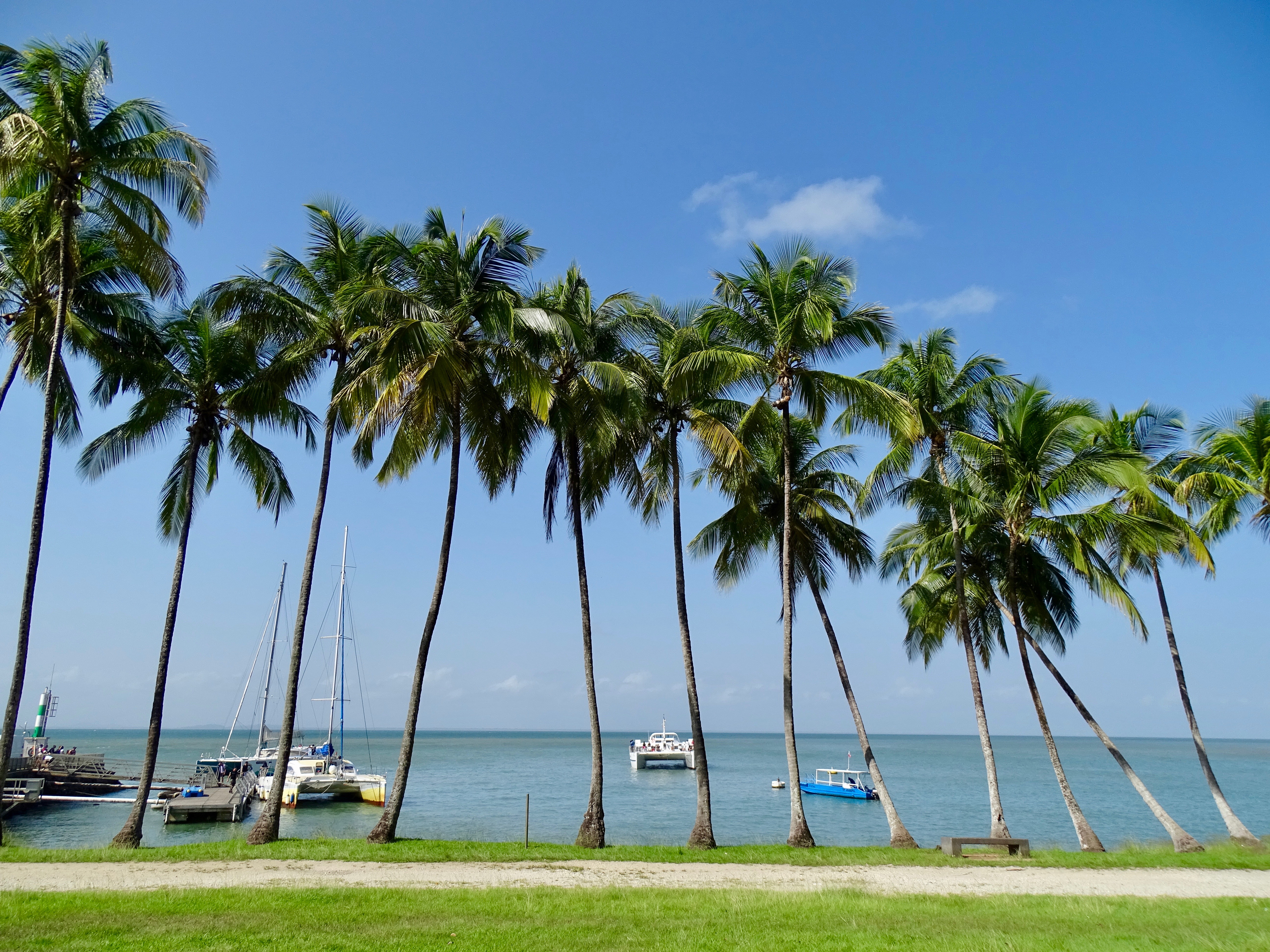 Direction la Pointe Rouge à Kourou, à 7h30, après avoir récupéré Thomas, pour rejoindre un catamaran, avec la compagnie Tropic Alizée. Traversée mouvementée (1h30) avec une mer très agitée, on a été bien mouillés.