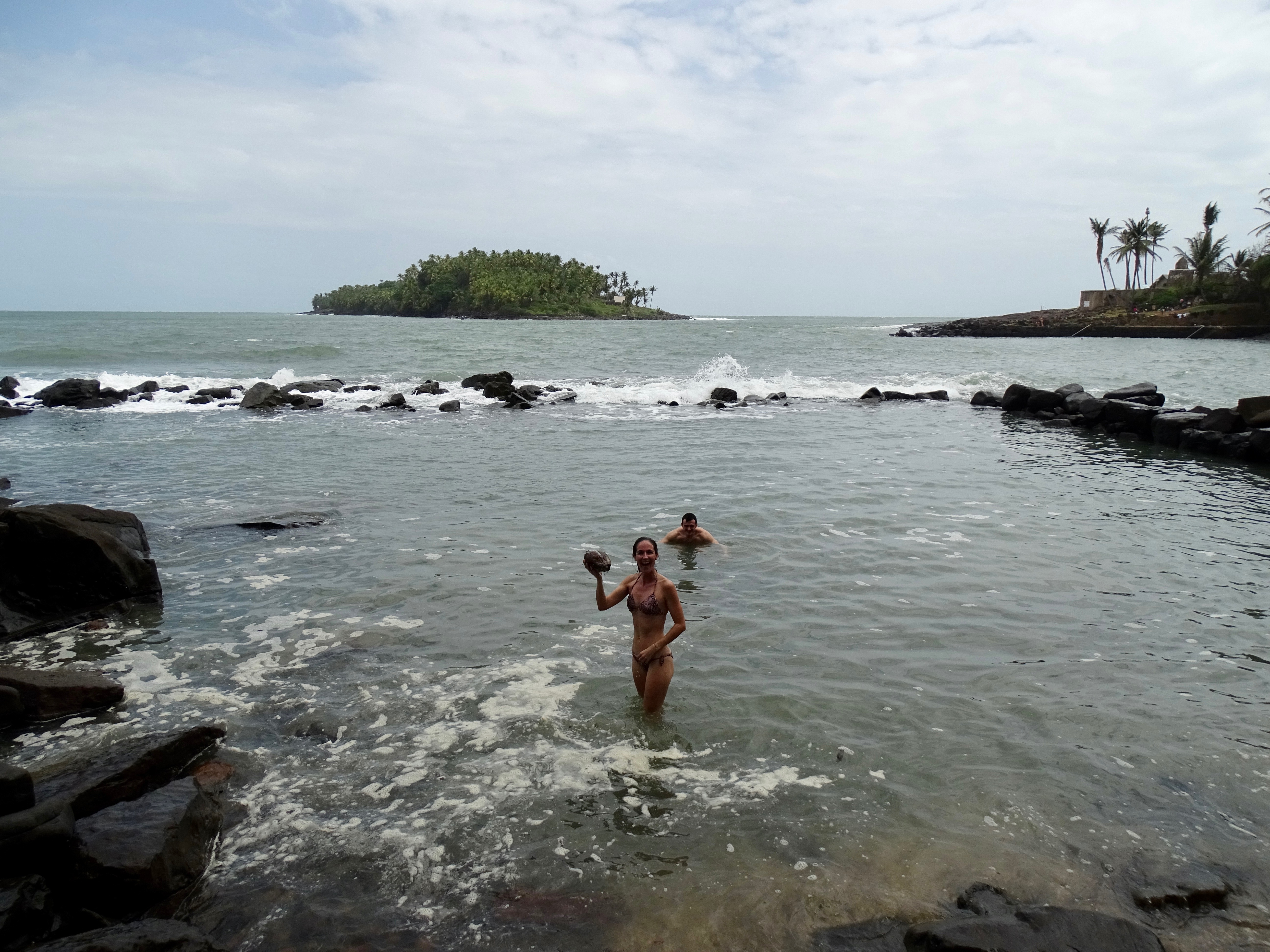 Petite baignade dans la piscine des bagnards, face à l’île du Diable (inaccessible) où il n’y a qu’une seule maison, celle de Dreyfus. Nous avons fait le tour de l’île qui est magnifique.