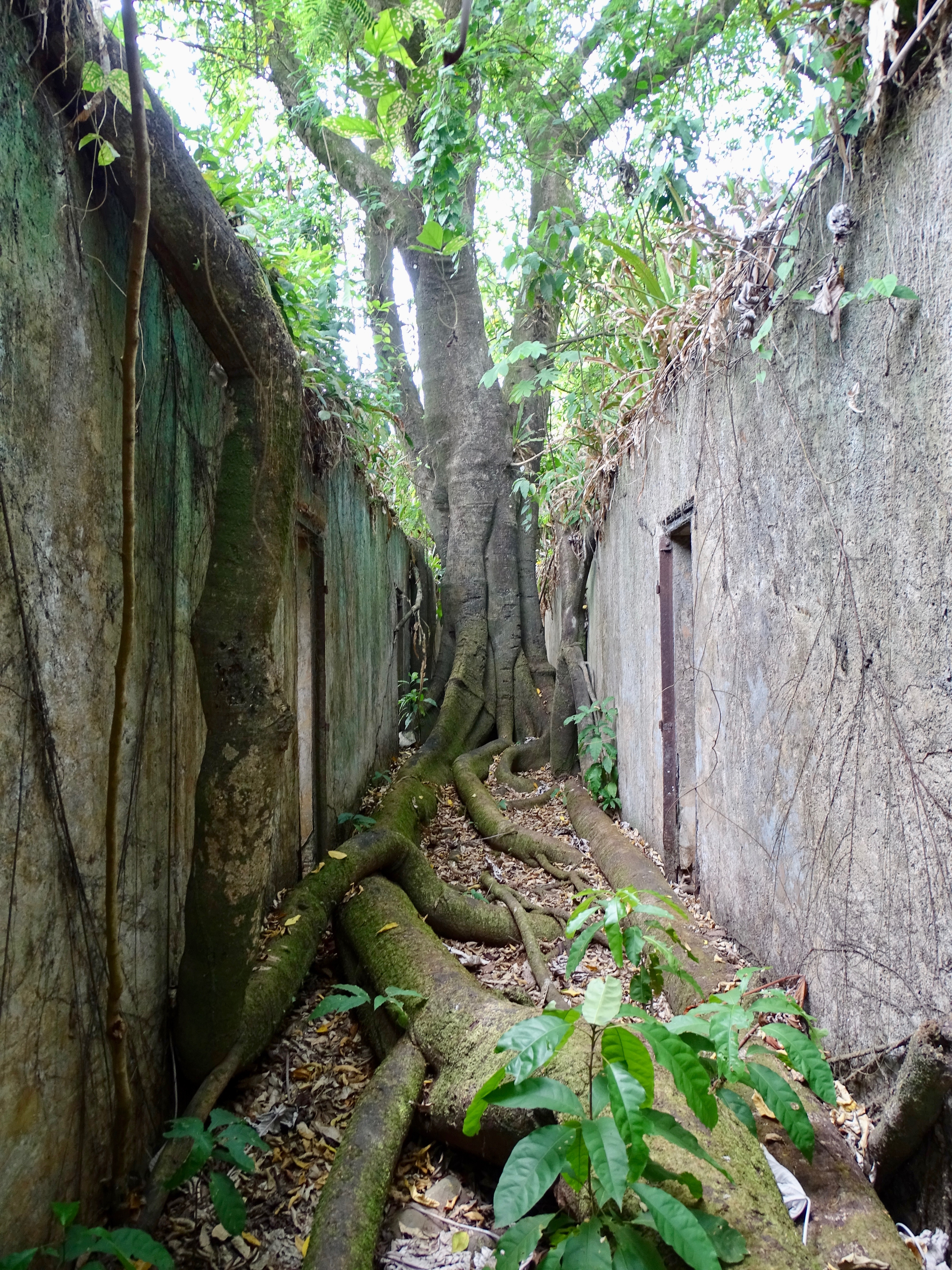 A un moment, bifurcation pour un tout petit chemin à gauche, pour suivre le sentier de Fort Diamant. Nous nous enfoncions en pleine forêt et, pour le coup, il n’y avait vraiment personne. Toujours pas de paresseux, en même temps, c’est difficile d’avancer sur un chemin avec des racines, tout en regardant en hauteur.