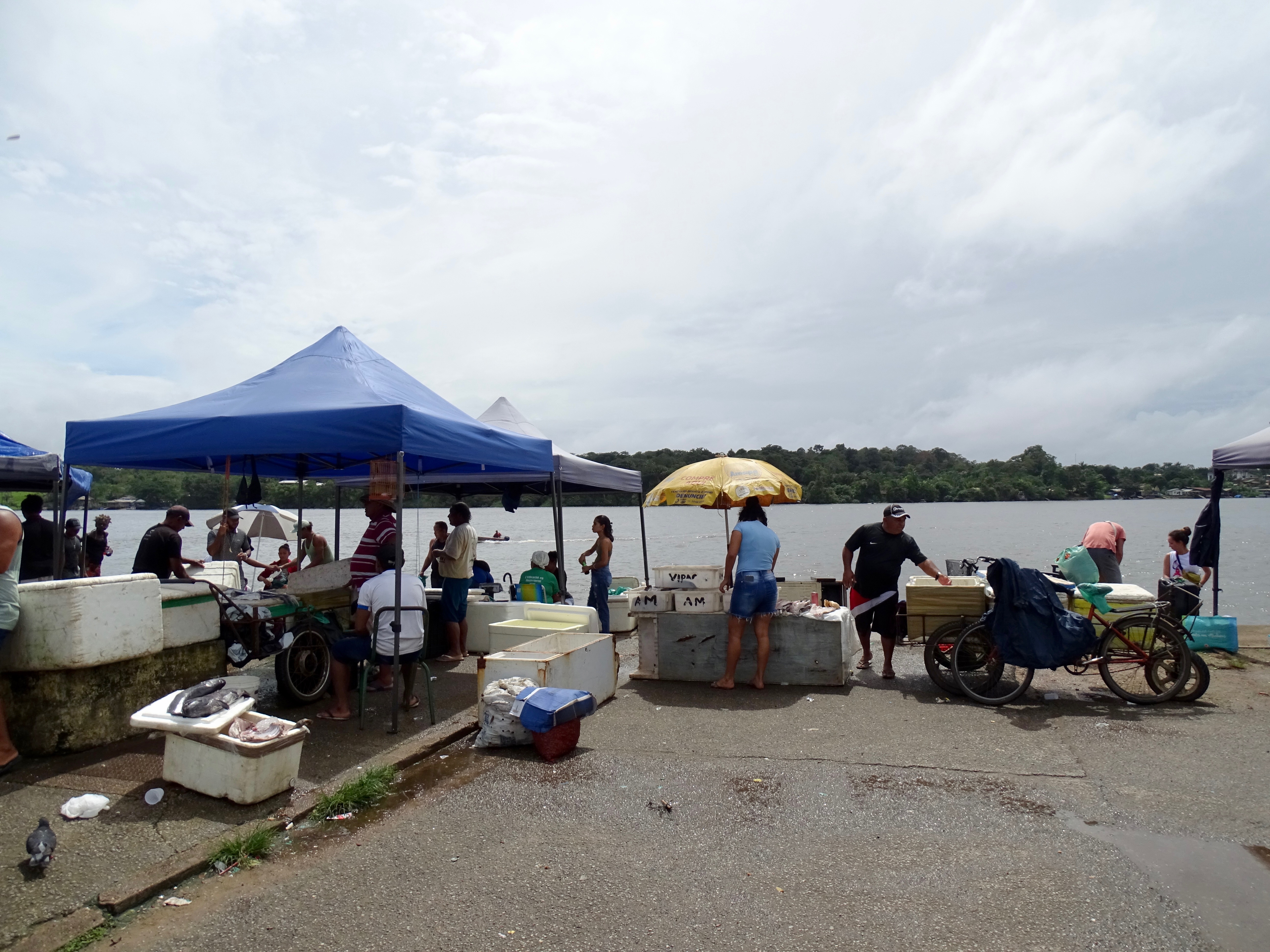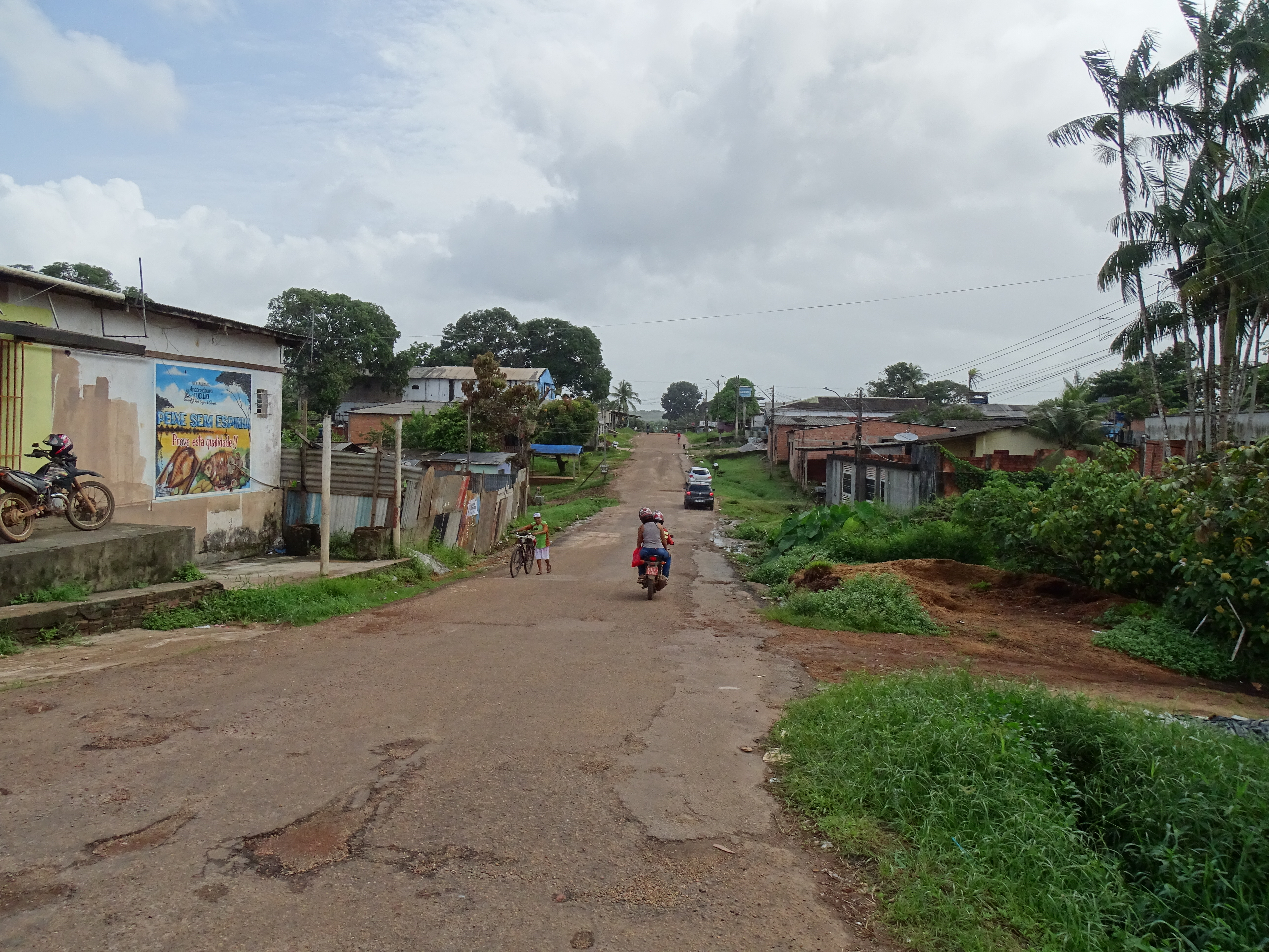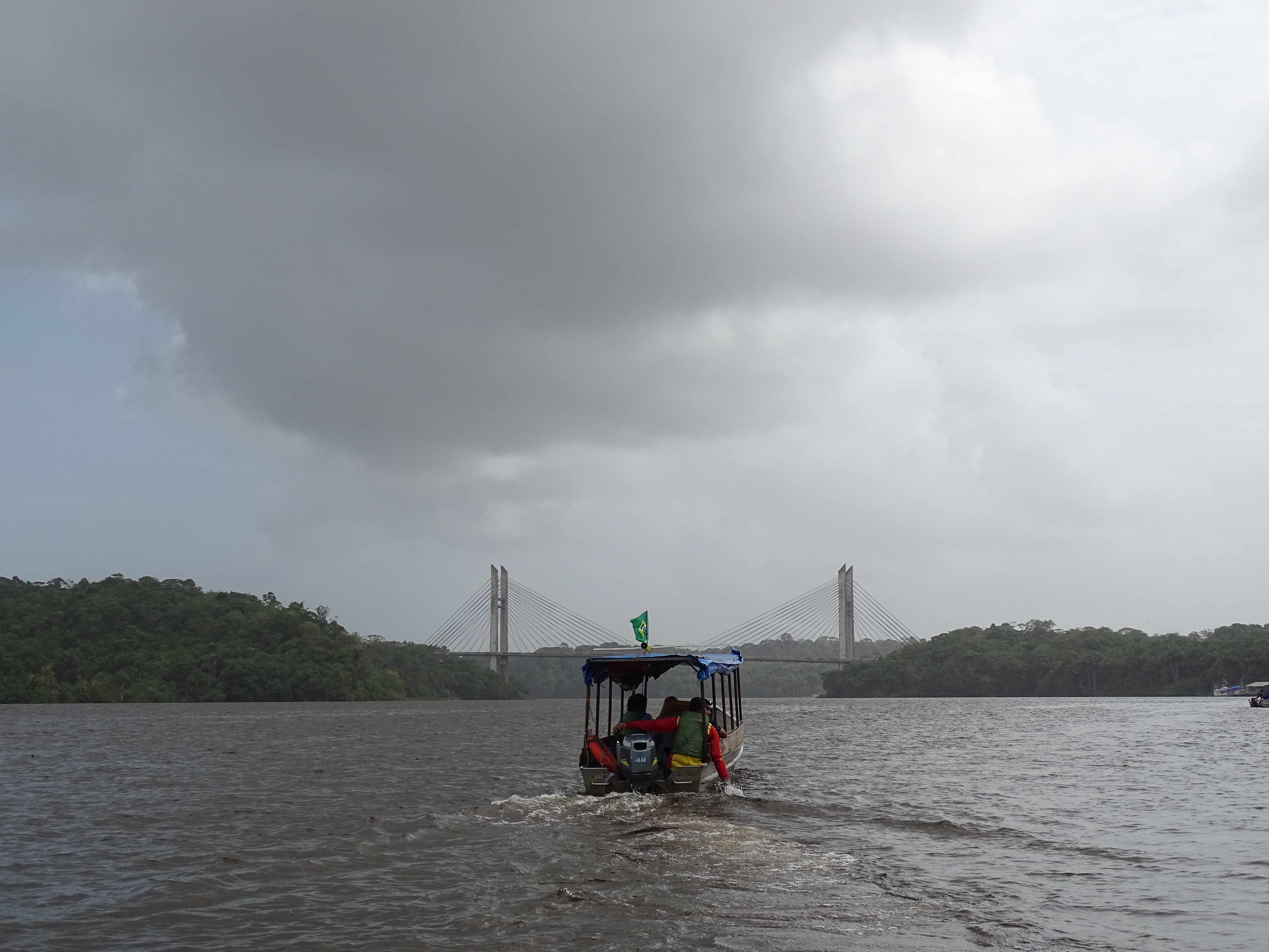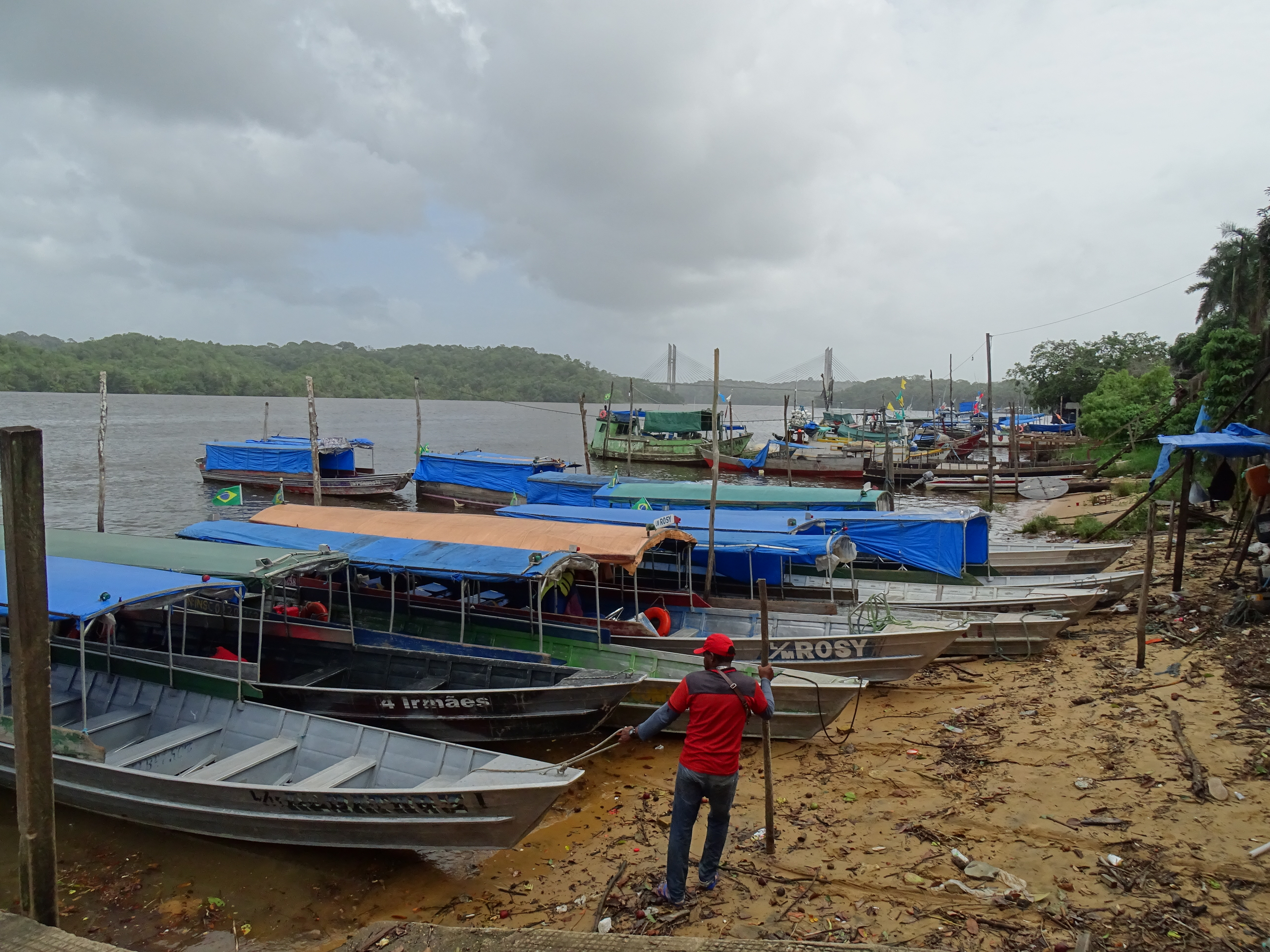 Nous sommes arrivé vers 10h30, il faisait presque beau et très chaud. Ville sans restaurant. Le seul intérêt est le passage vers le Brésil, en pirogue. Nous avons donc mangé dans un boui-boui et la pluie s’est remise à tomber…