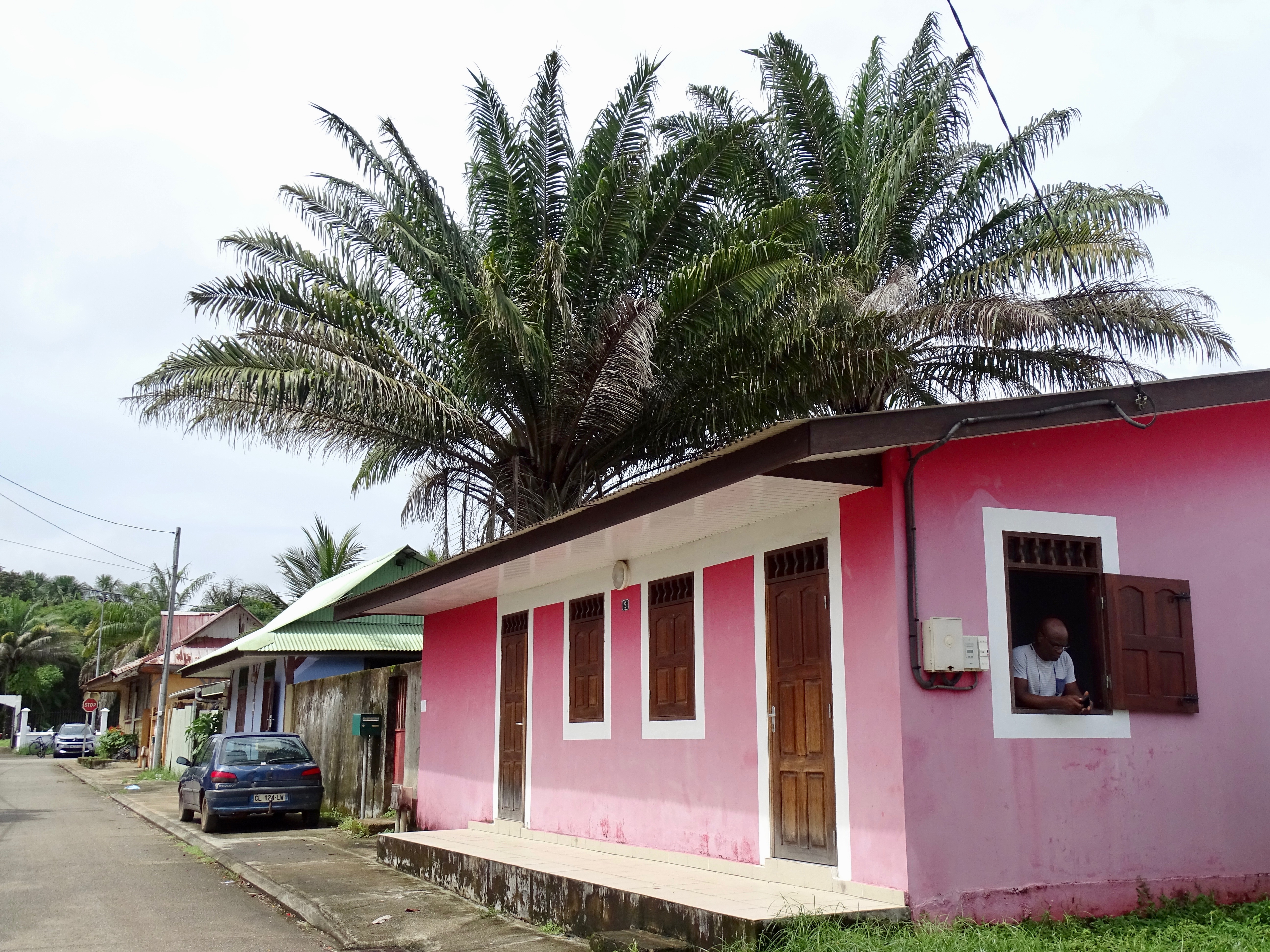 17h – nous avons récupéré la voiture de location à l’aéroport. Il faisait une chaleur incroyable, 30 degrés, et surtout très humide. Nous sommes arrivés rapidement à l’hôtel Ker Alberte, dans le centre de Cayenne.