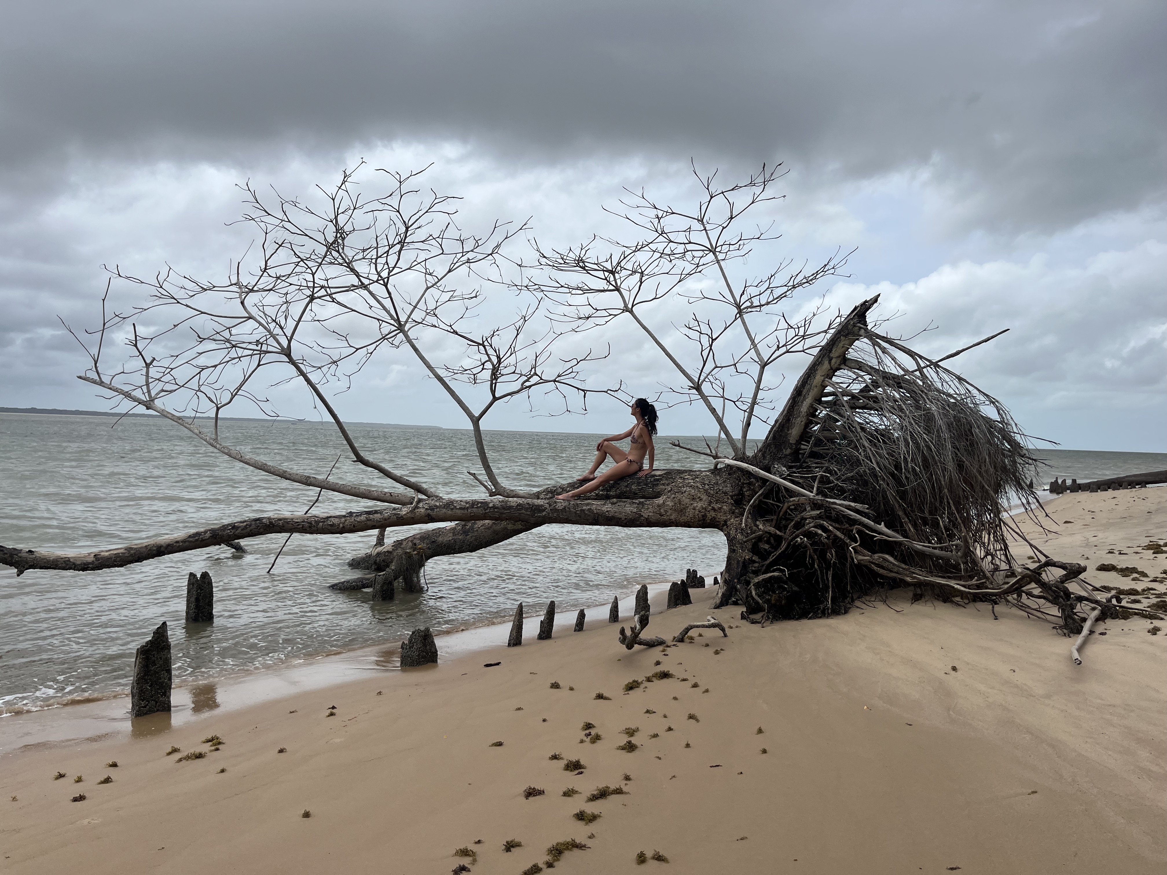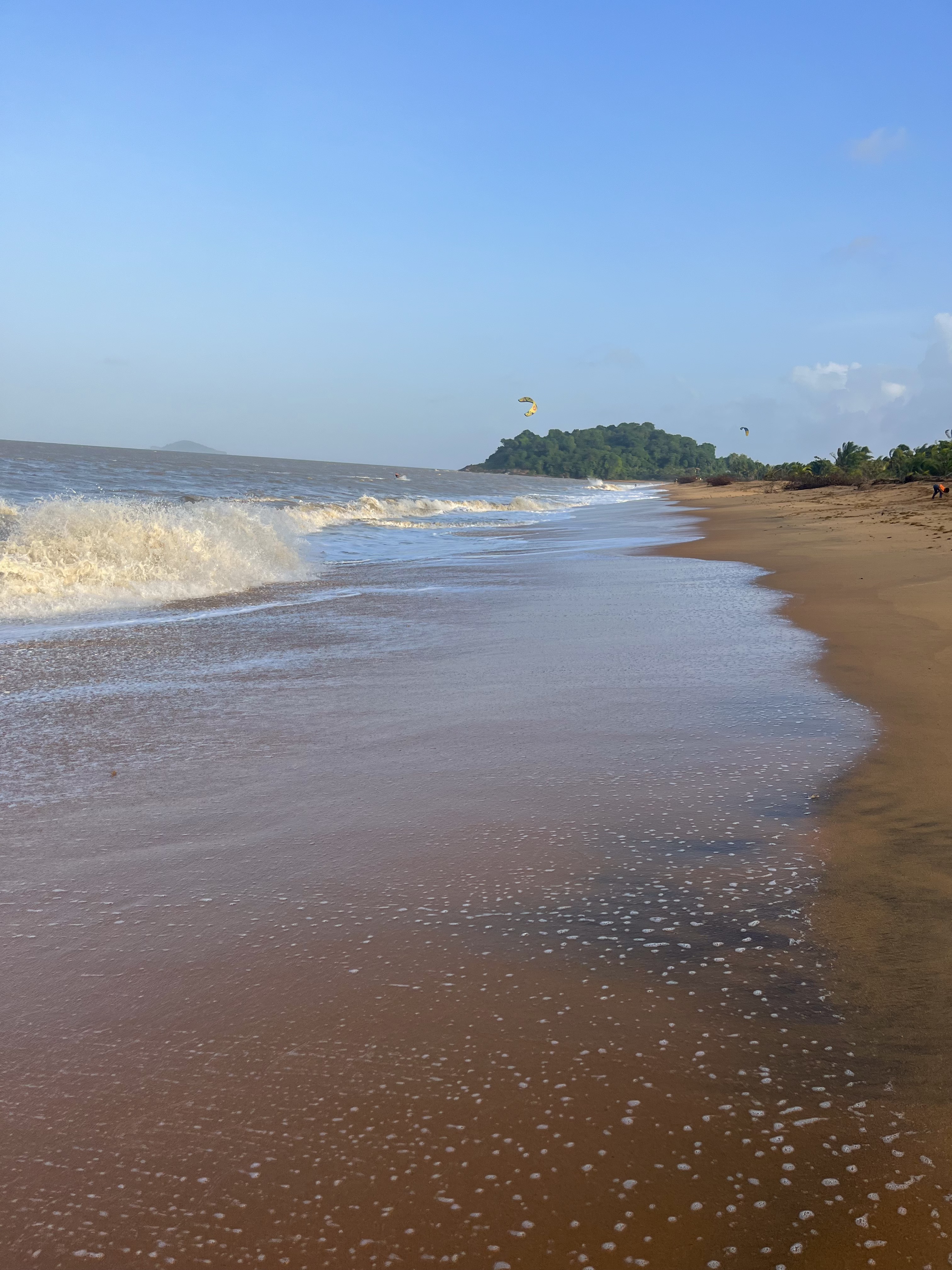 Puis direction Awala Yalimapo pour les tortues et la playa. C’est une grande et belle plage dont une partie est à l’embouchure du fleuve Maroni et l’océan. Nous avons marché tout le long de la plage sans voir une seule tortue !