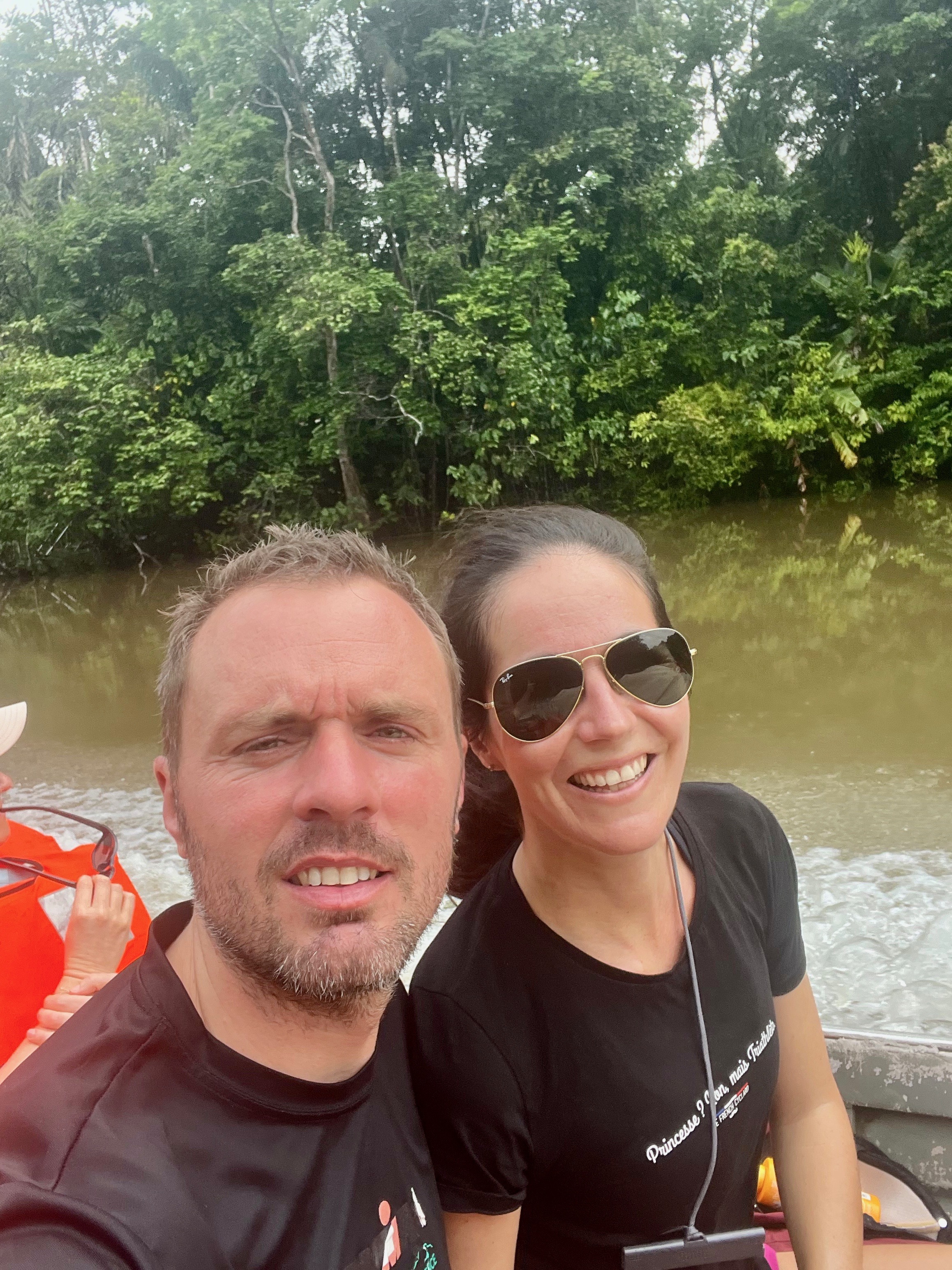 Au retour : quartier libre. Nous avons donc fait, tous les deux, un tour en barque, on ramait haha, c’est le cas de le dire, surtout à contre courant ! Je me suis rapidement baignée car pas sereine avec le caïman à proximité.