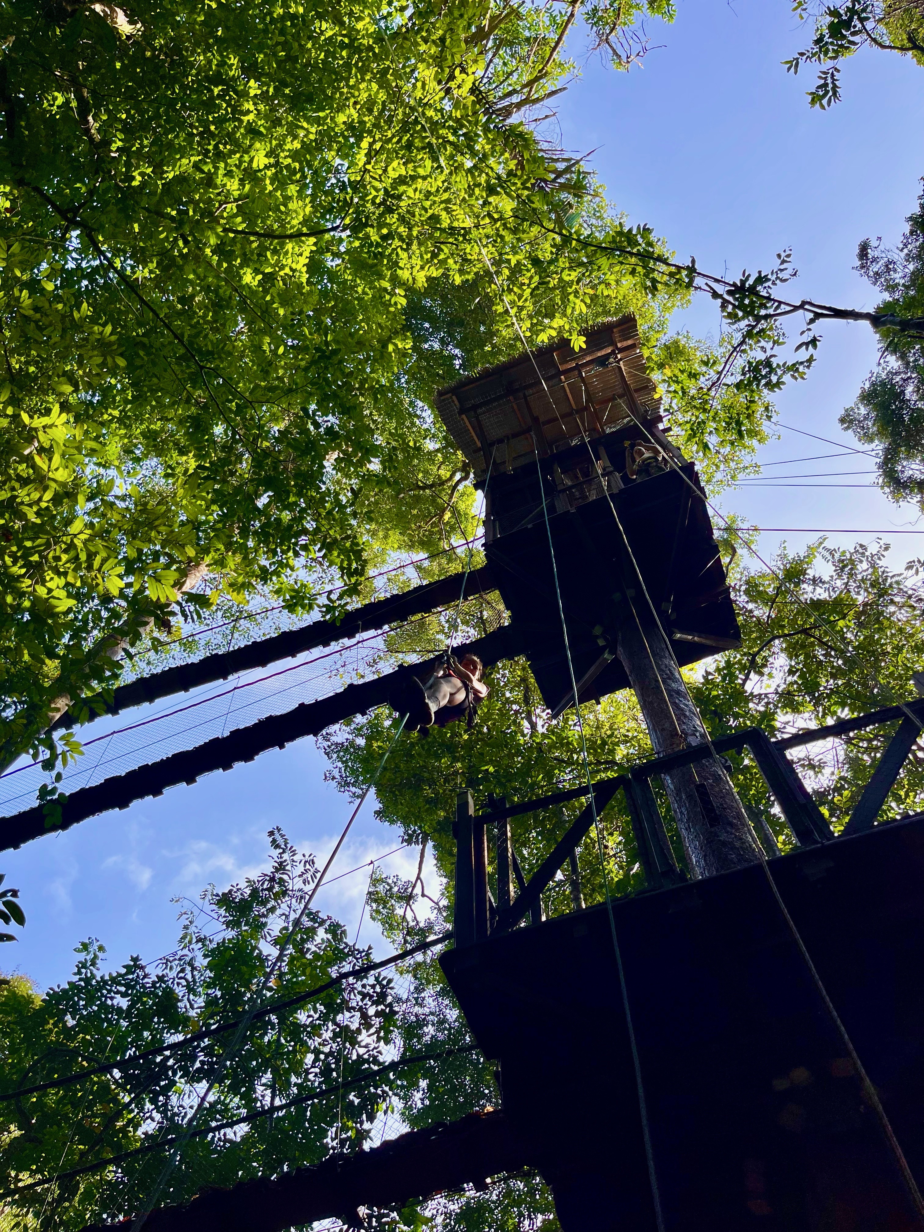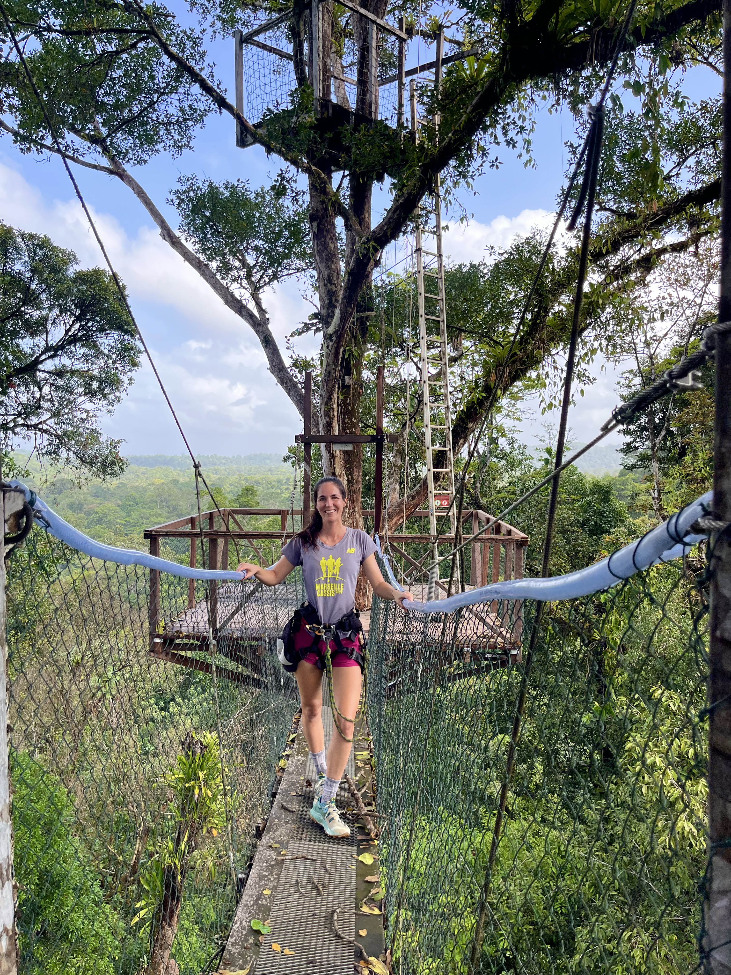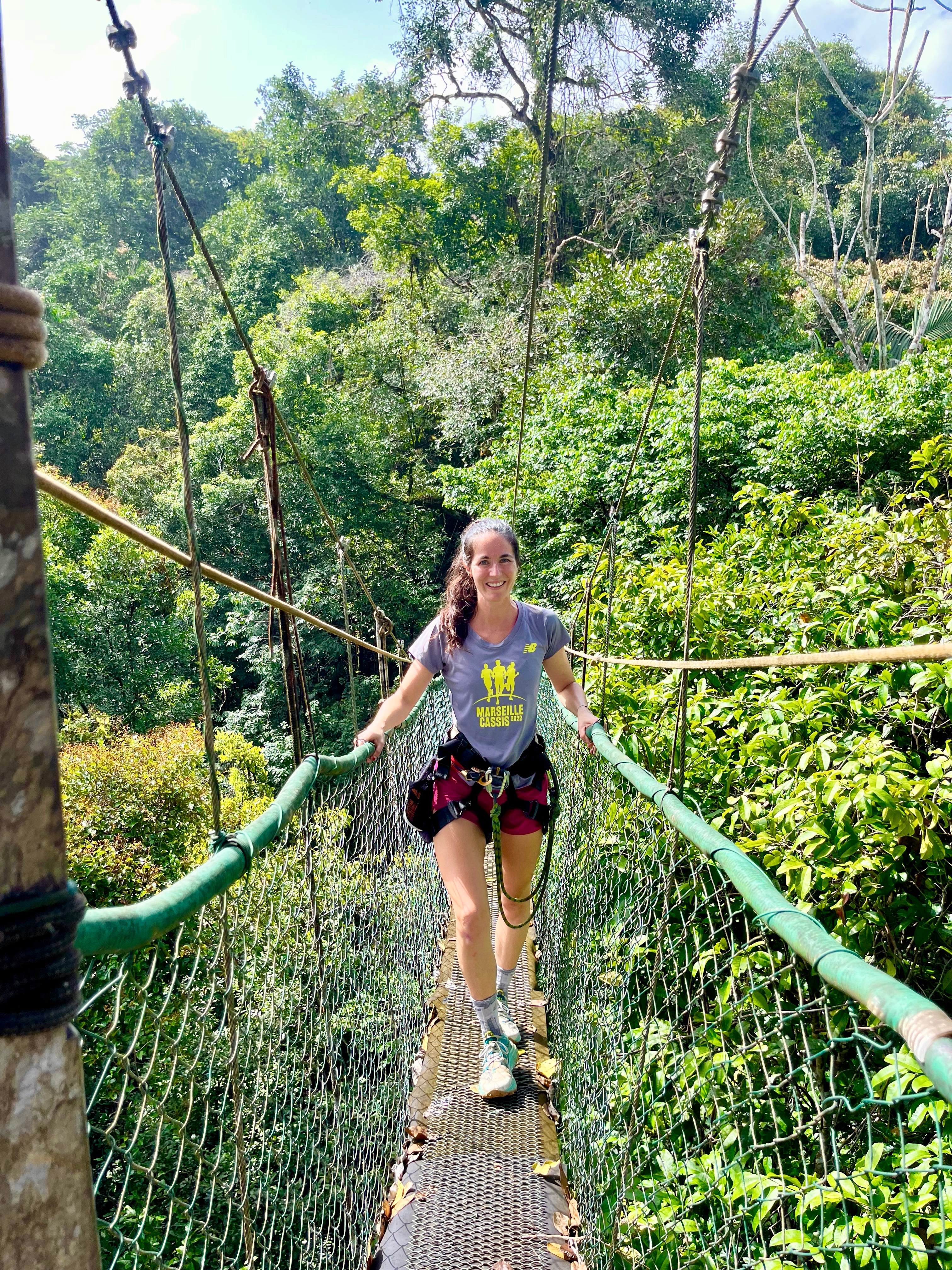 Nous partions pour découvrir la canopée avec tyrolienne, rappels, ponts suspendus, etc… Nous étions avec le groupe de la veille. Nous avons débuté par la tyrolienne, c’était vraiment trop cool.