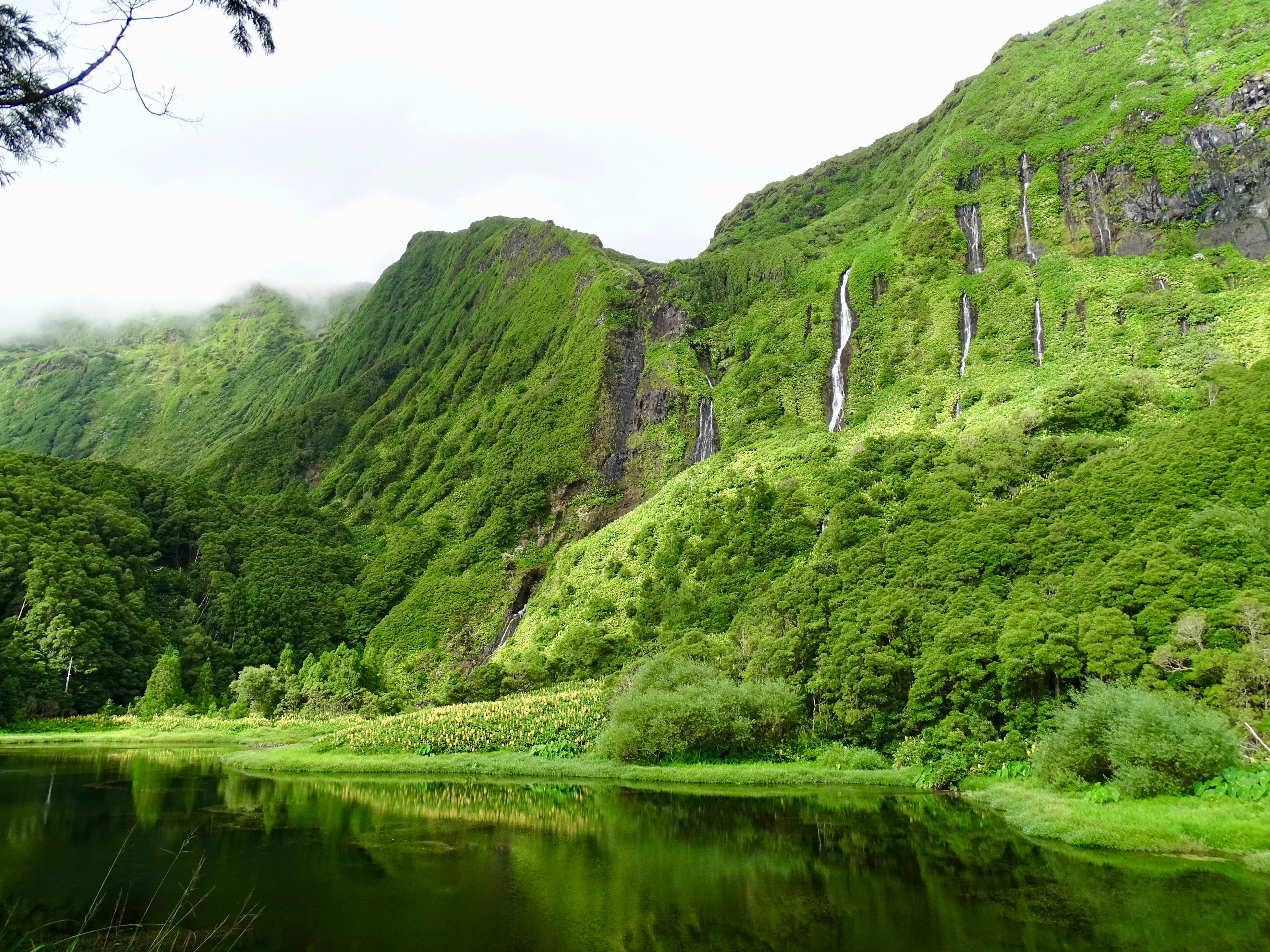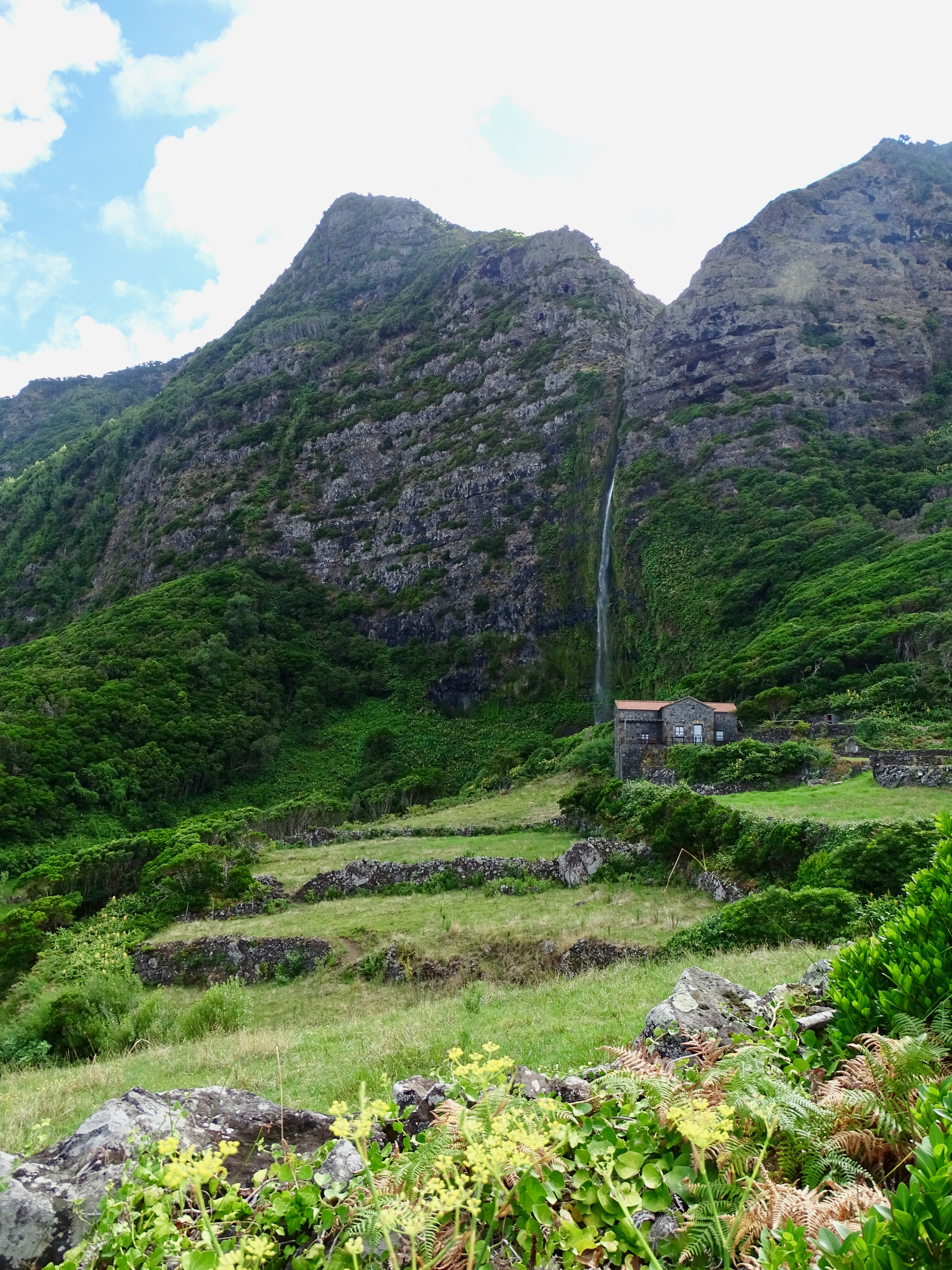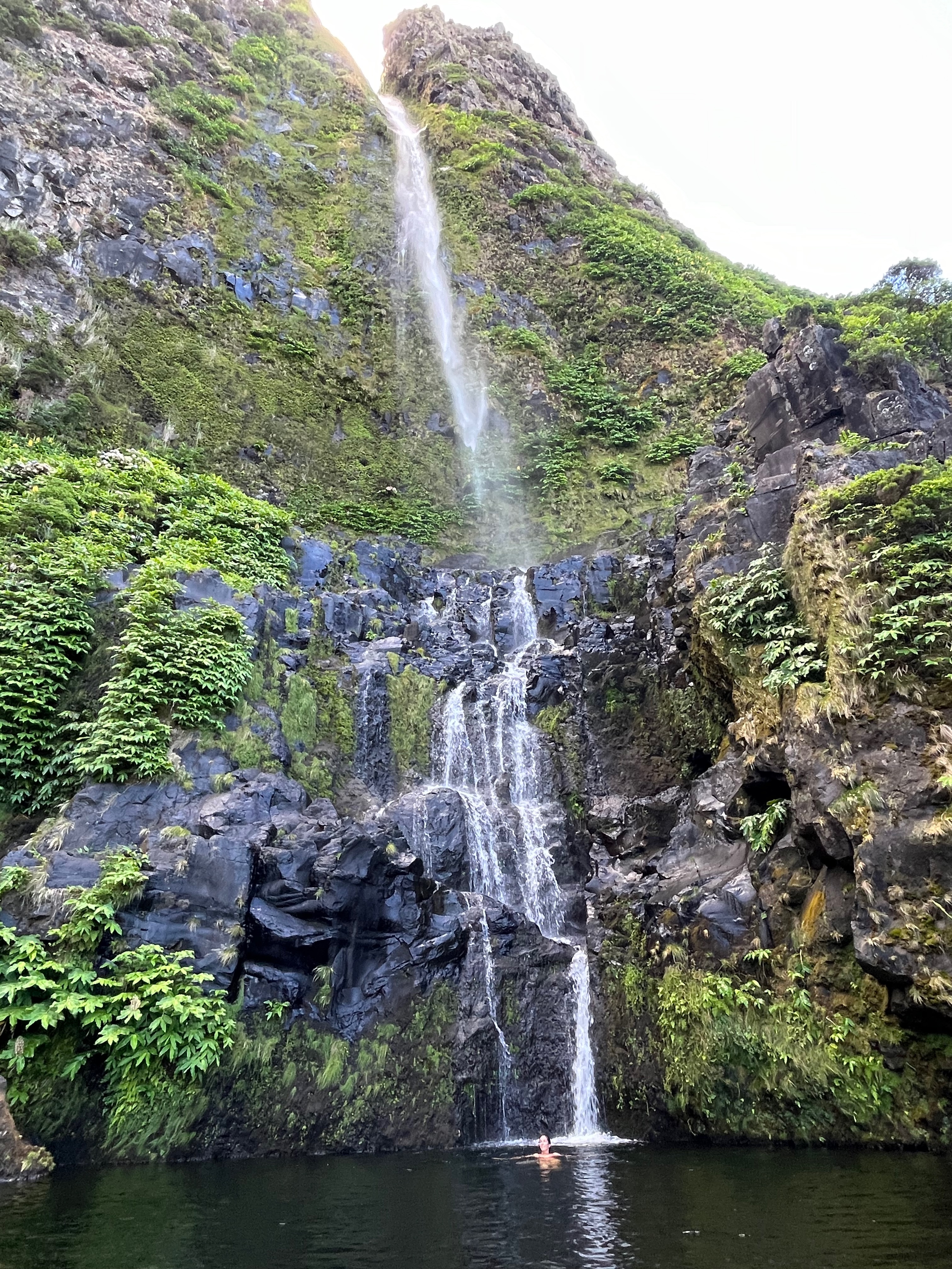 La cascade est dans un cirque, c’est superbe. Seul bémol, il n’y avait pas beaucoup d’eau en raison du peu de pluie de cet été, ce qui pour nous était bien mais peu habituel pour les Açores, surtout Flores où il pleut 300 jours/an !
