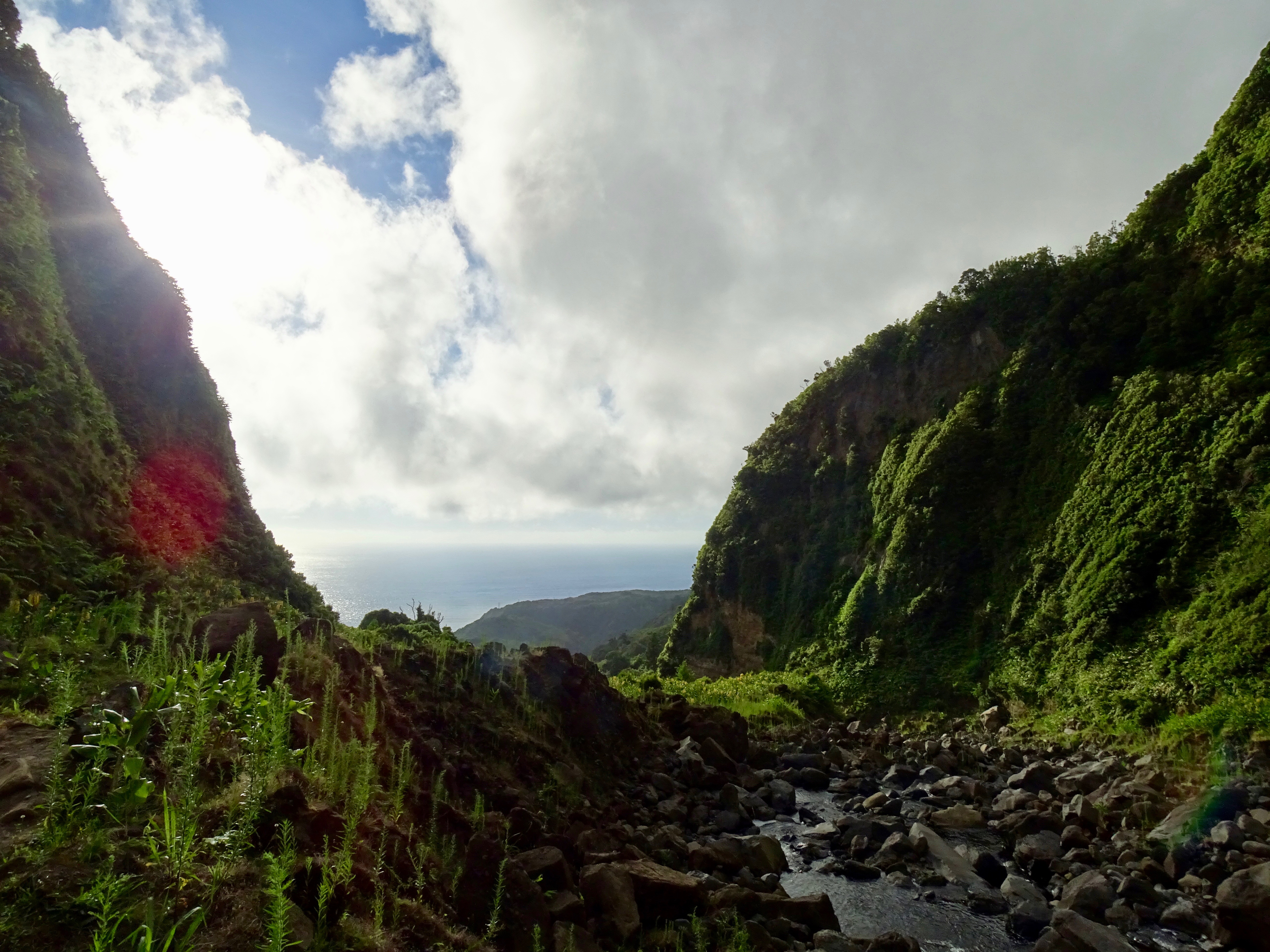 10 km/500 D+ jusqu’à Faja Grande, pas de difficultés ni d’éboulements, juste une descente raide à la fin, ça peut être glissant s’il pleut et pas mal de végétation.