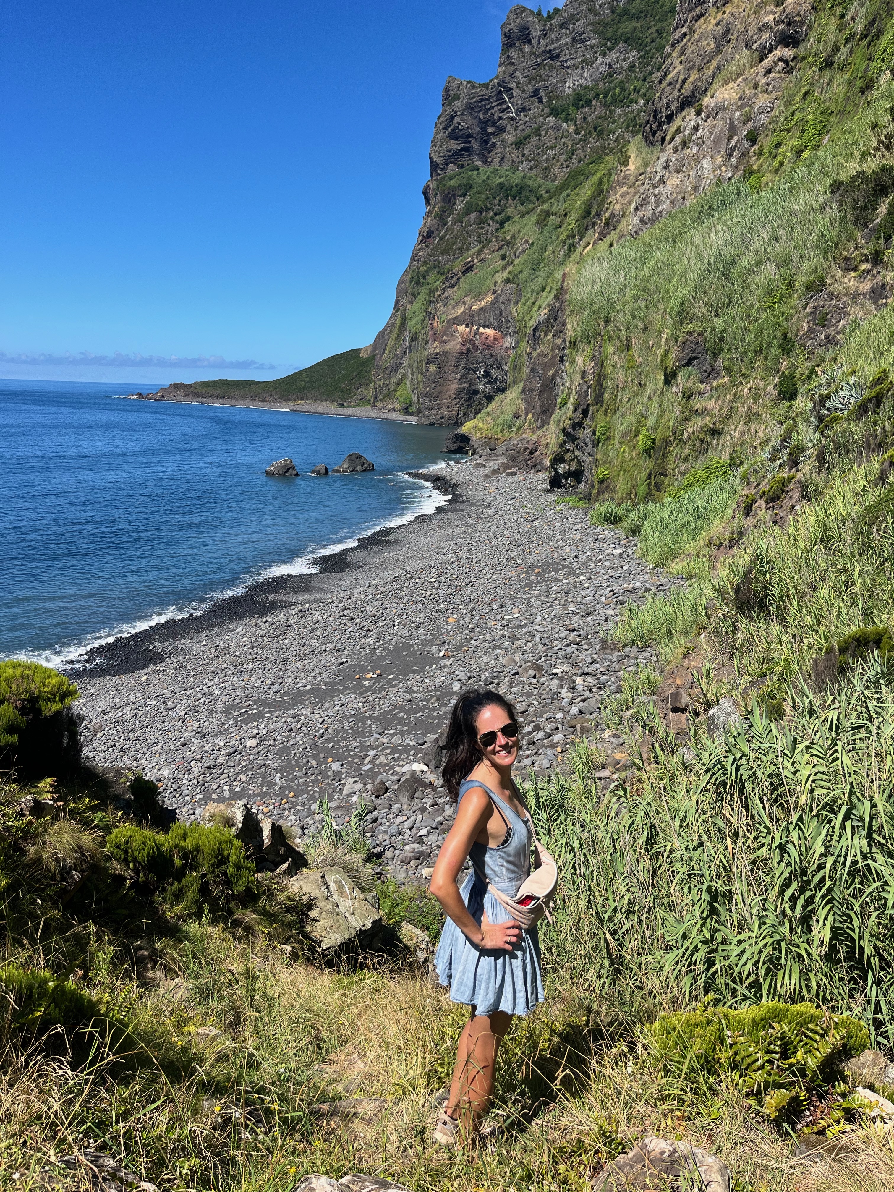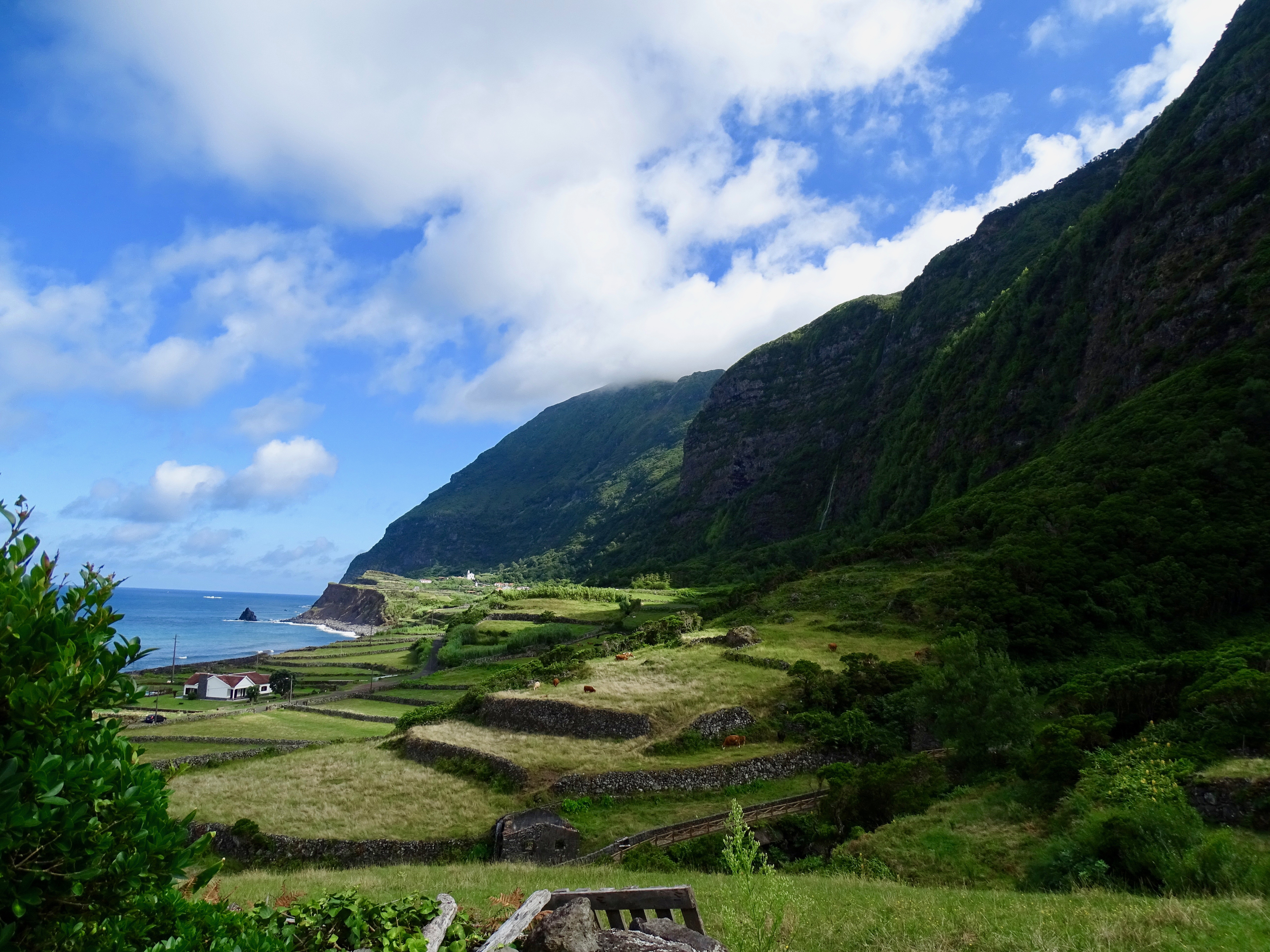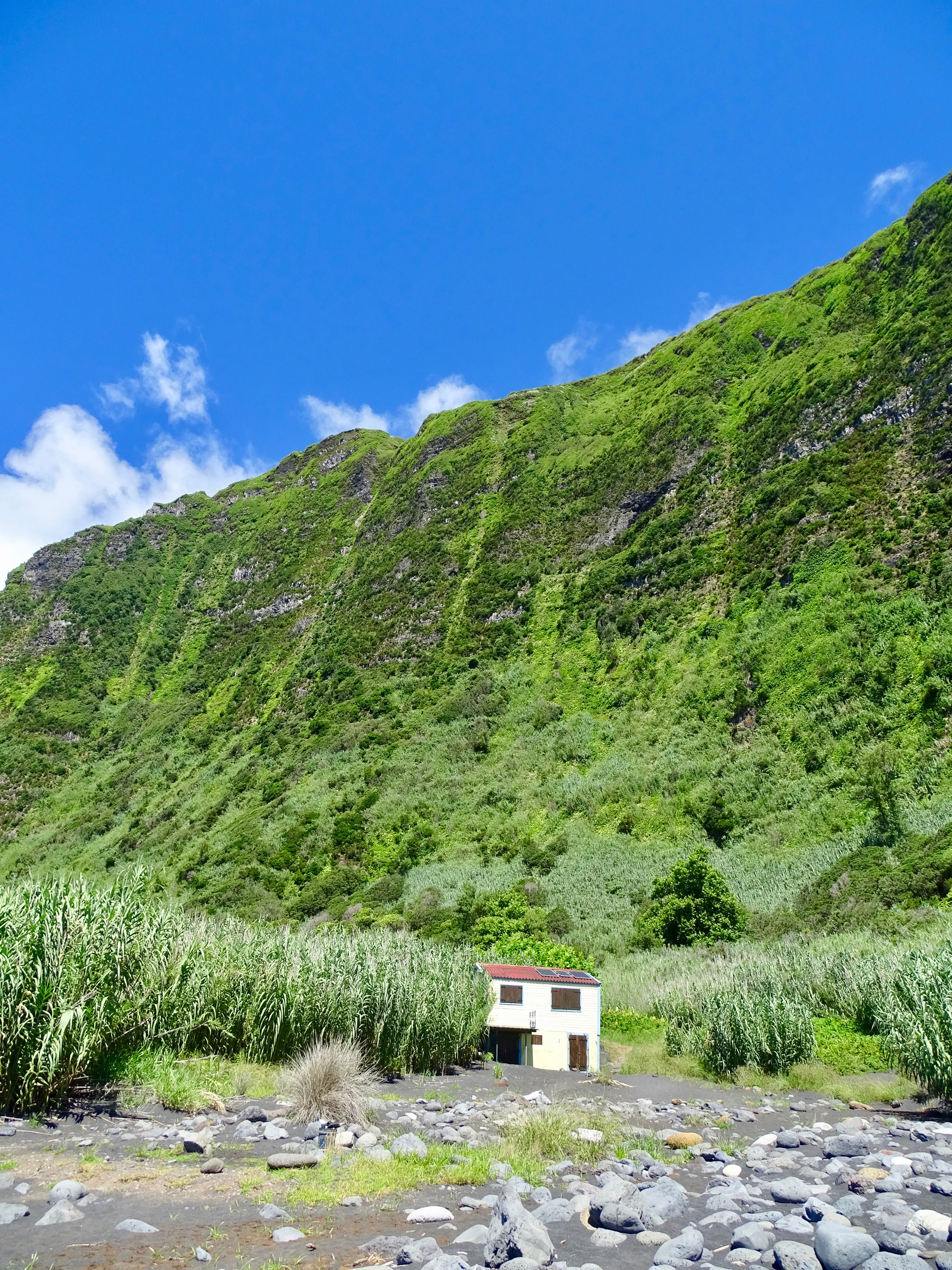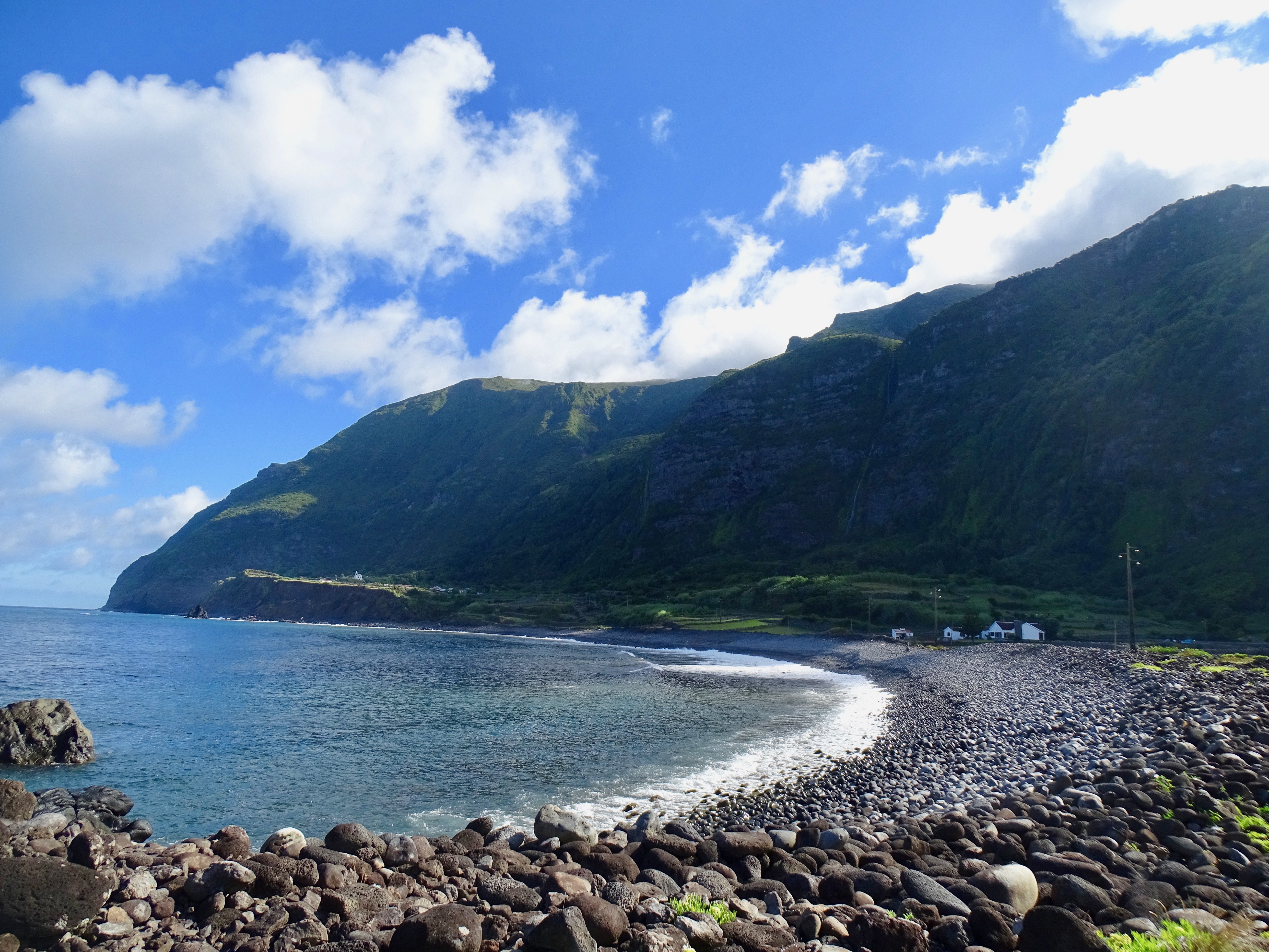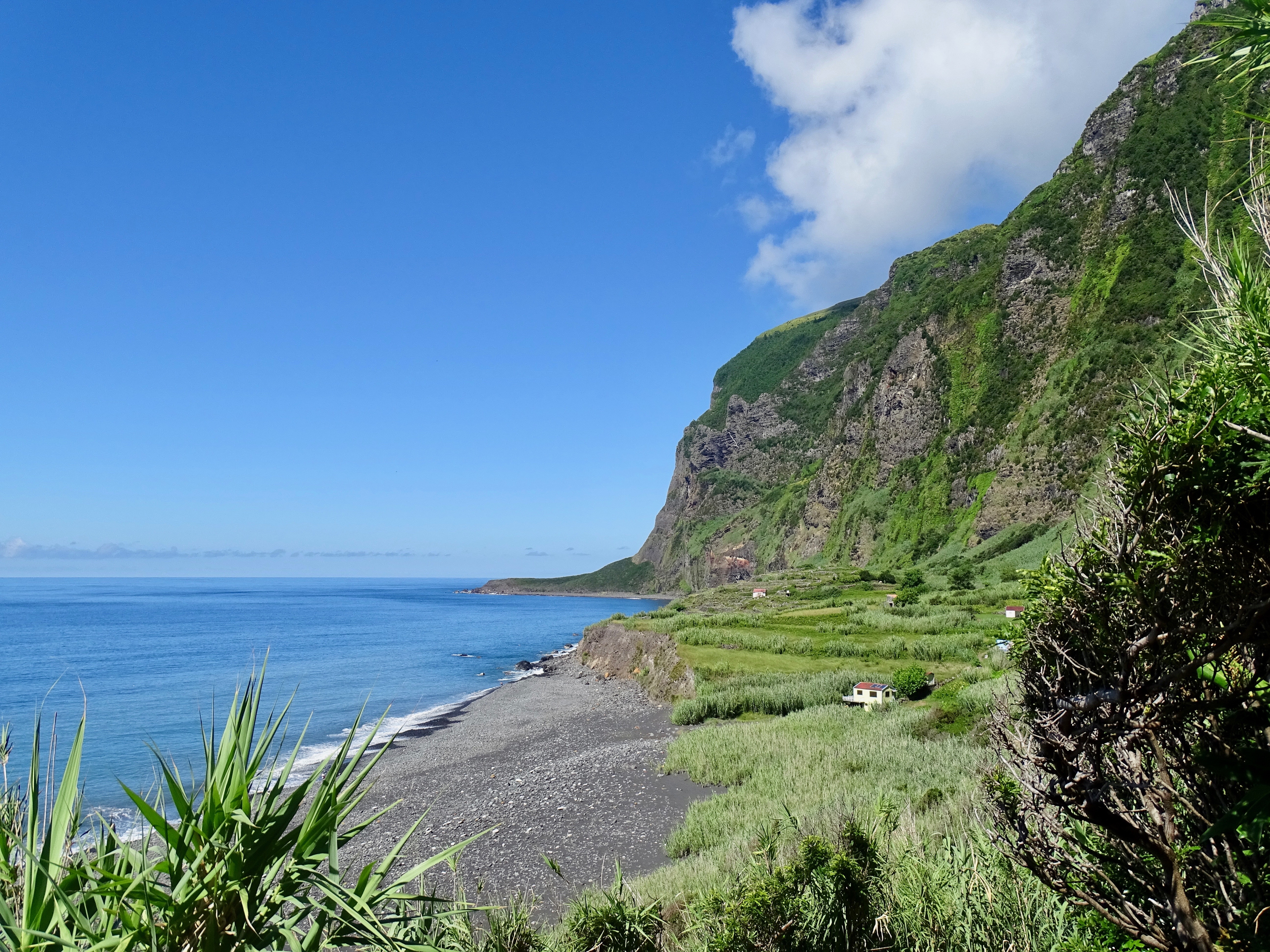 Réveil dans notre petite cabane, excellent petit déjeuner, avec du beurre salé. Nous sommes partis directement de notre logement par un petit chemin, pour Faja Grande. Petit village sympa avec une grande plage de galets et des falaises.