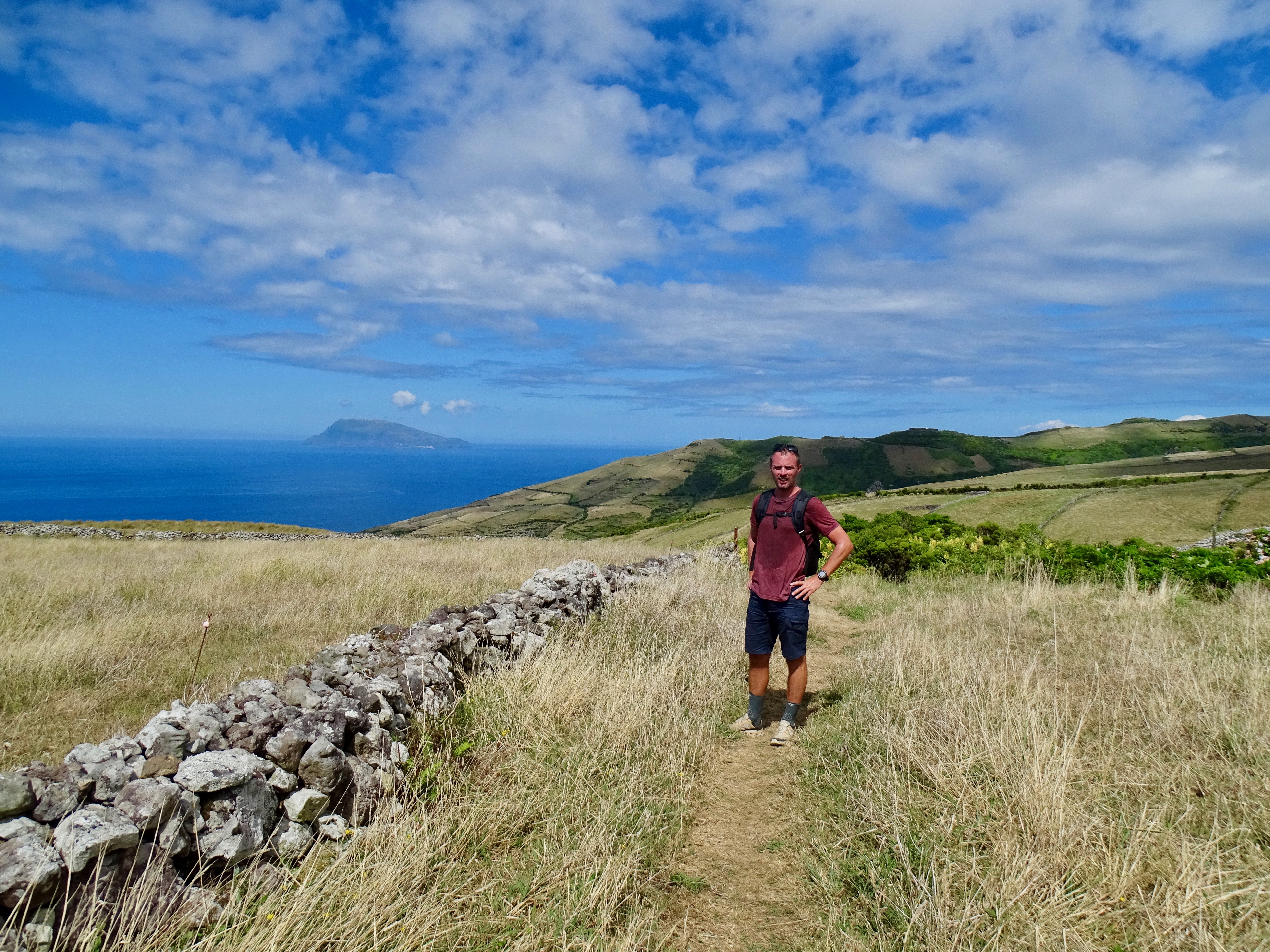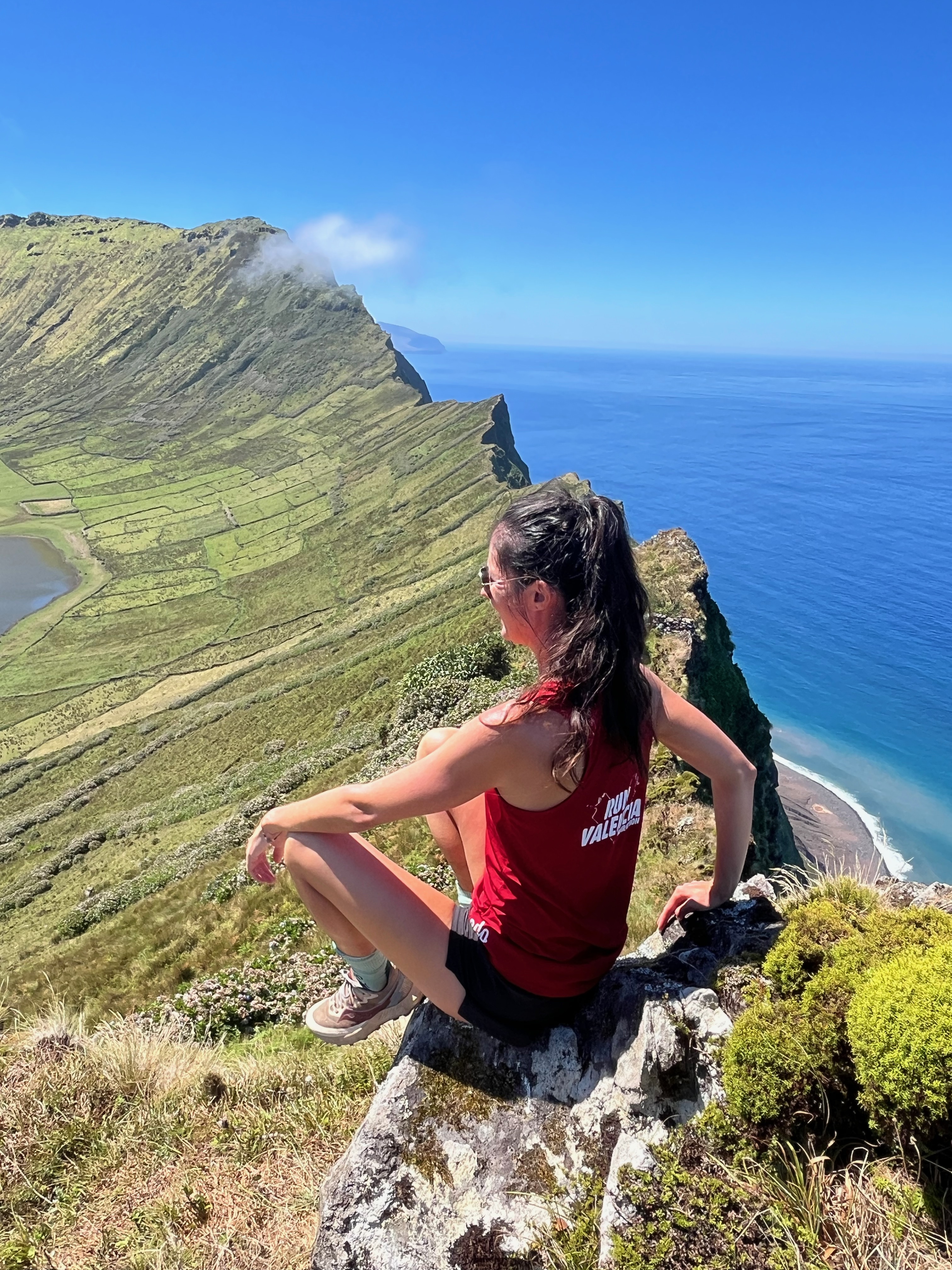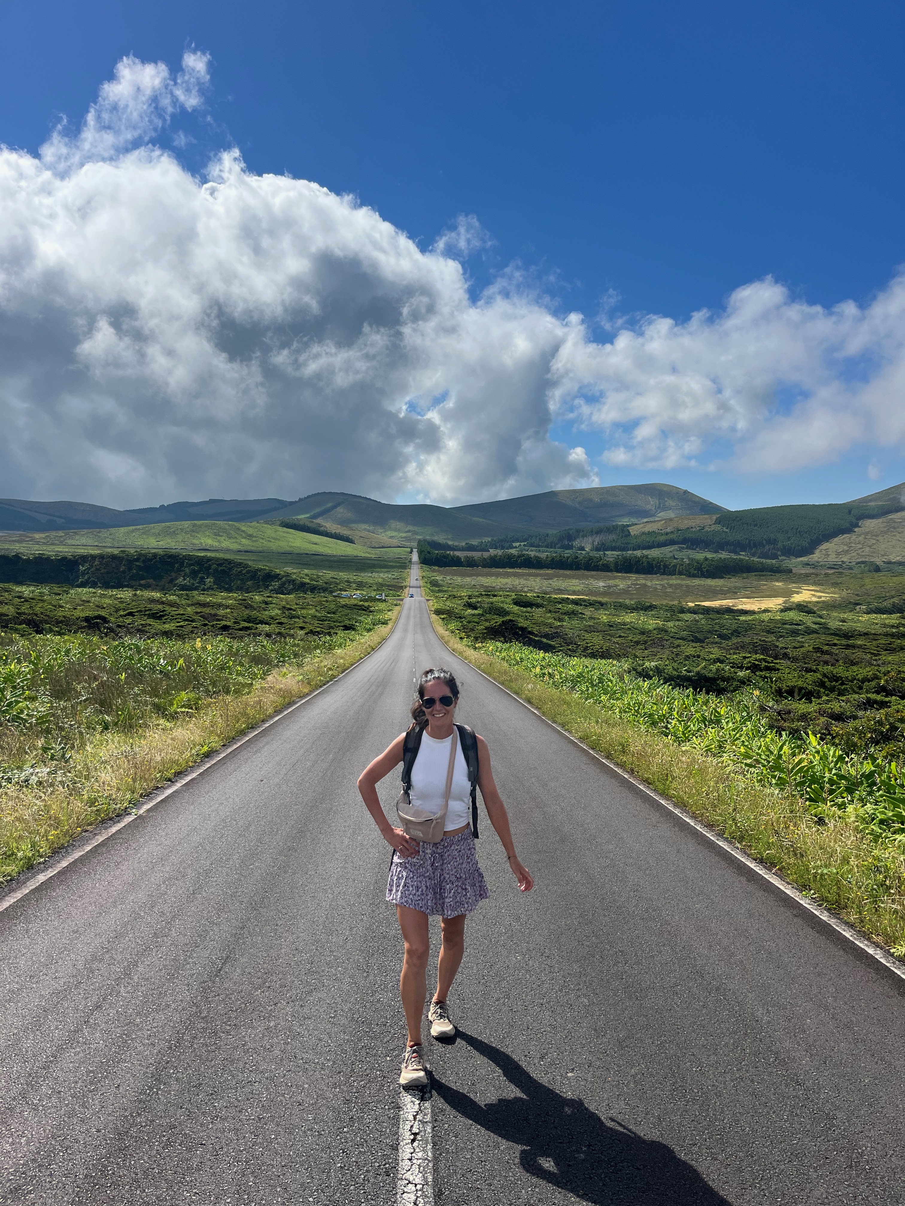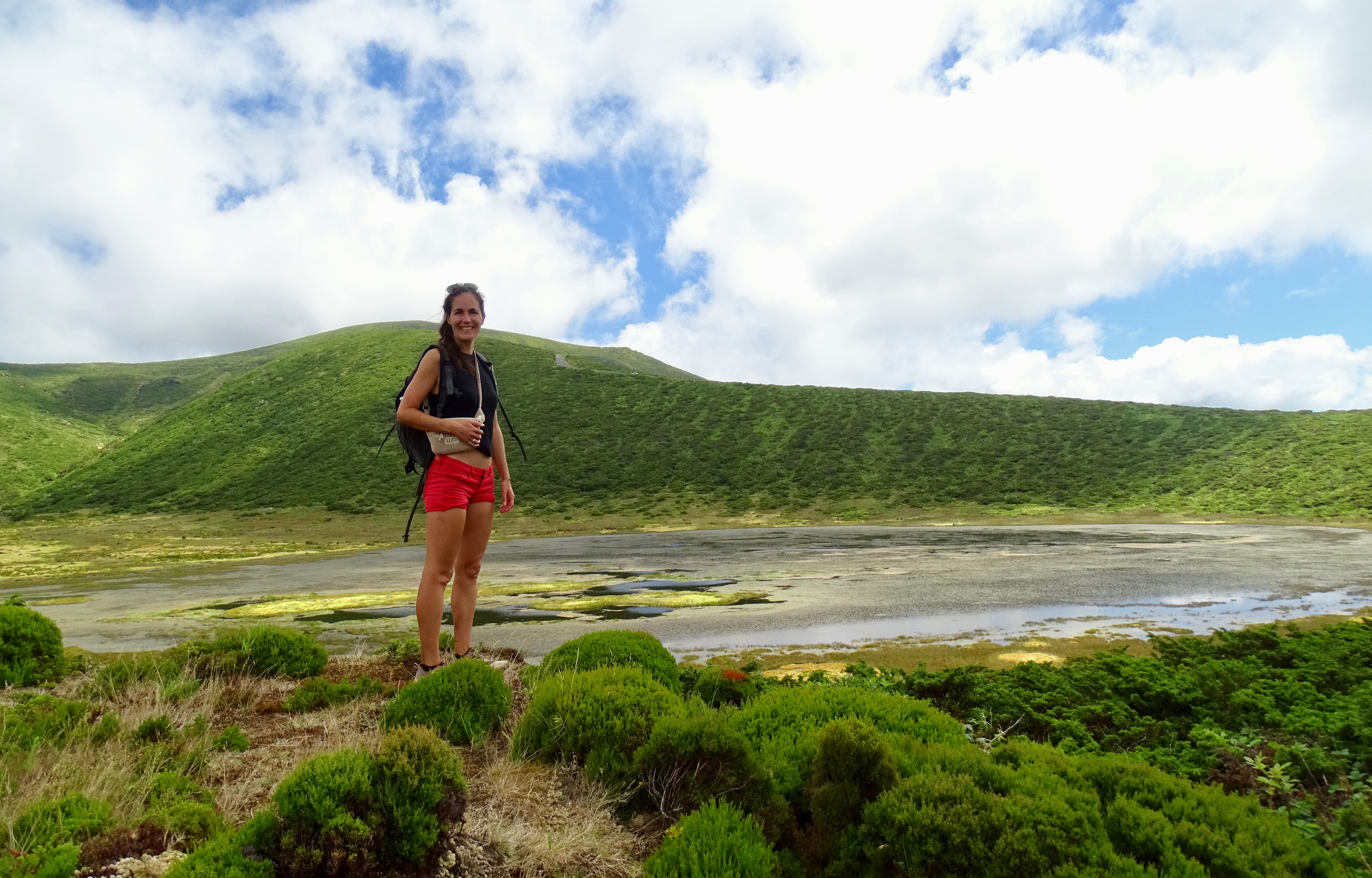 Puis en stop direction le début de la rando pour les autres lacs : Rasa et Funda. Le chemin n’est pas indiqué (regarder sur Alltrail) et il n’est pas passant donc pas mal herbeux. C’était superbe et on a atteint les deux Caldeira dont une très verte et vue mer. Nous avons dû continuer sur la route en marchant car aucune voiture à l’horizon…