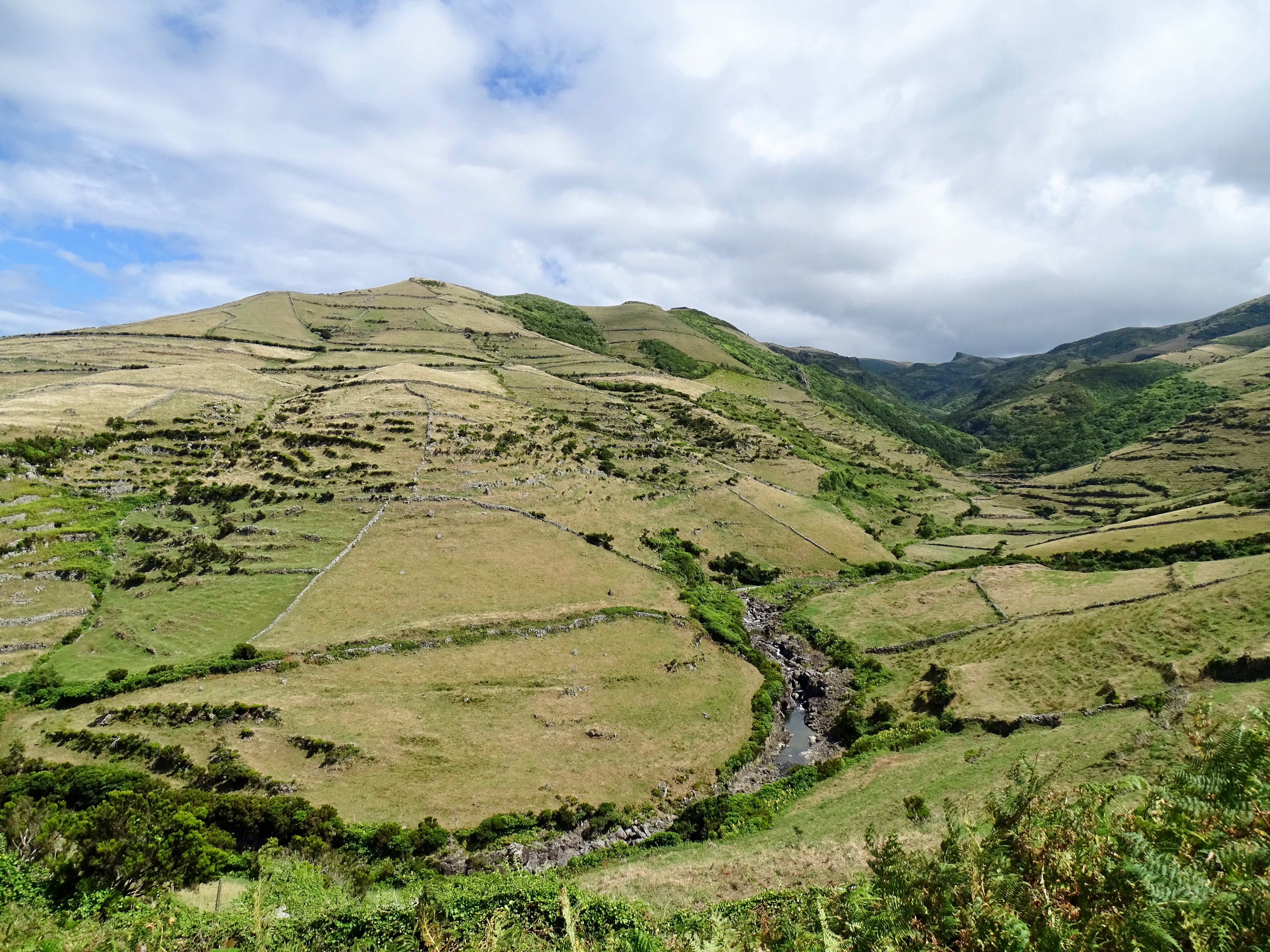 Départ en stop pour le centre de l’île. Notre «chauffeur» est passé par une route vers les lacs, que nous avions prise la veille, pour monter au Pico dos Sete Pes, avec une belle vue sur les Cadeiras. Ensuite, nous avons marché sur la route sans voiture, en cueillant d’excellentes mûres !