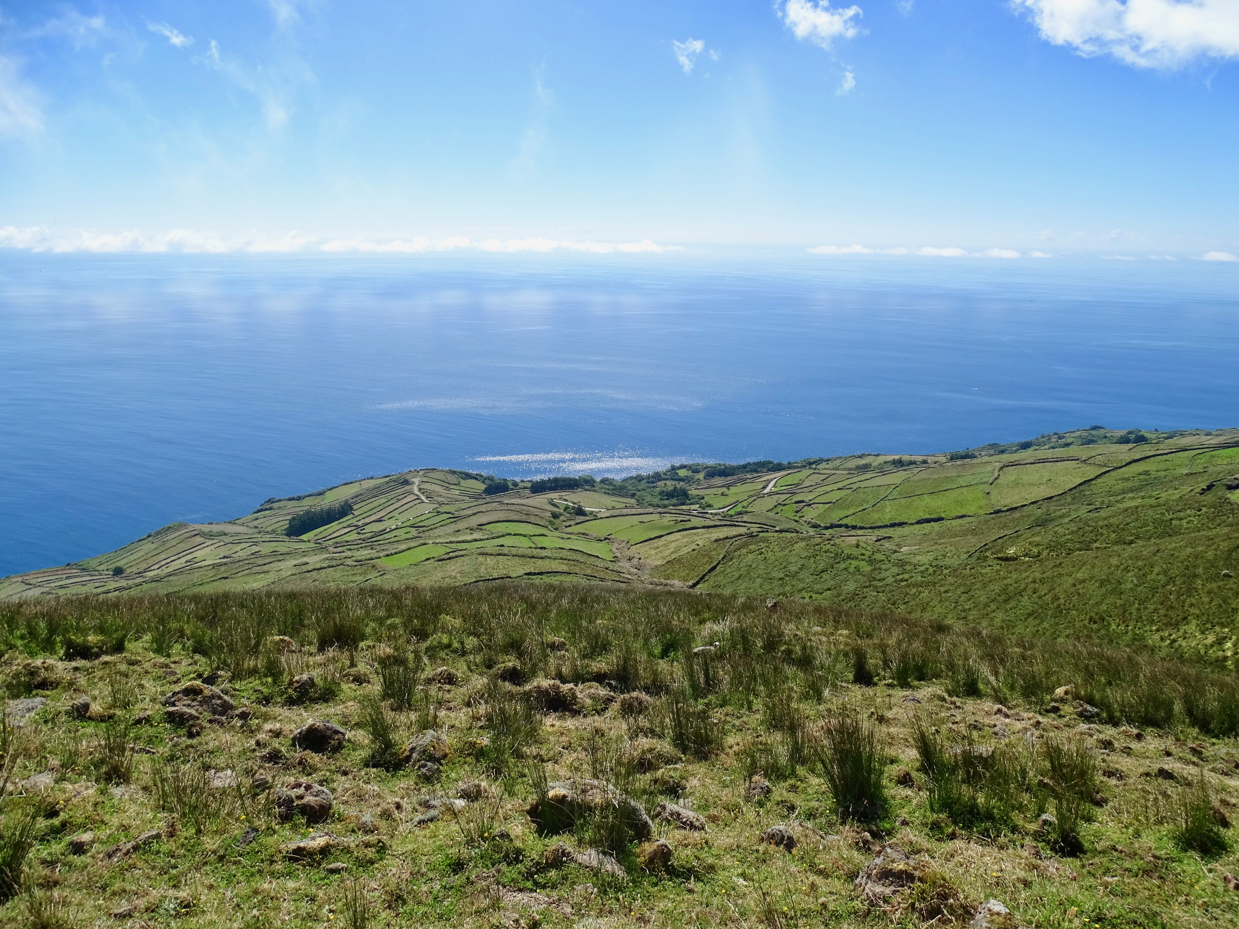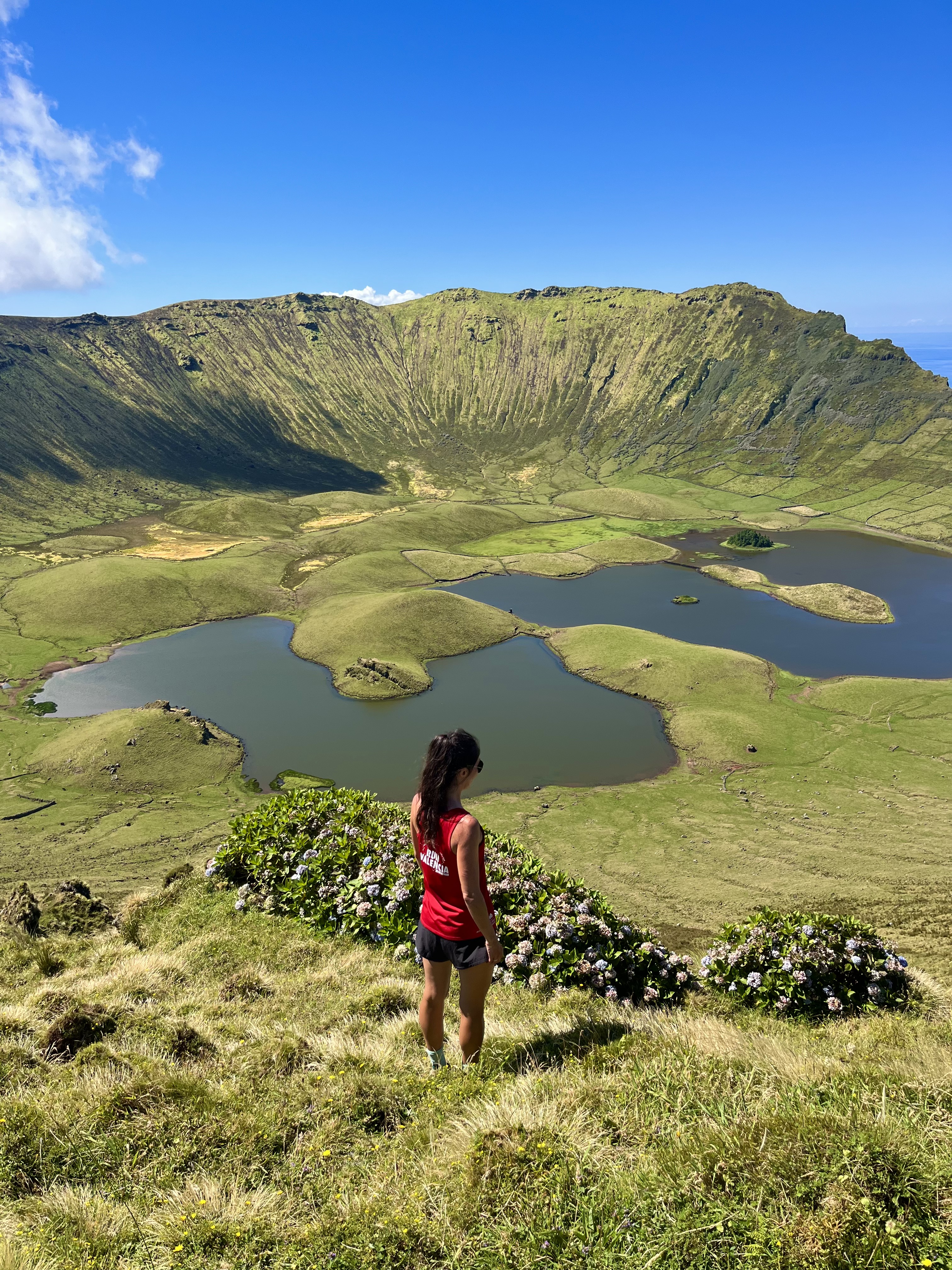 En arrivant, on a pris un taxi pour nous amener à la Caldeira, sinon il faut marcher sur la route et ce n’est pas très intéressant surtout avec la chaleur. Le cratère du Caldeira est magnifique, avec des petits lacs et vue sur mer.
