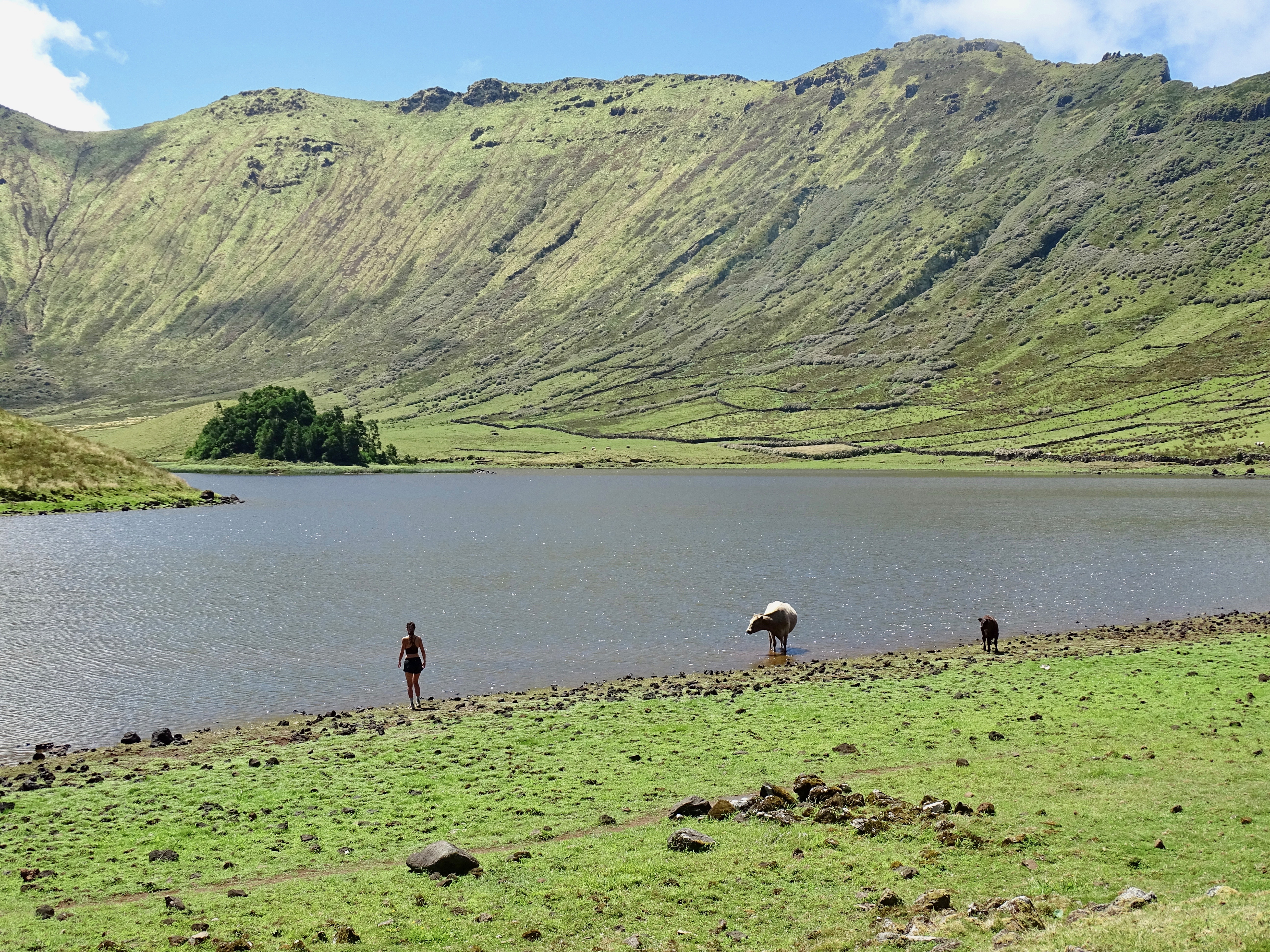 Passage par Lagoa Seca (petit lac) puis le plus beau Caldeira Camprida, un lac noir à côté de la Caldeira Negra (qui fait un peu boueux). Les deux sont côte à côte, c’est trop beau.