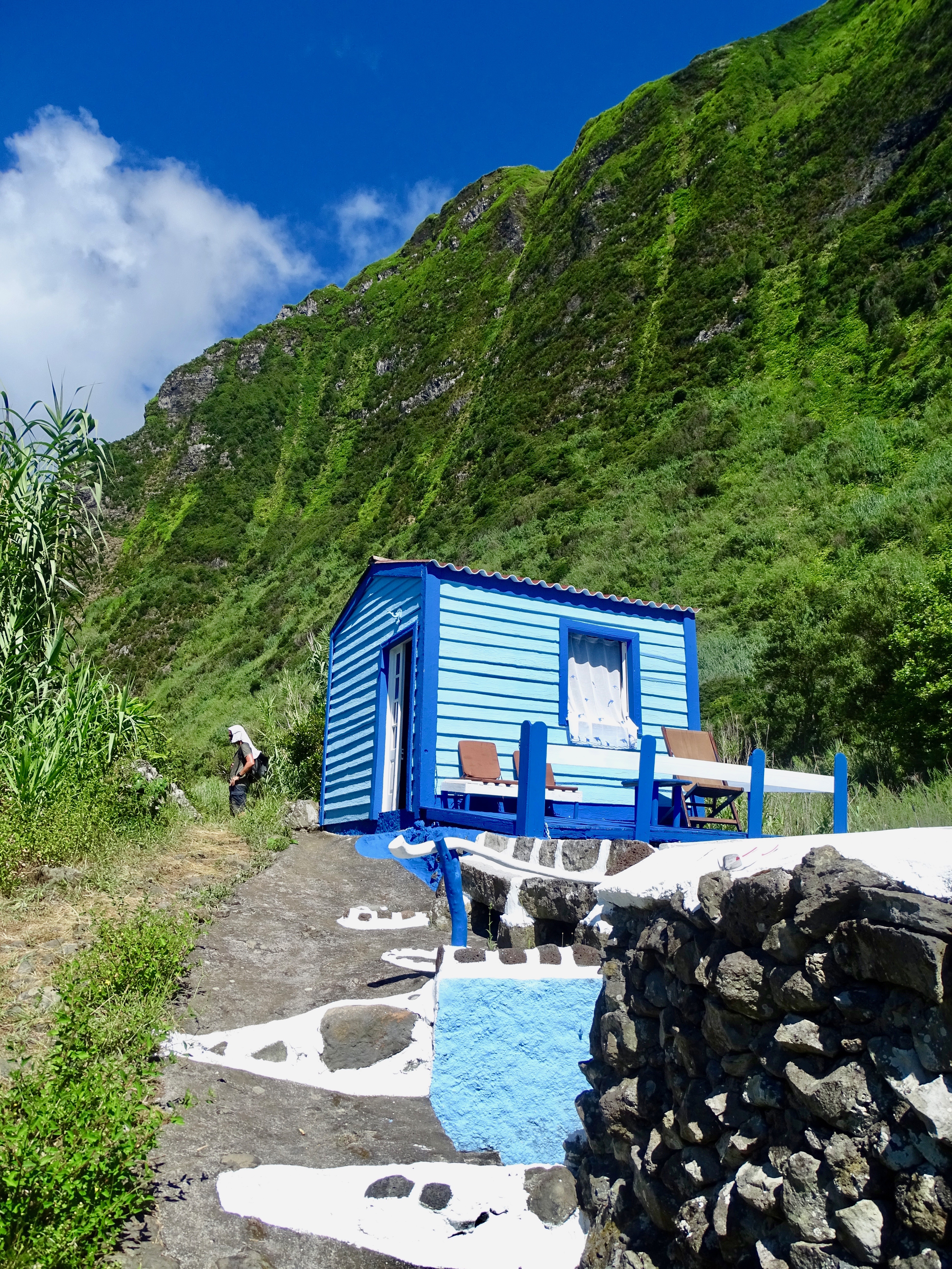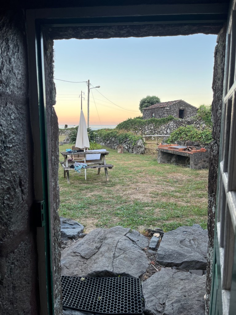Taxi pour nous amener à notre logement : Aldeia da Cuada, à côté de Fajazinha, à l’ouest de l’île. Superbe logement : nous avions notre propre petite maison en pierre, avec notre jardin vue mer, au top ! Il était seulement 17h, donc encore du temps pour la découverte…