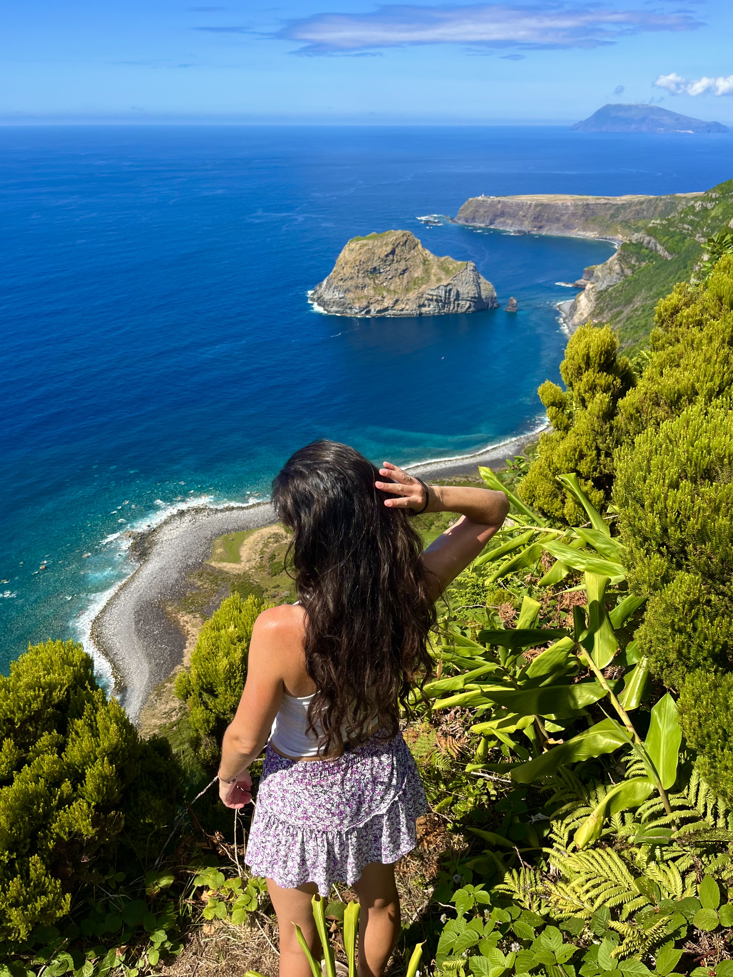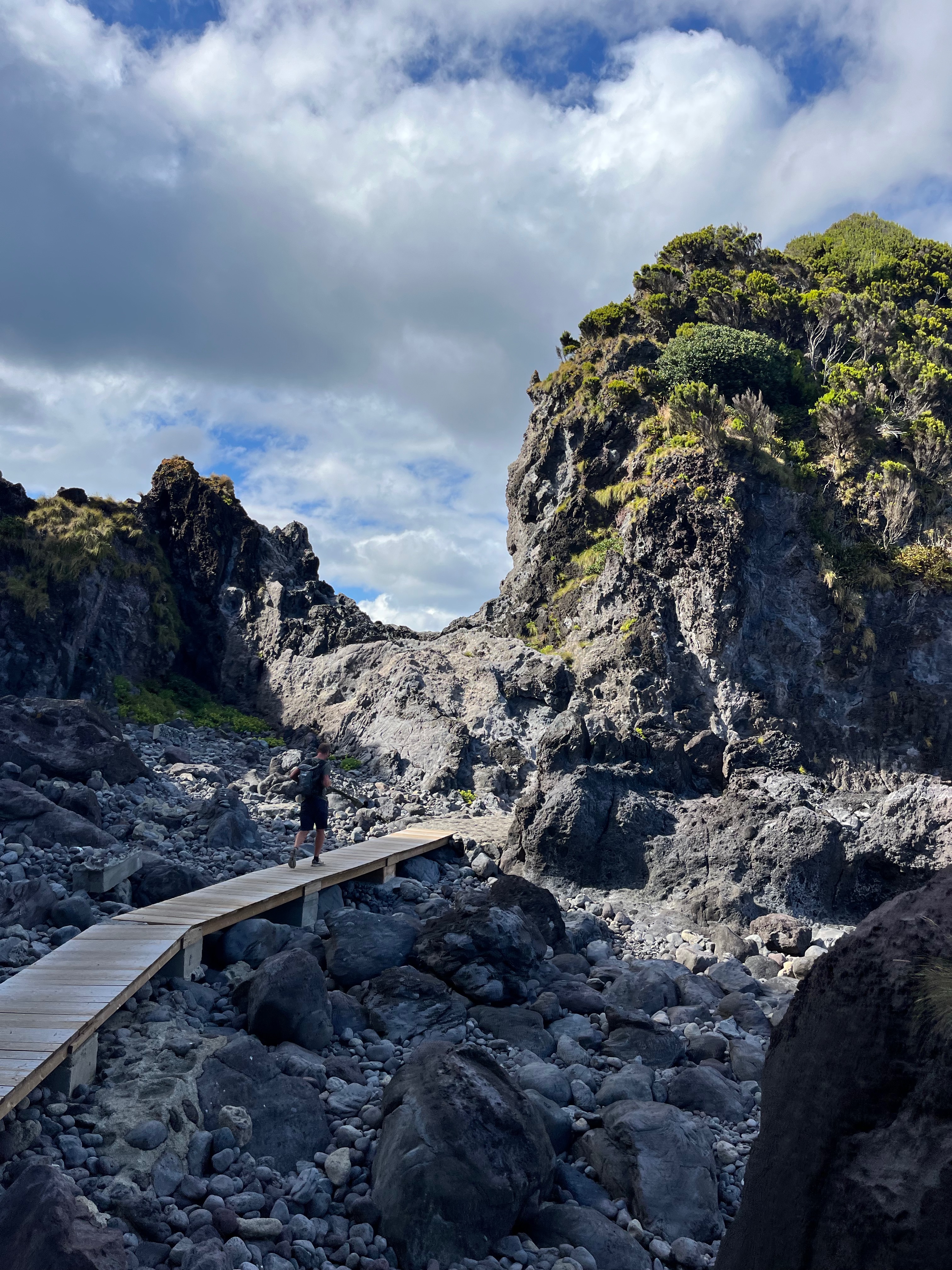 A la fin, on a croisé des Français en voiture mais qui allaient juste au seul resto du village. Il était déjà 14h et nous avions faim… Nous avons déjeuné avec eux et, trop drôle, le mec était avocat à Paris (comme moi avant) et il connaissait une de mes amies haha. Le monde est petit au milieu de l’Atlantique ! Ils étaient très sympas et ils nous ont indiqué que la rando fermée, soit disant dangereuse, ne l’était pas tant que ça et qu’elle était incroyable. Du coup, changement de plan, on comptait faire la rando de l’est mais celle de l’ouest est réputée plus jolie et nous allions la faire en partant de Ponta Delgada. Ils nous ont ramenés au phare, pour débuter la rando.