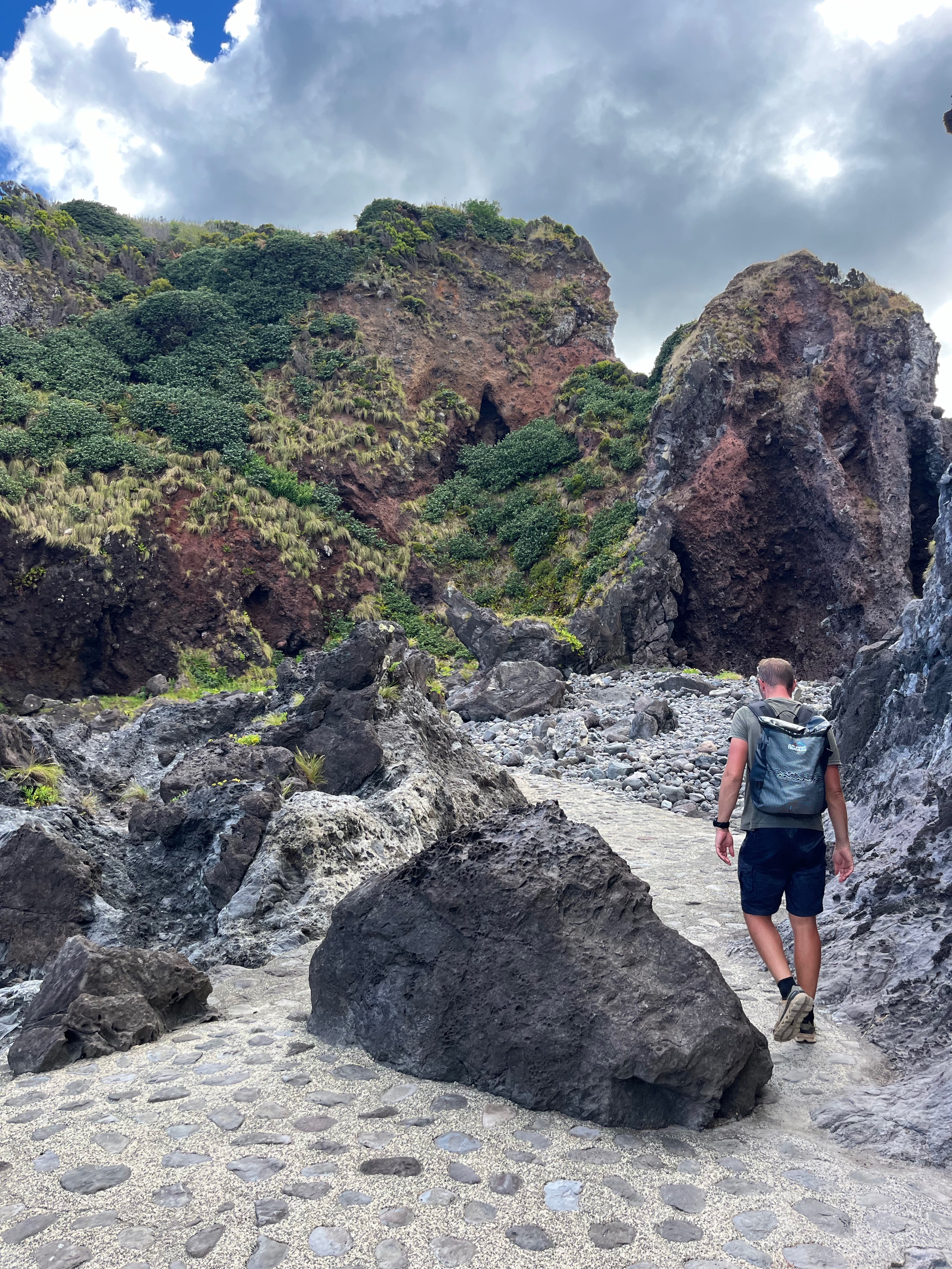On a descendu la pente en mode vaches, sans chemin, ça s’est plutôt bien passé. Ensuite, on a fait le tour des petits lacs, sur le plat. C’était très beau mais il faisait trop chaud. Il a fallu remonter la caldeira. Les touristes restent au view point mais ne font rien d’autre.