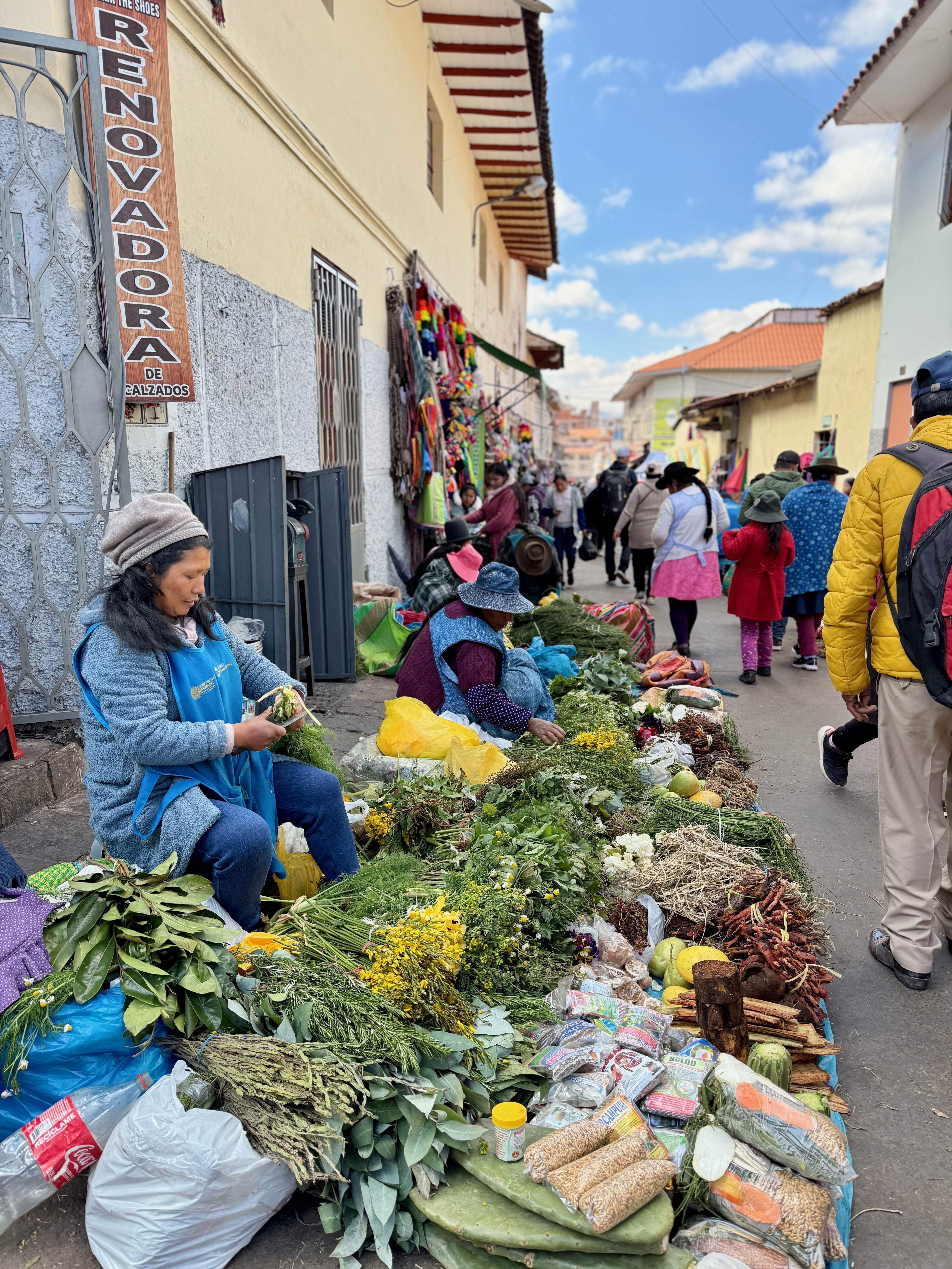 De la plaza de Armas, on a pris un taxi pour le repérage du départ du bus pour Tinke, le lendemain, à Coliseo de Cerrado. Puis le taxi nous a conduits au marché de San Pedro, nous y étions déjà allés le 1er jour, pour acheter notre nourriture pour les 4 jours de trek (riz, thon, fruits secs). Nous avions déjà des liophylisés et des barres.