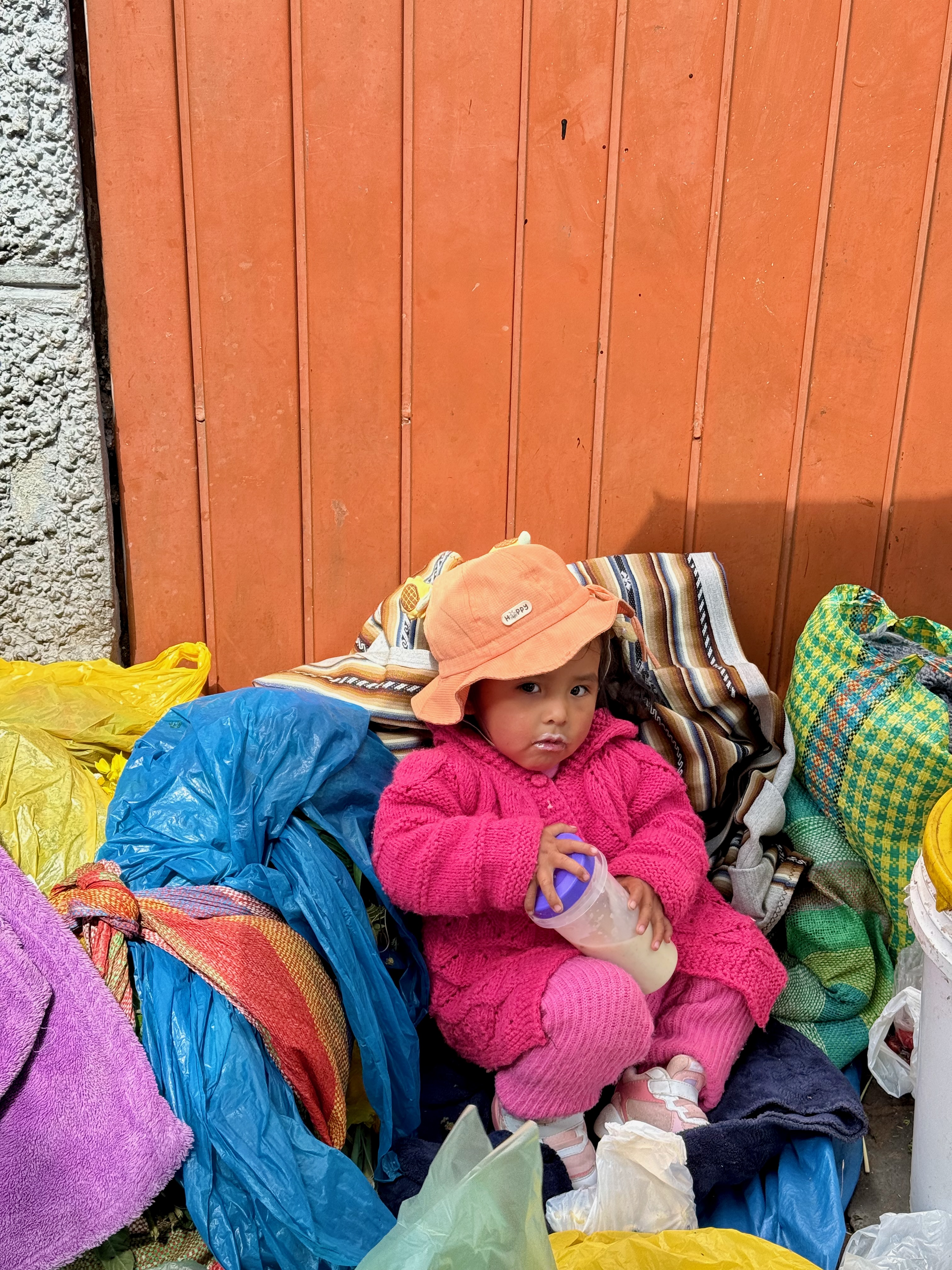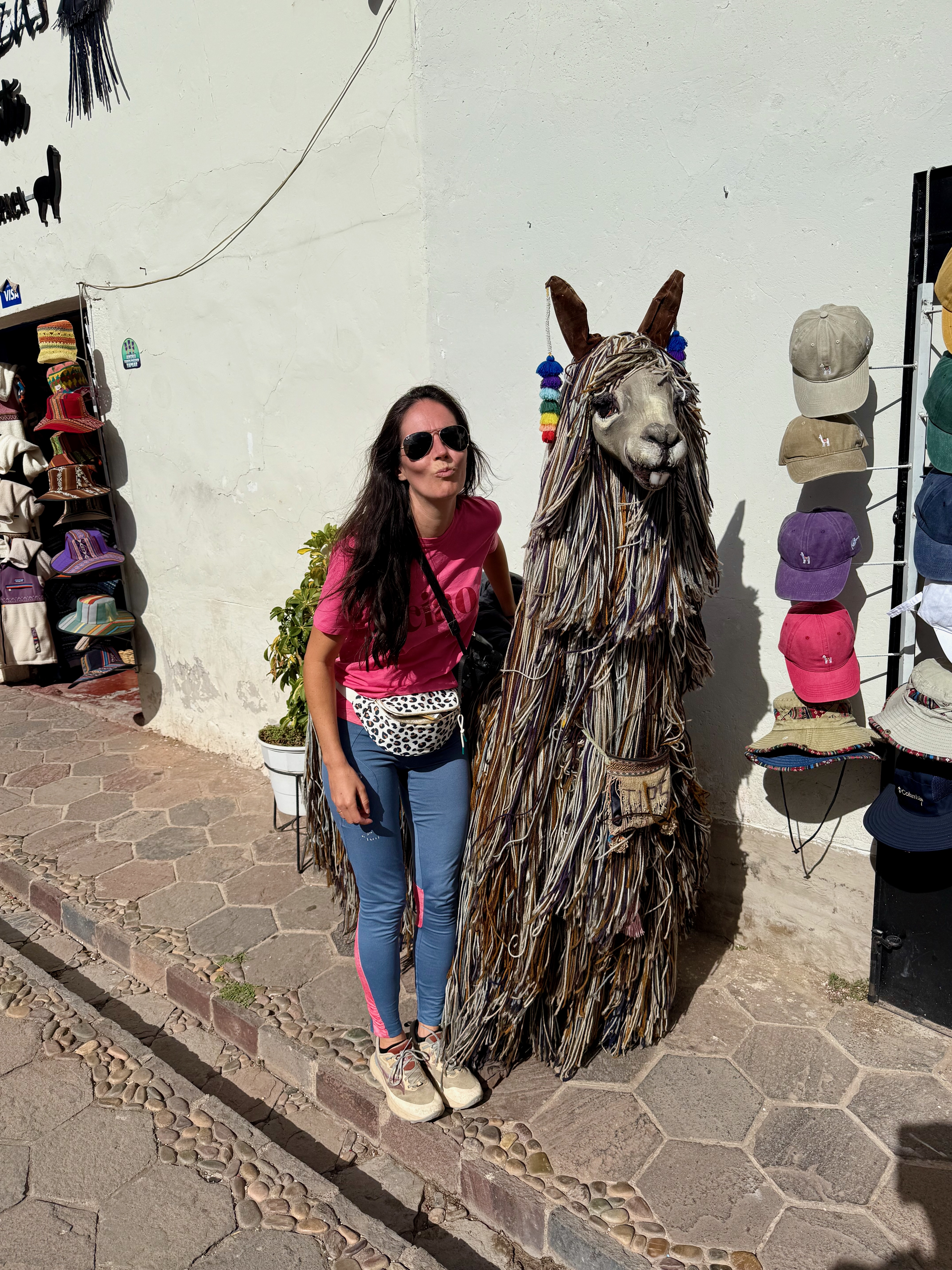 – petites rues typiques, avec les boutiques de souvenirs et surtout les femmes habillées de costumes traditionnels et les lamas dont des bébés… on a pris des photos et il a fallu payer (on s’est fait avoir comme des touristes…)
