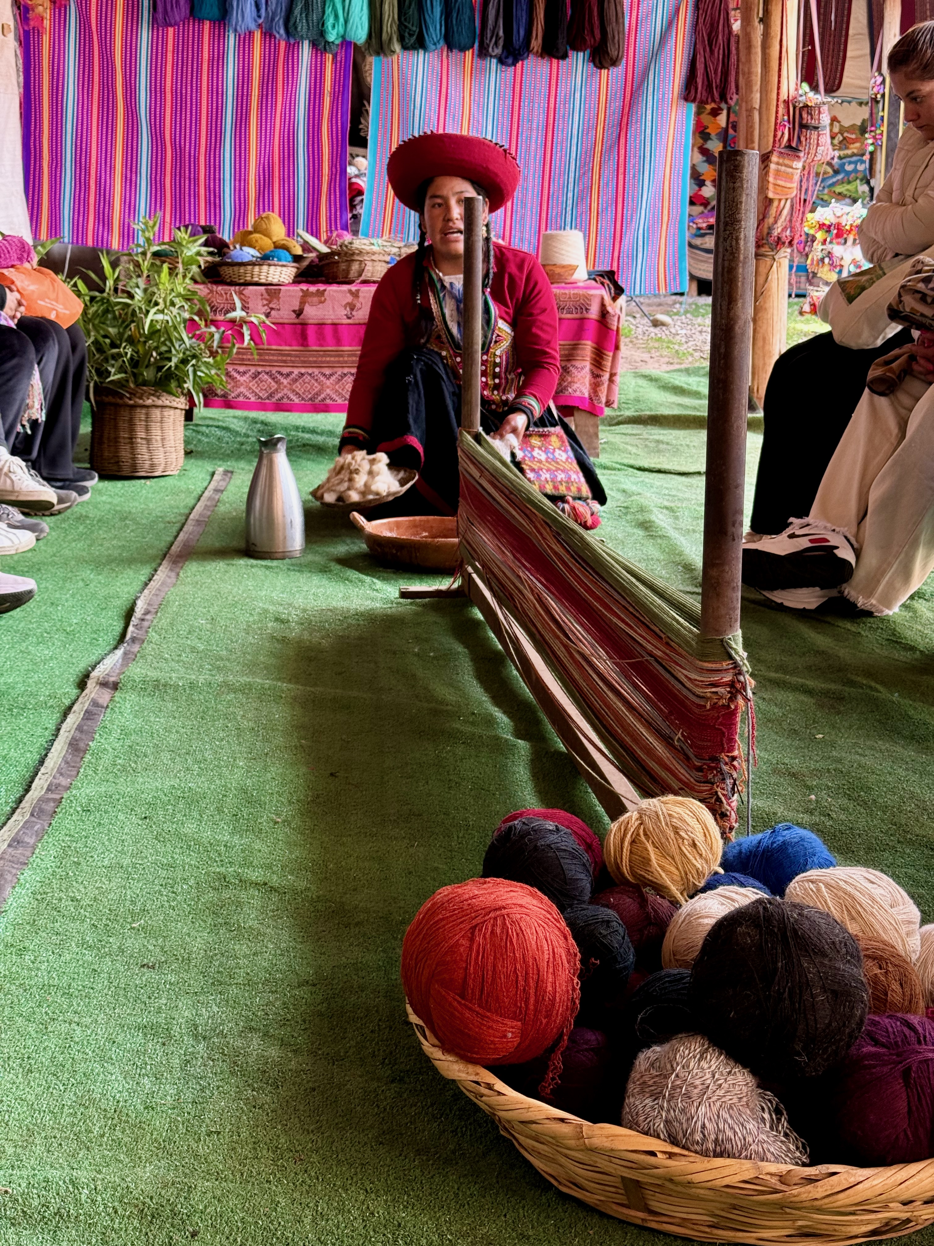 1er stop à Chinchero, petite localité, où nous avons visité une fabrique de tissu. Magnifique… une employée a fait une démonstration et j’ai acheté 2 belles écharpes.