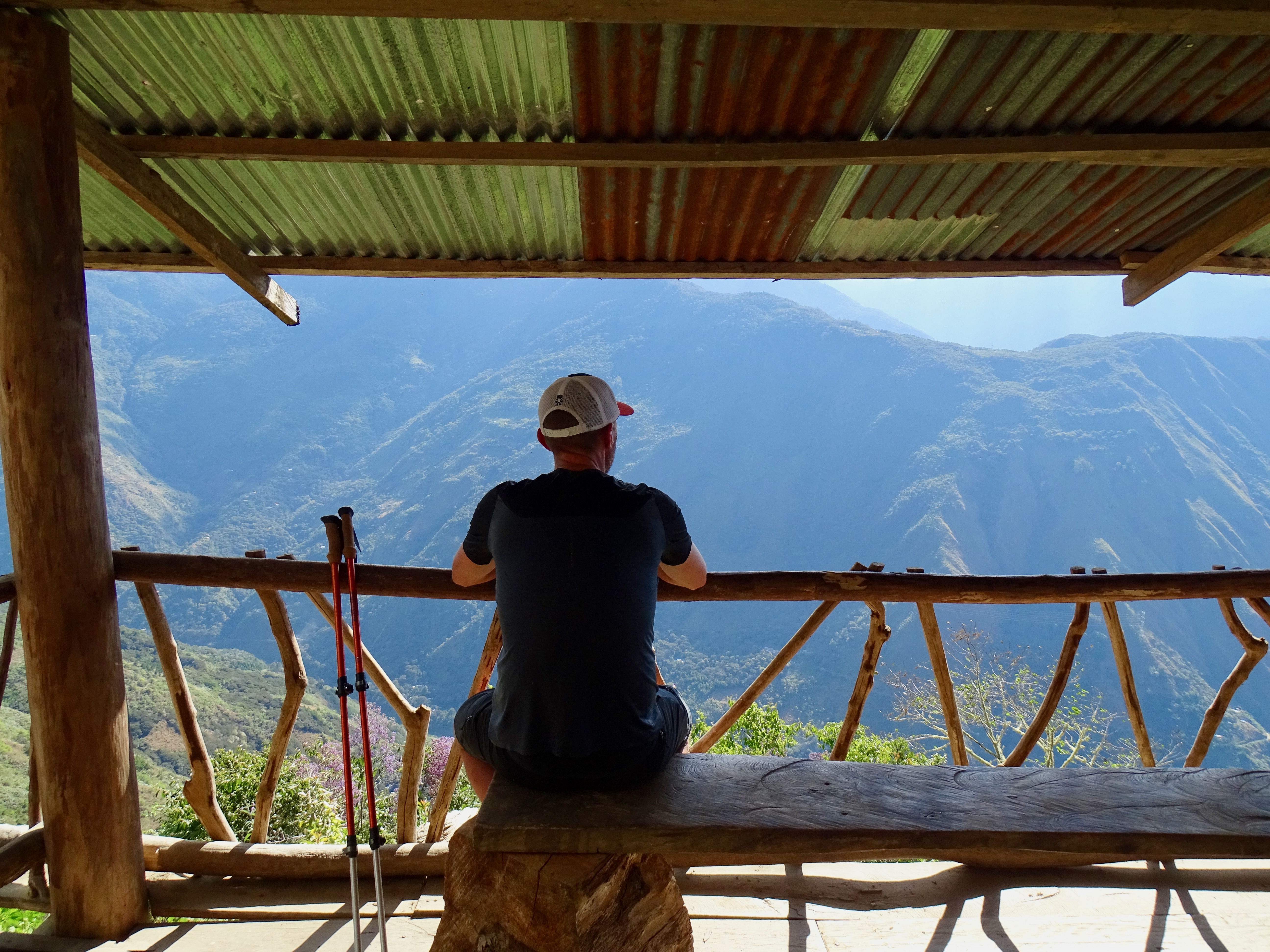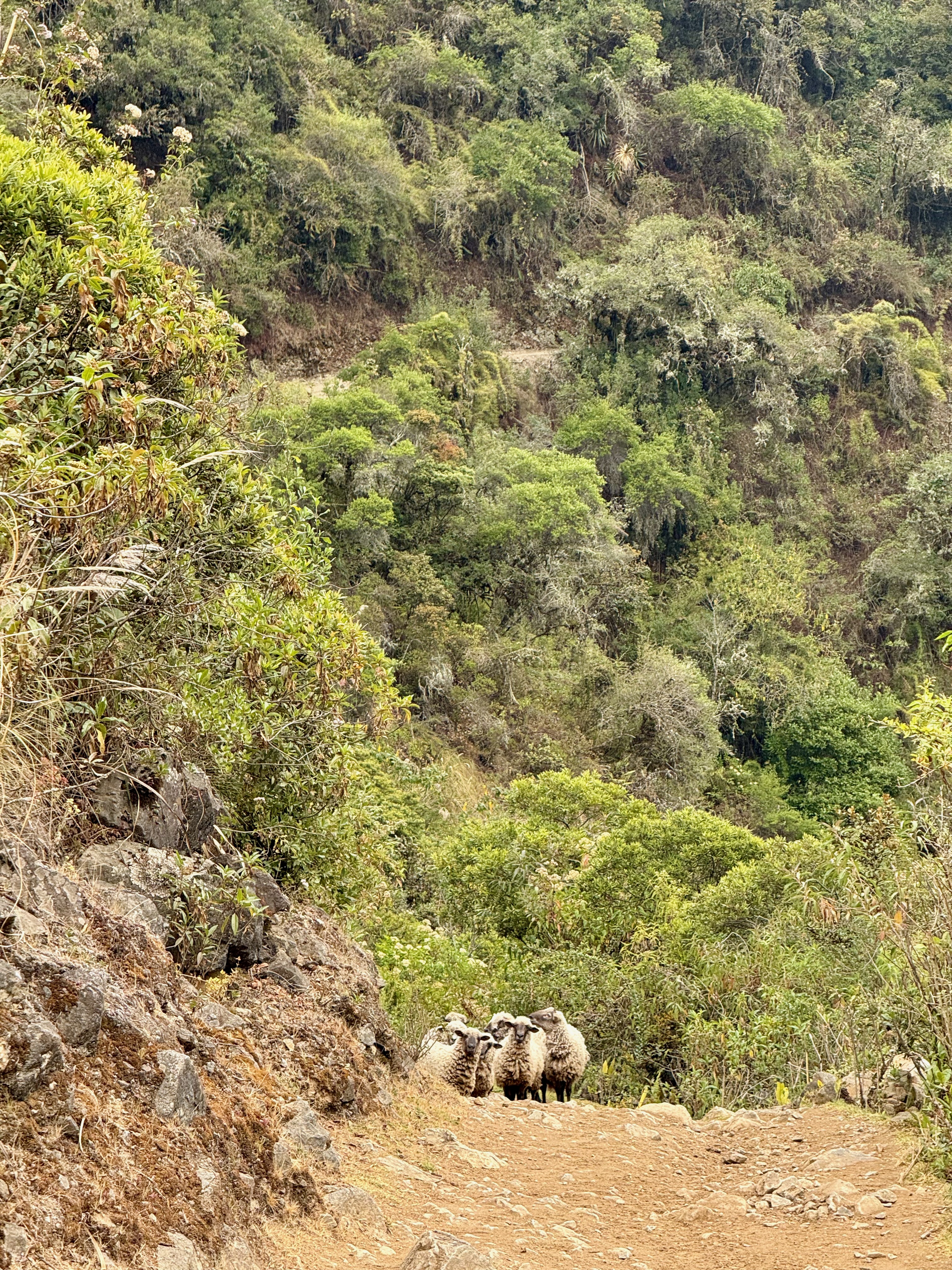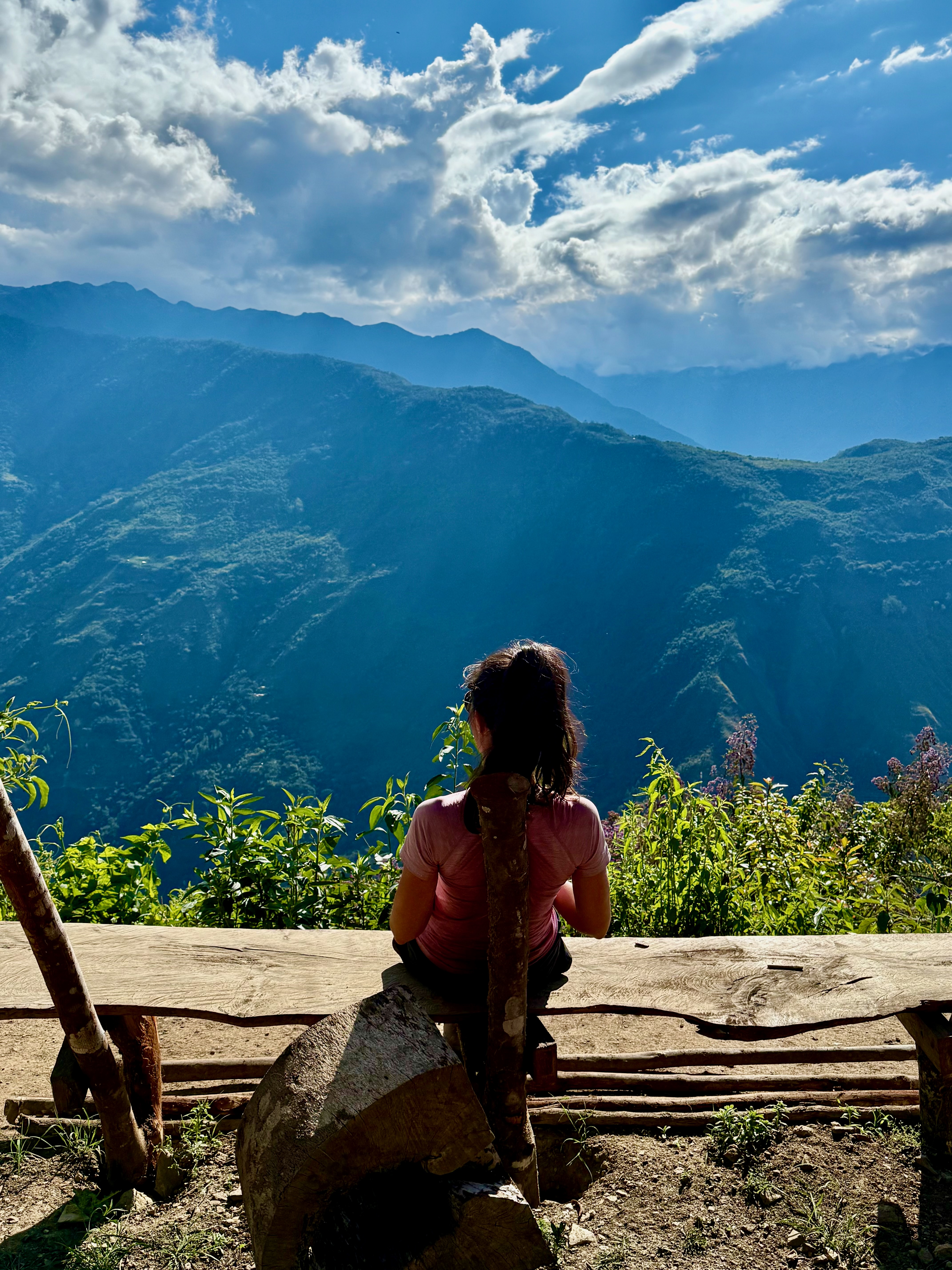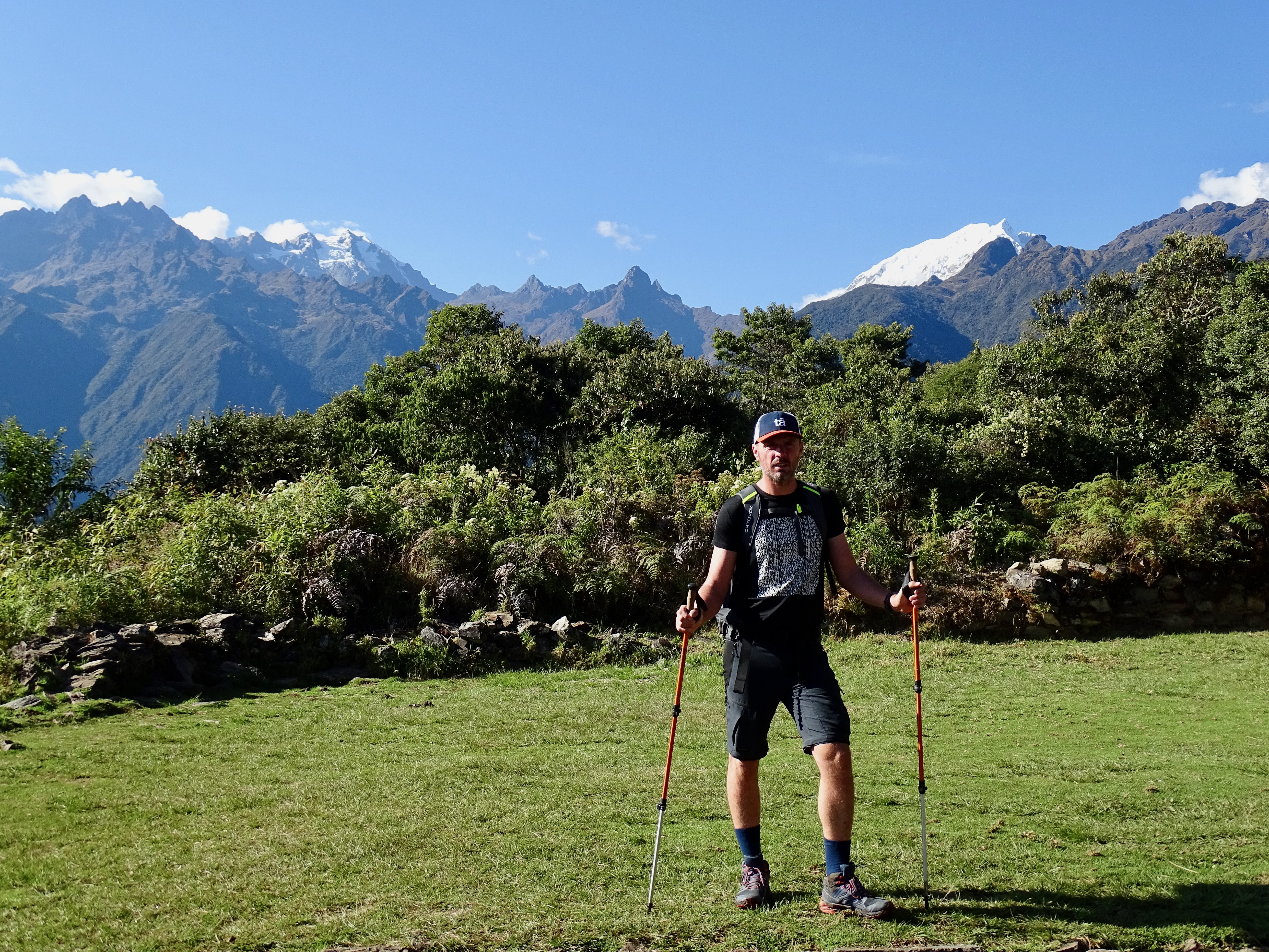 A partir du village de Lucmabamba, nous avons entamé une très longue montée de 800m D+, en forêt et aussi sous un soleil de plomb, on a eu très chaud, sachant que la montée était raide. Montée magnifique avec de superbes vues. On a doublé un groupe, ils ont du mettre au moins 1h de plus que nous, tellement ils étaient lents !