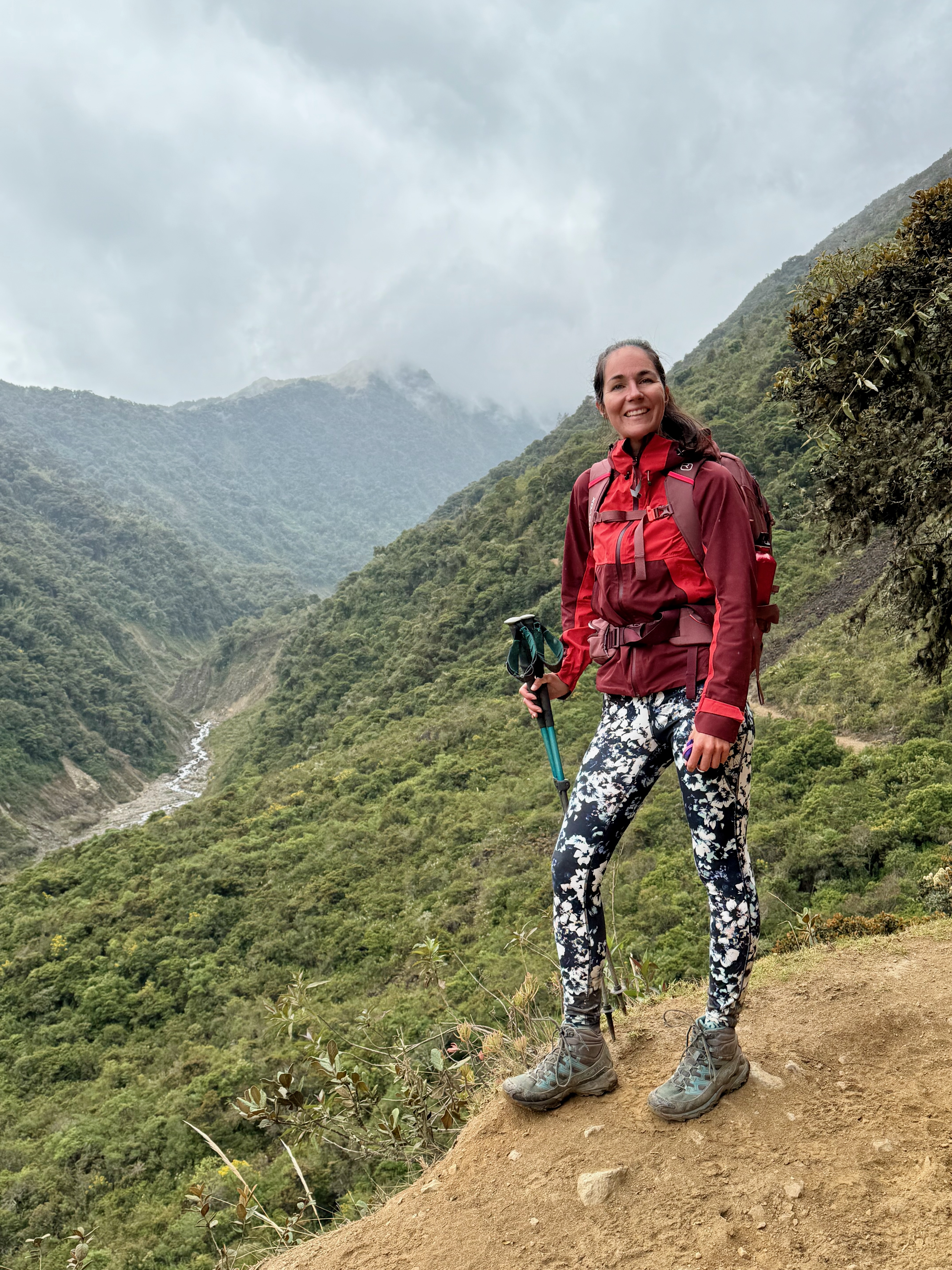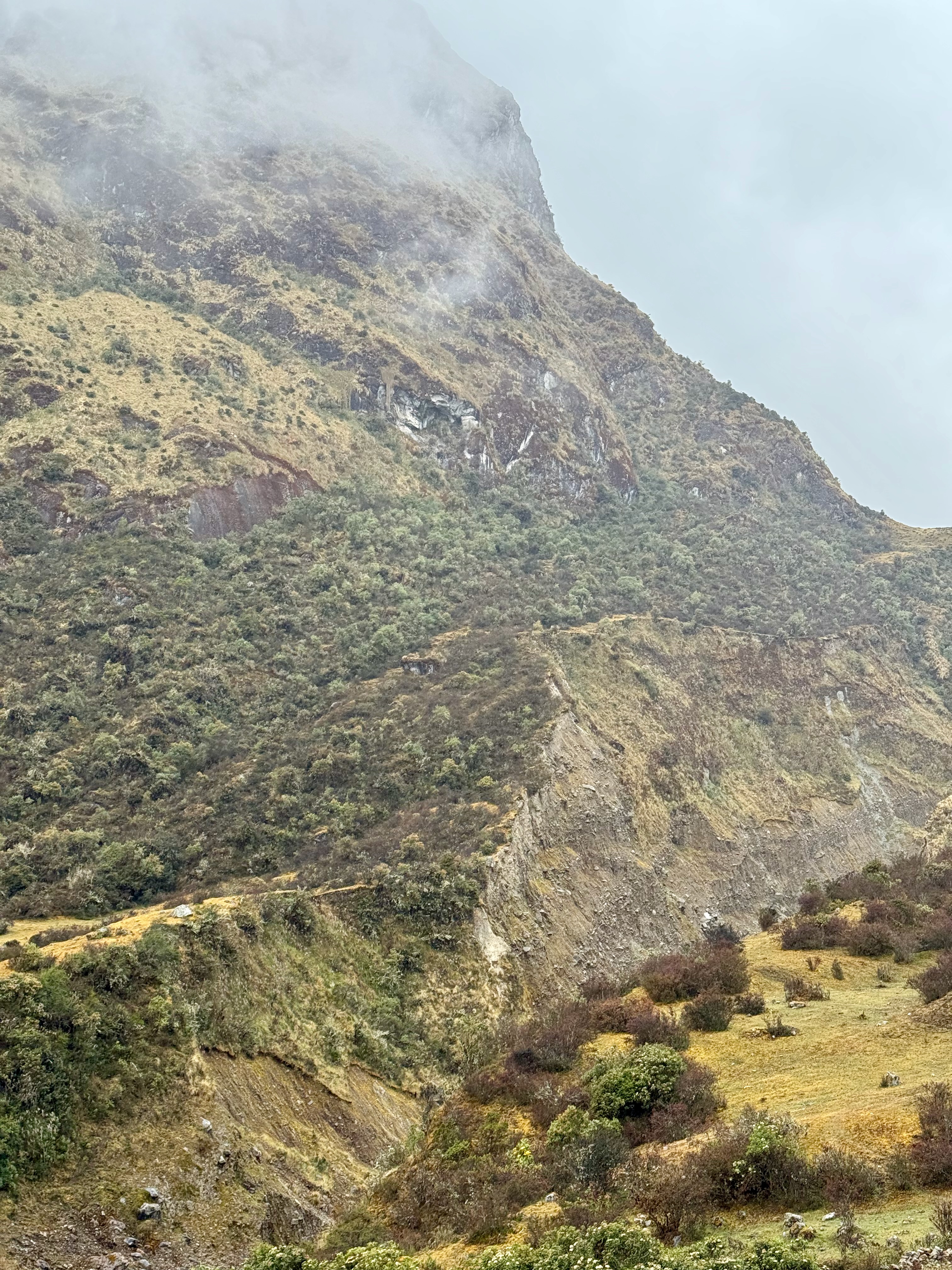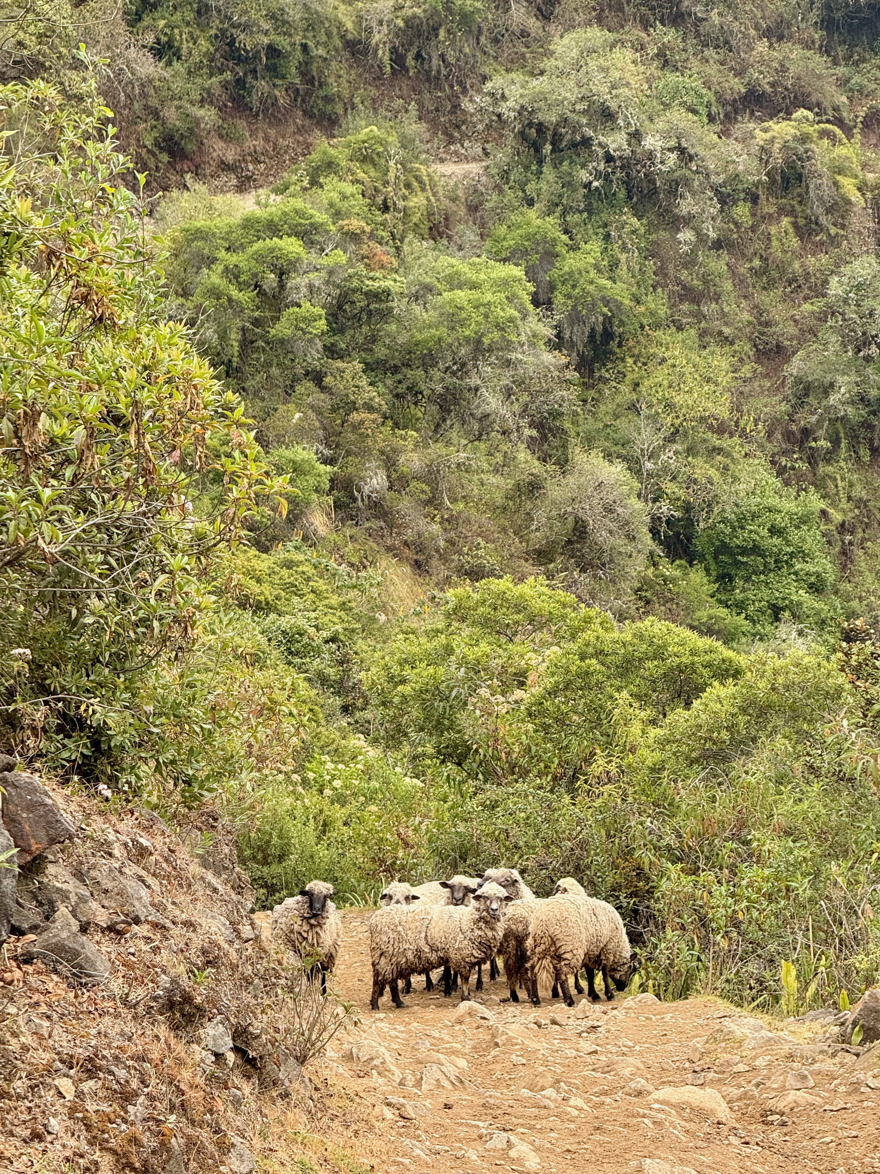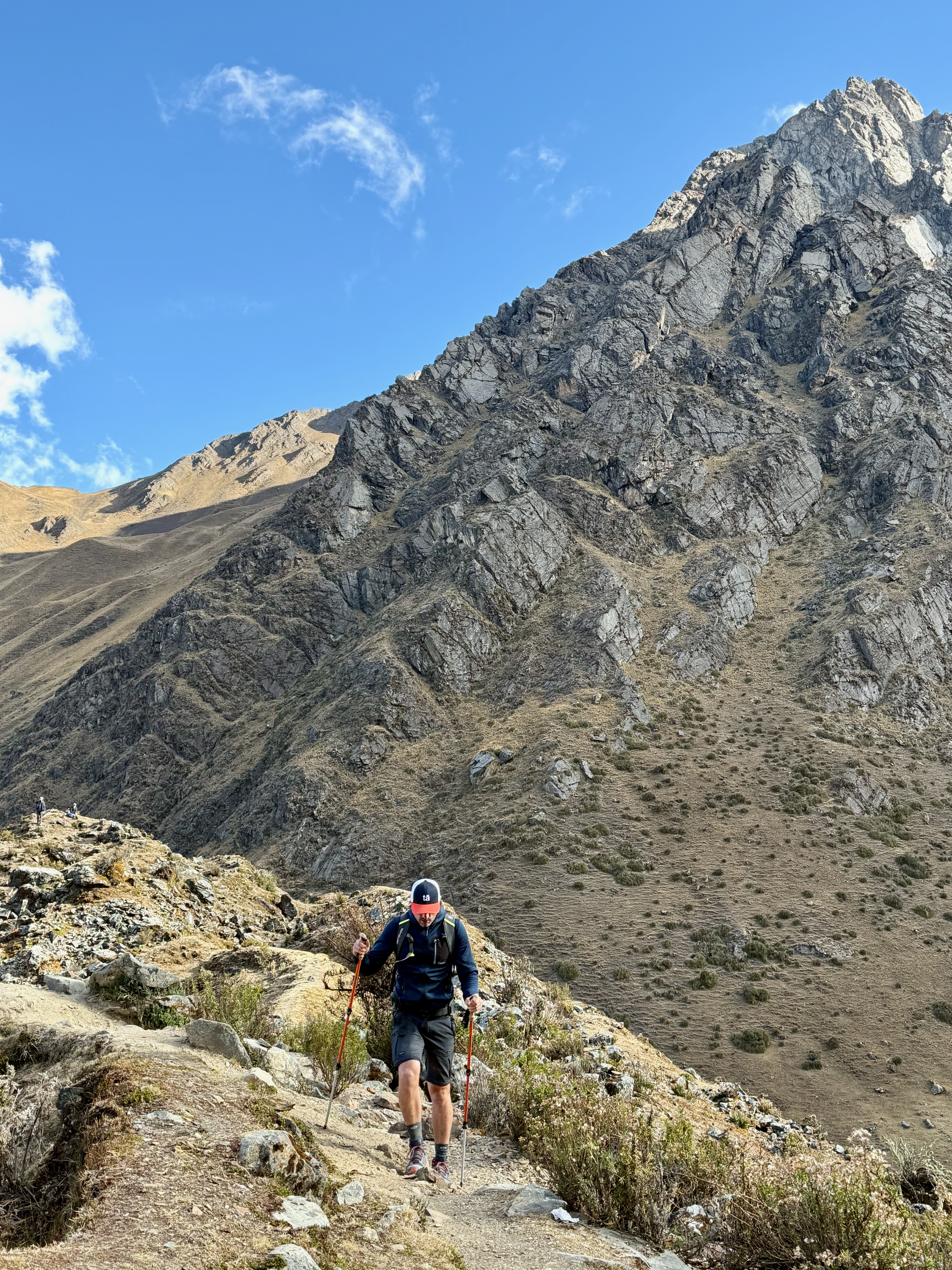 A partir du village de Lucmabamba, nous avons entamé une très longue montée de 800m D+, en forêt et aussi sous un soleil de plomb, on a eu très chaud, sachant que la montée était raide. Montée magnifique avec de superbes vues. On a doublé un groupe, ils ont du mettre au moins 1h de plus que nous, tellement ils étaient lents !