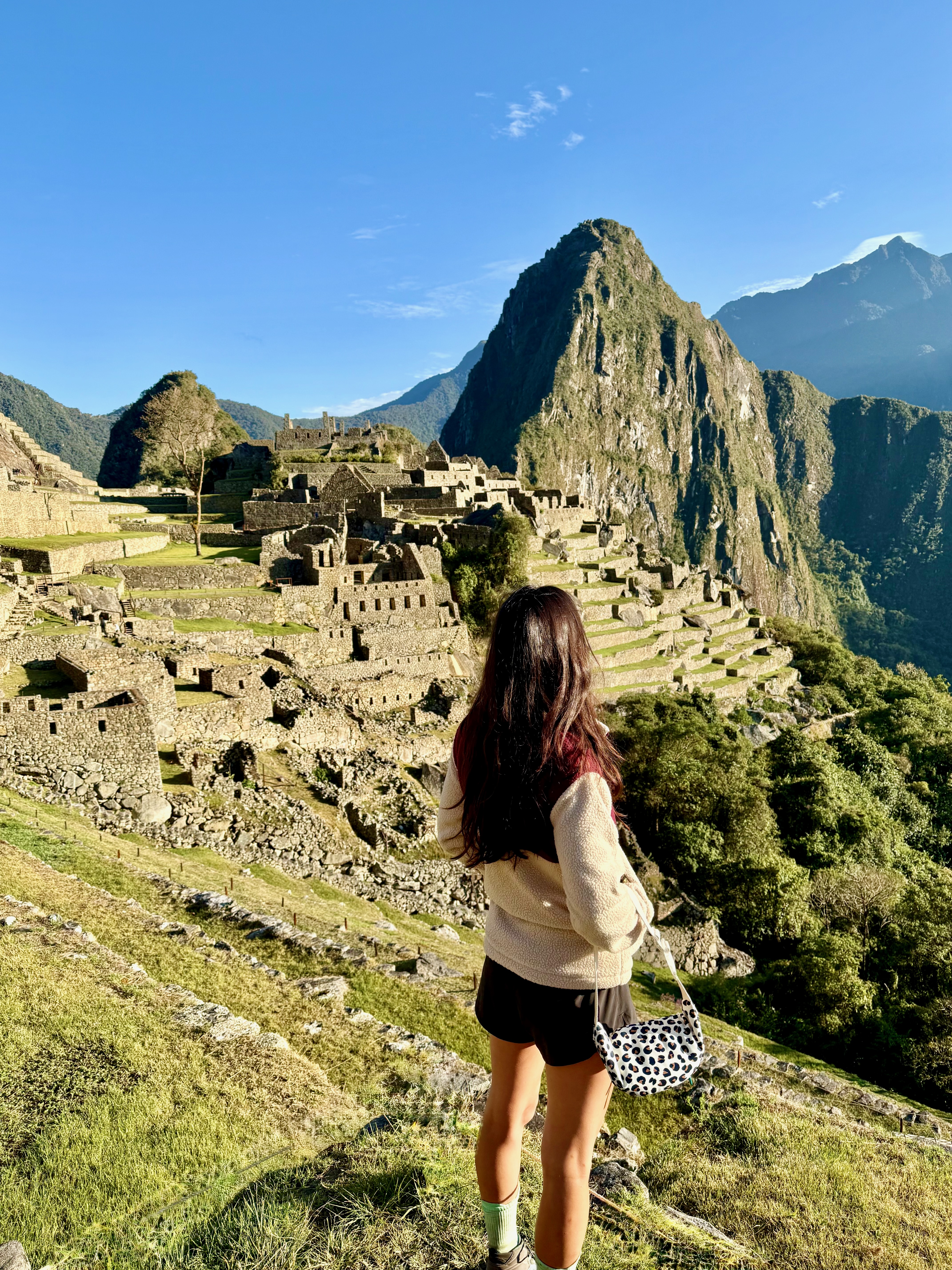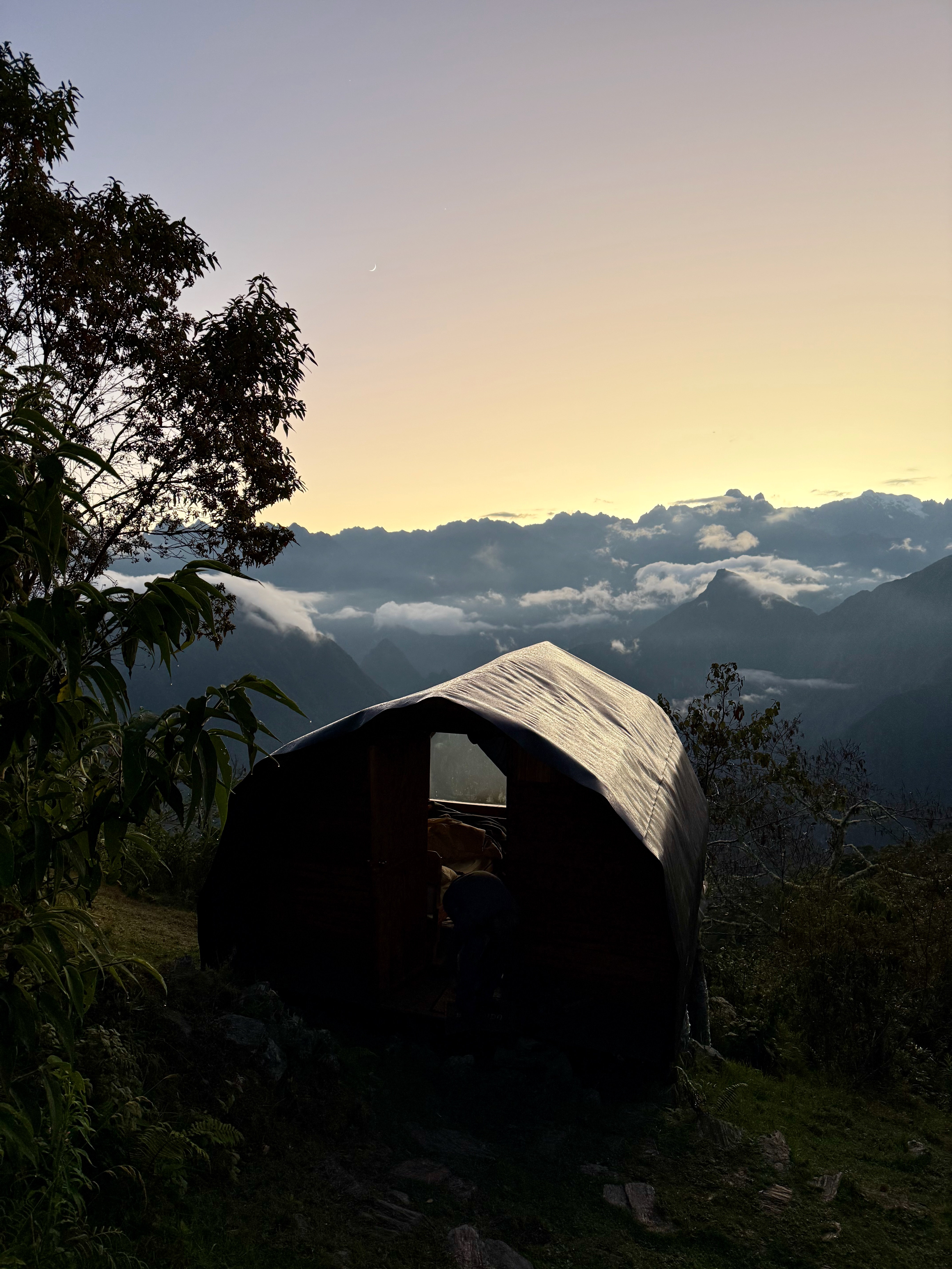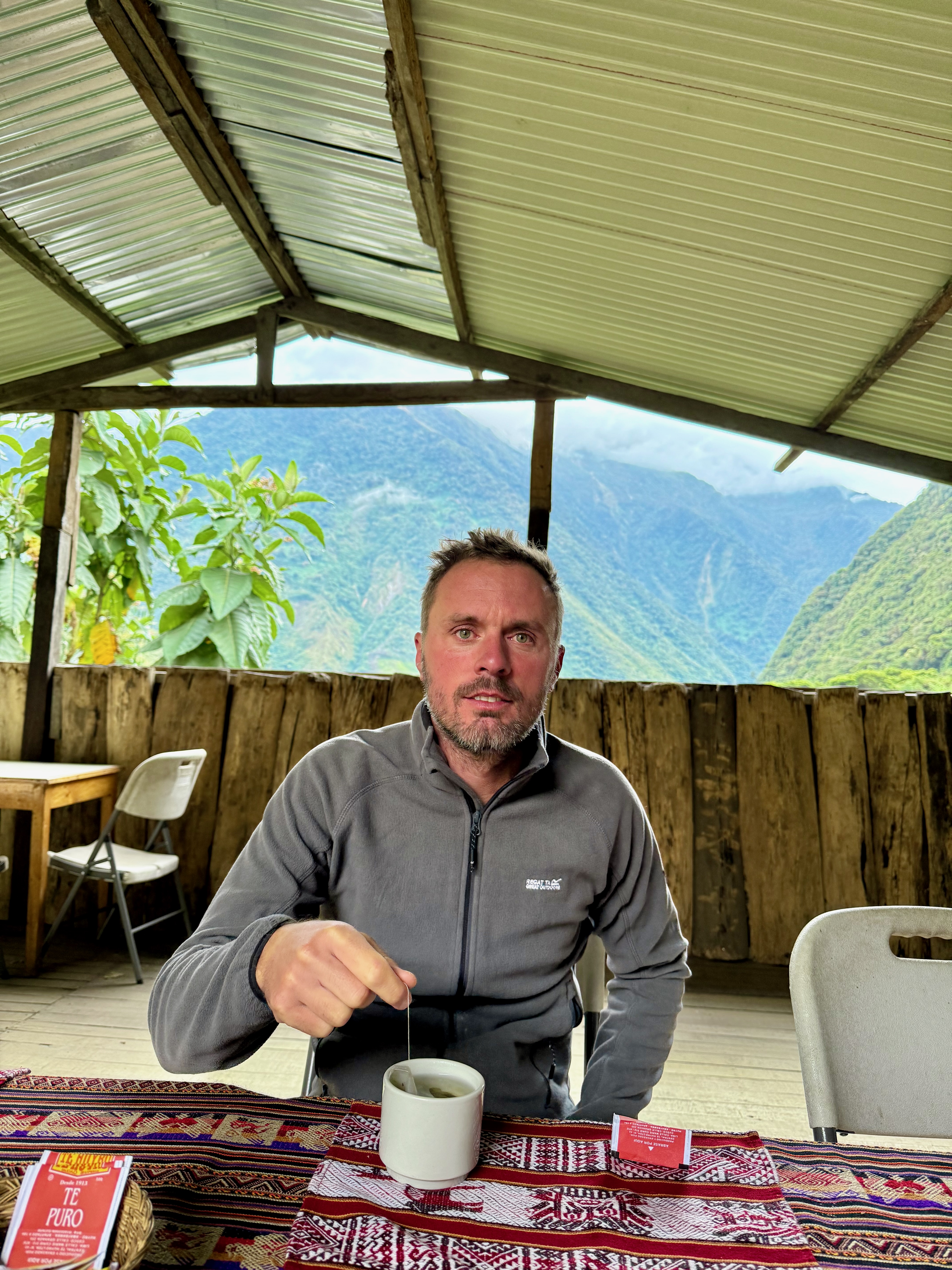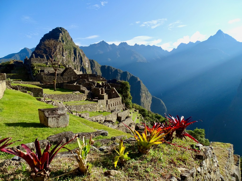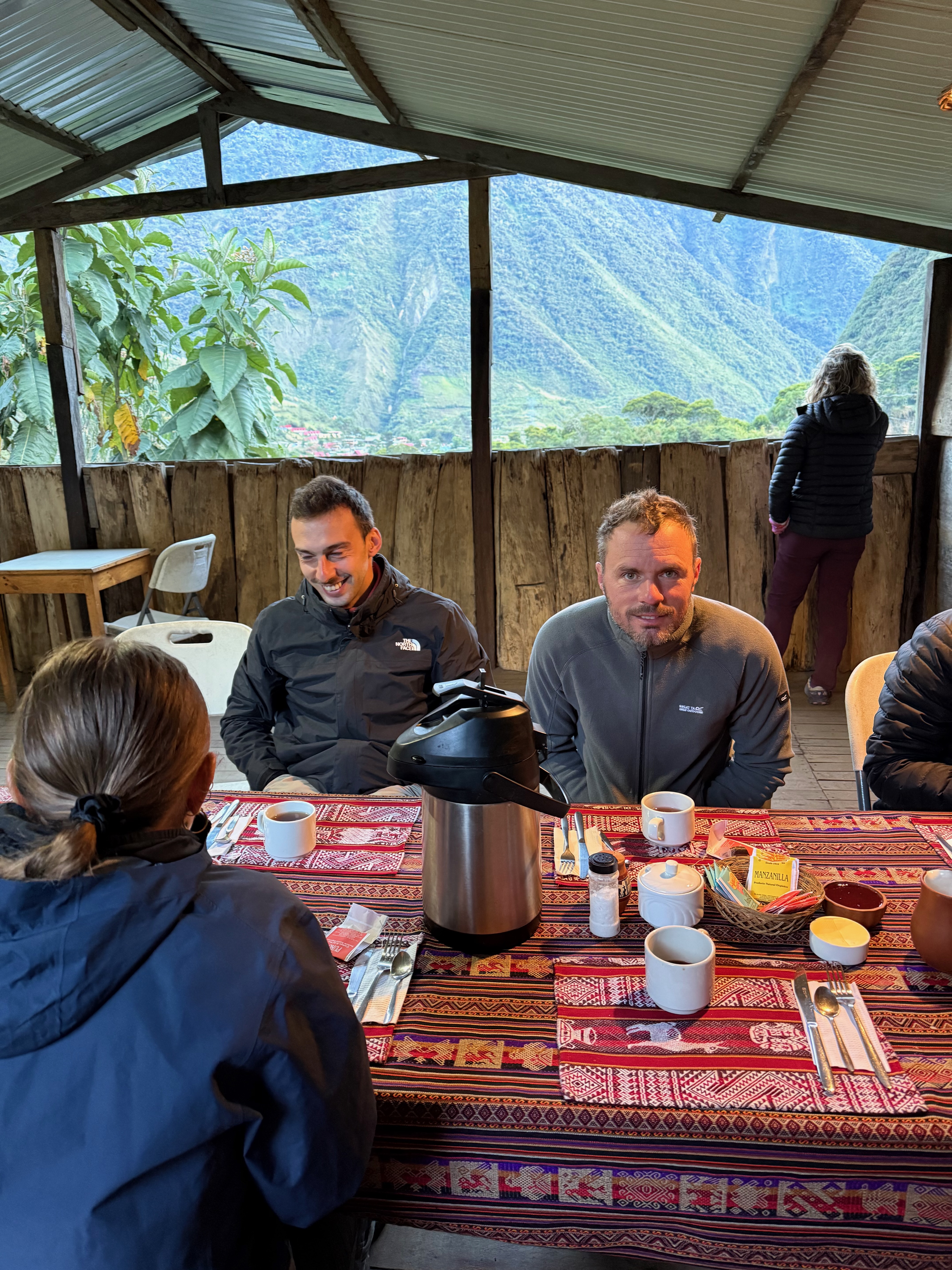 Réveil vraiment fabuleux, vers 6h du matin, avec les 1ères lumières dans le lodge et la vue sur le Machu Picchu, incroyable ce logement. Il ne faisait pas très froid, c’était agréable et on a profité du calme et de la vue exceptionnelle.