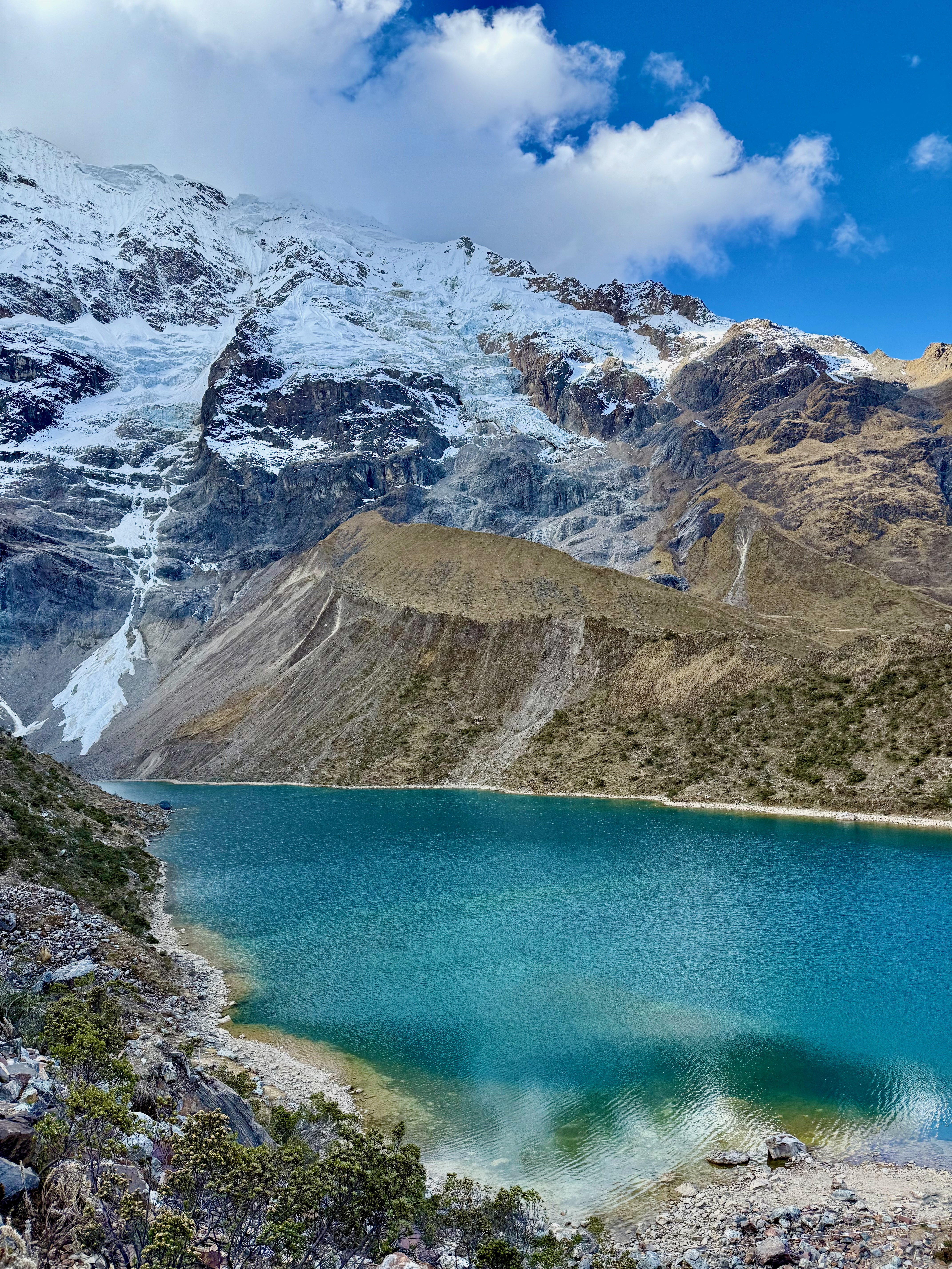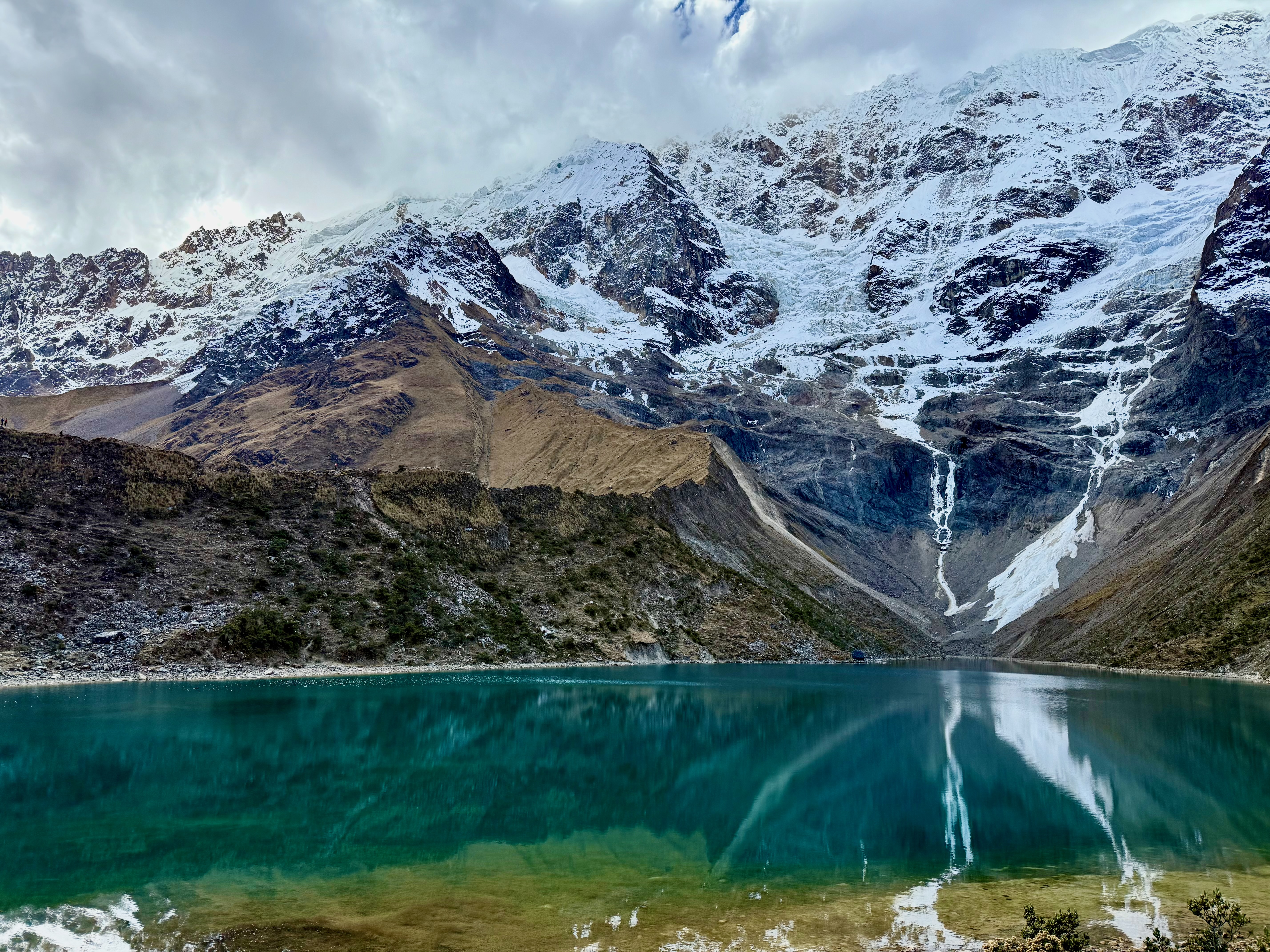On est arrivé à 15h20 à la Laguna Humantay (4300m), magnifique, avec la montagne Humantay enneigée. Quelques personnes mais ça allait.