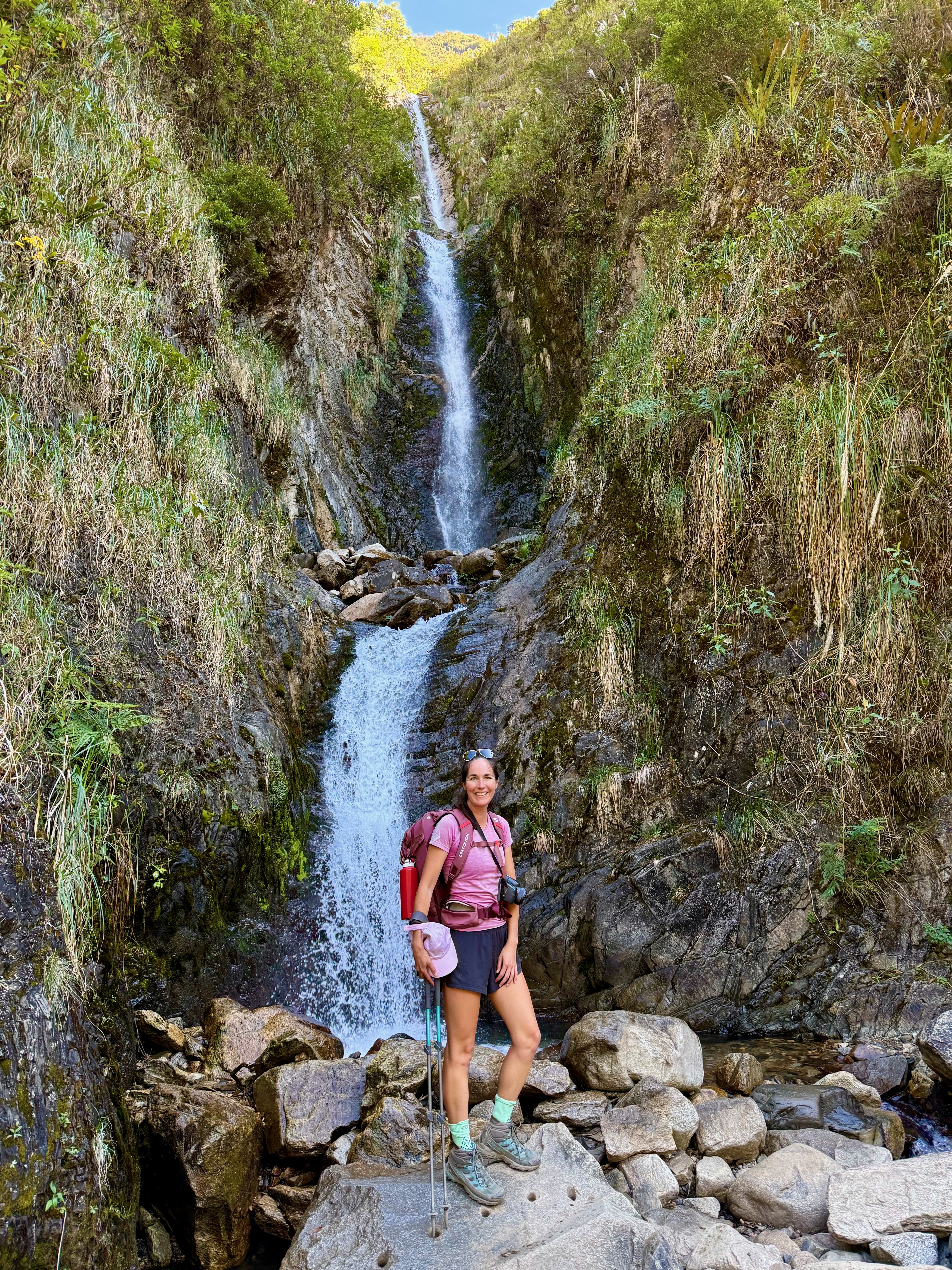 On dégoulinait et on s’est rafraîchi sous une cascade, ça faisait du bien. C’est fou comme les paysages étaient totalement différents de la veille et la végétation luxuriante. On s’est arrêté boire un coca au camping Vista, pas loin de notre destination finale. La vue était superbe.