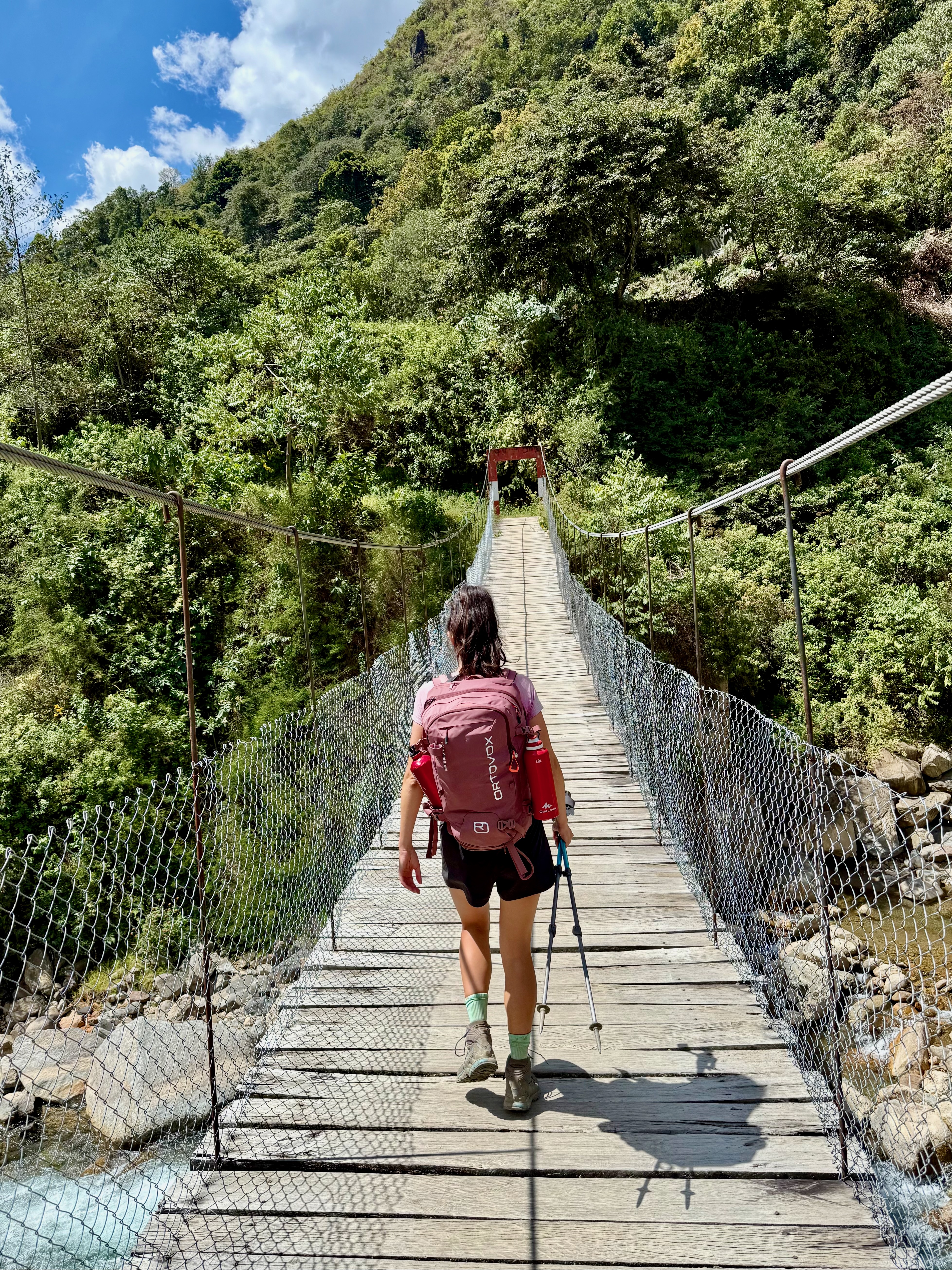 Départ à7 h pour une belle montée. On a doublé beaucoup de gens, principalement avec leurs guides et les chevaux, à mon sens pas bien traités. Bien contente de ne pas avoir de guide et de porter mes affaires, un petit sac car on dormait à chaque fois dans des villages.