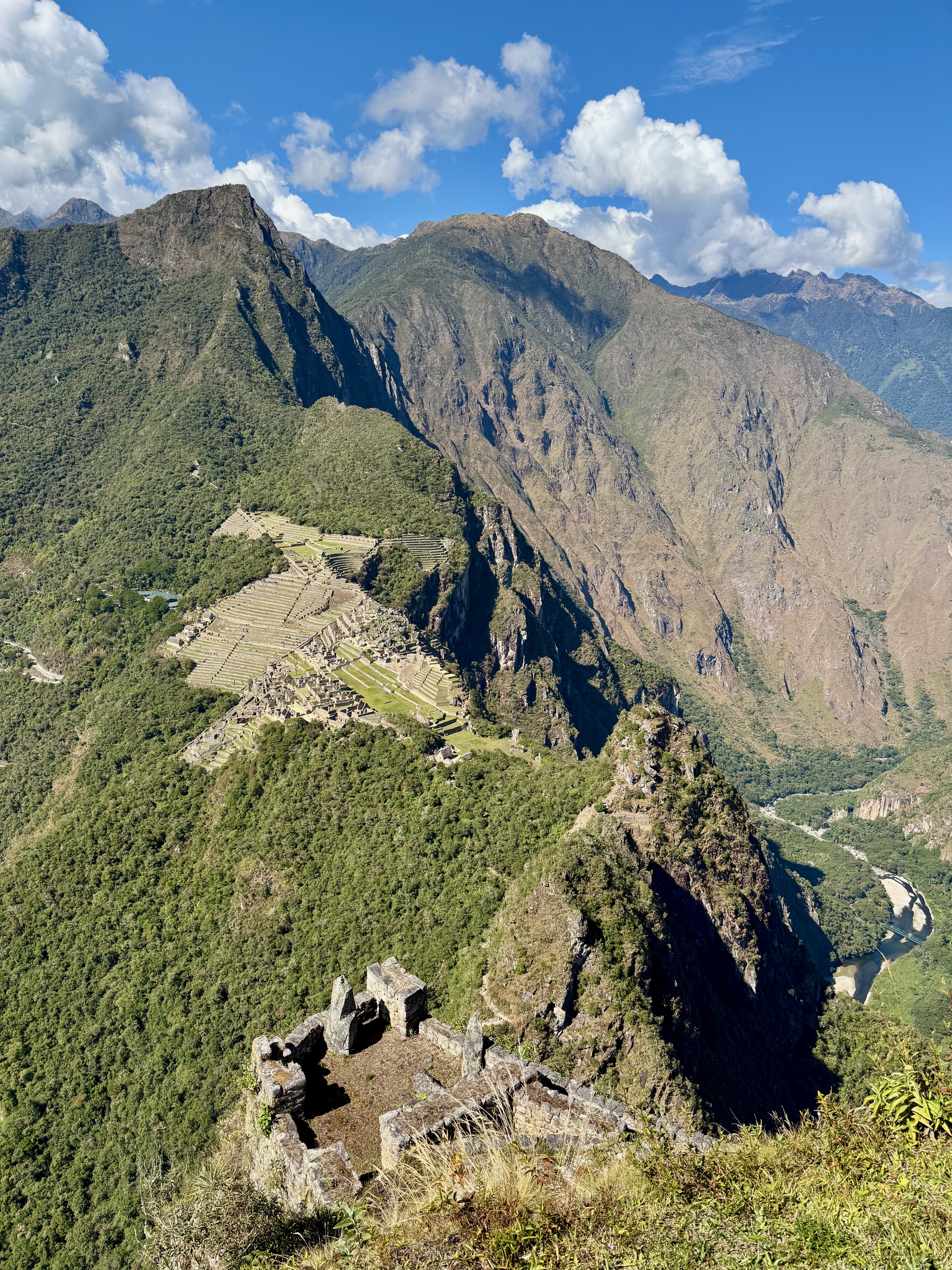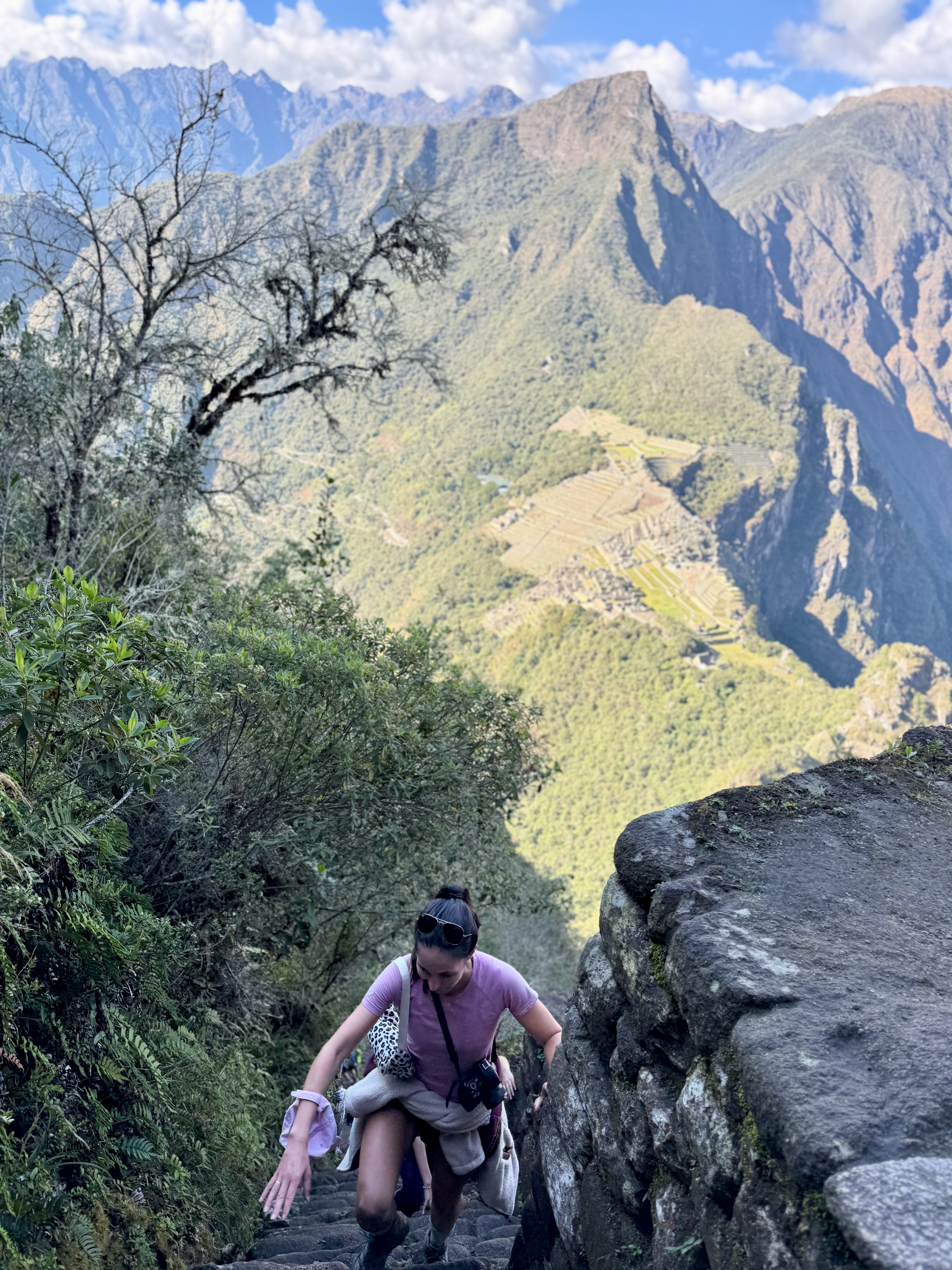 Puis, vers 8h, nous avons débuté l’ascension du Huayna Picchu, il y a 300m de dénivelé et quasiment que des marches… la vue est splendide, vraiment folle, c’est vertigineux avec les escaliers très pentus.